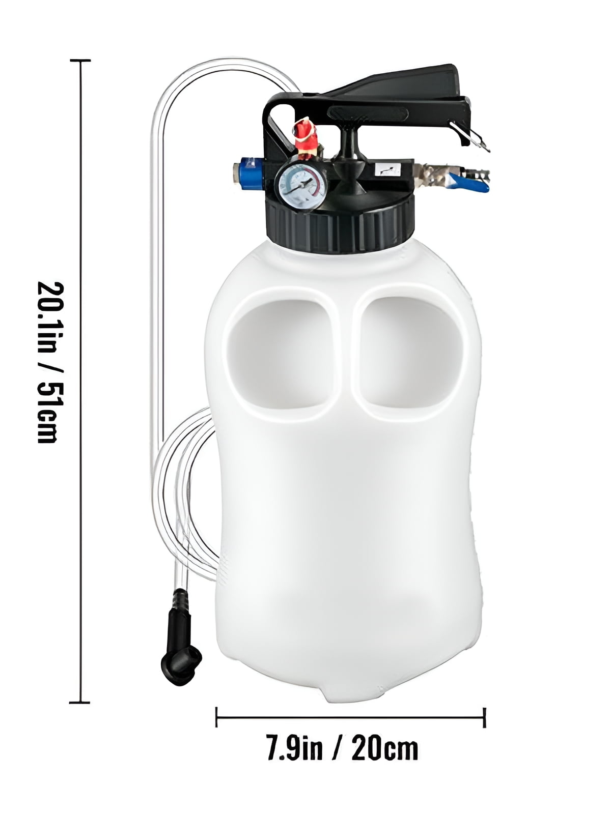 【10L LARGE CAPACITY】 – Our pneumatic ATF pump has a 10L large capacity. It provides an easy way to extract and dispense transmission fluid quickly and cleanly. It’s an ideal tool for oil replacement. 【GREAT COMPATIBILITY】 – The fluid transfer pump comes with 14 common adapters that fit a variety of automobiles, including famous cars like BMW, Porsche, VW, Honda, Audi and many others. 【DUAL CONTROL MECHANISM】 – The fluid pump’s dual control system with two-way valves (blue screw knob and flow direction valve) allows easy conversion between oil extracting and dispensing. 【ULTRA-SECURE DESIGN】 – It includes a gauge for pressure monitoring and a releasing valve ( preset 43PSI ) to release pressure when it is overloading, this eliminates any potential threats at work. 【CORROSION RESISTANCE】 – Our transmission fluid pump is made of corrosion-resistance material, and it can withstand high pressure and also easy to wash.