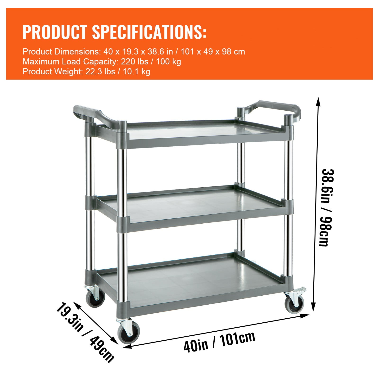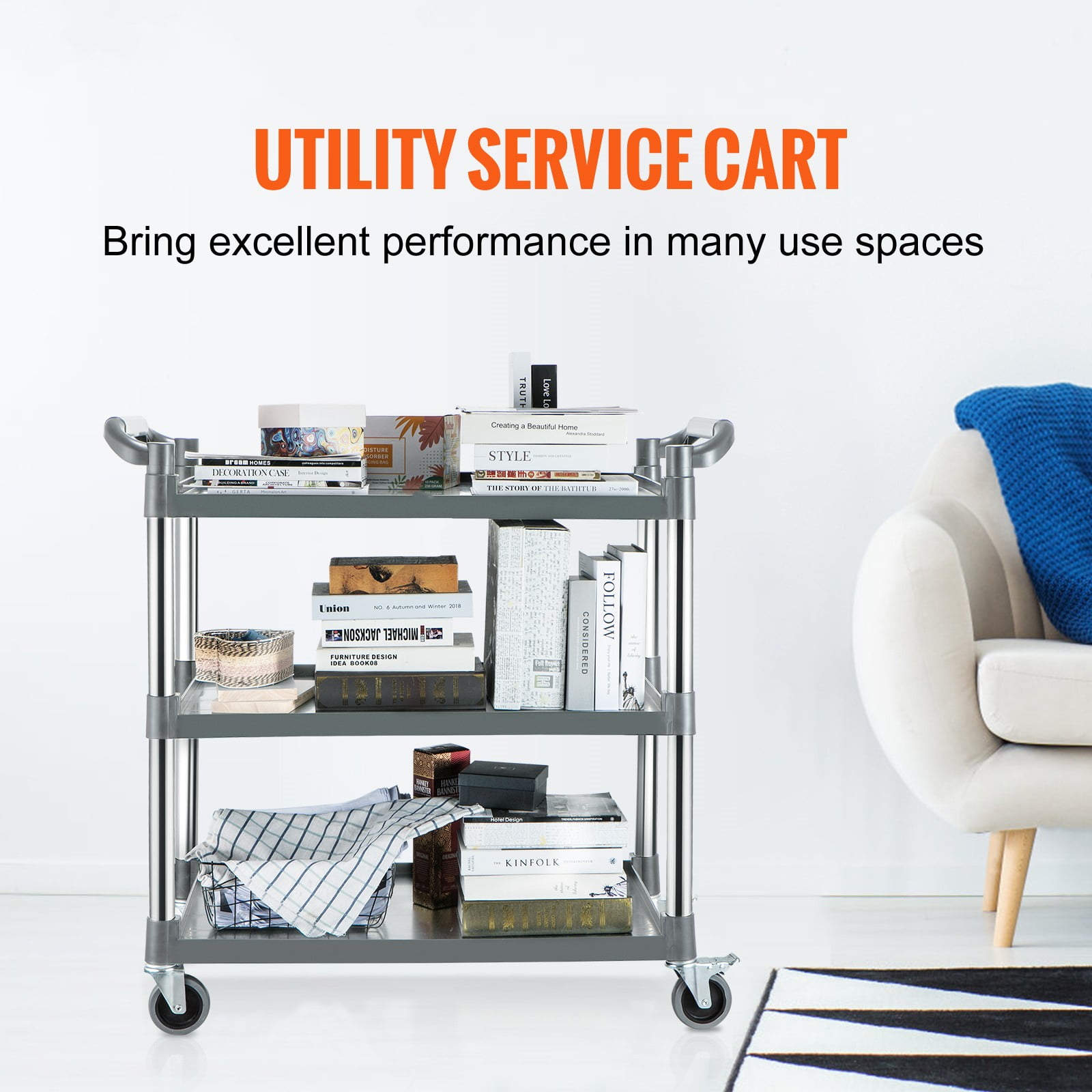 BENTISM Utility Service Cart with Wheels 3-Tier Food Service Cart 220lbs Capacity