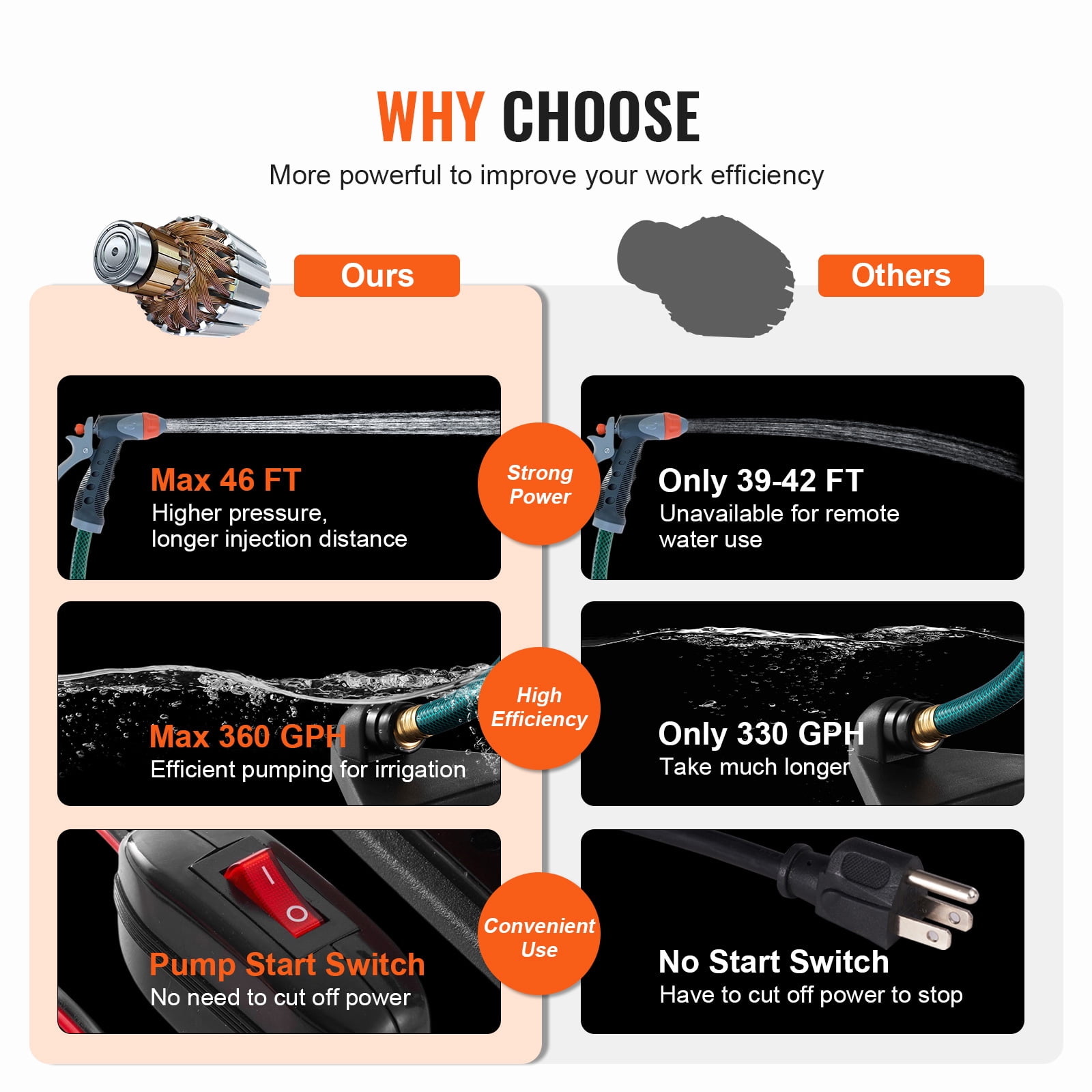 VEVOR Water Transfer Removal Pump Portable Utility Pump 12V 360 GPH 1/10 HP Hose