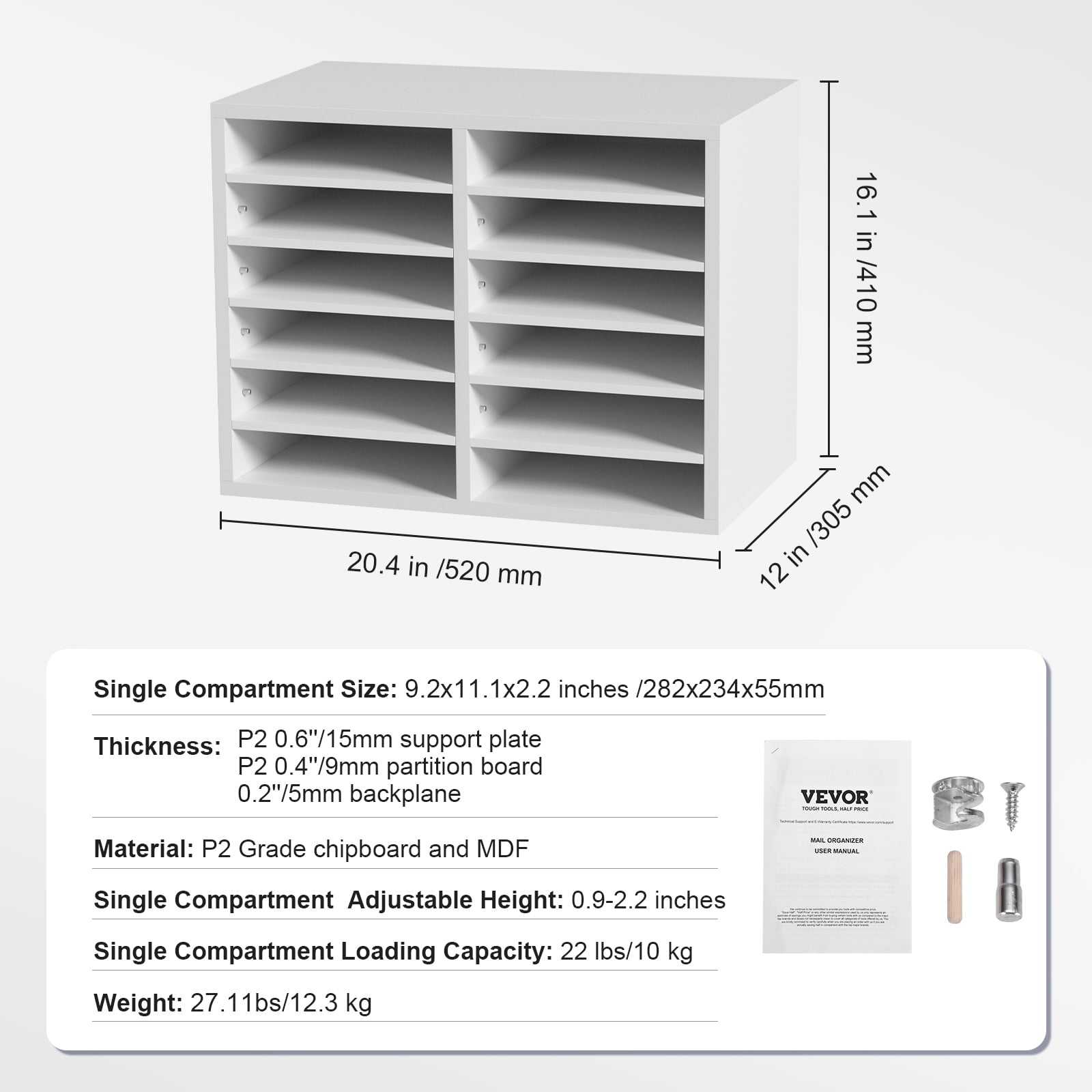 VEVOR Wood Literature Organizer Adjustable File Sorter 12 Compartments Countertop Literature Organizer Paper Storage Holder White