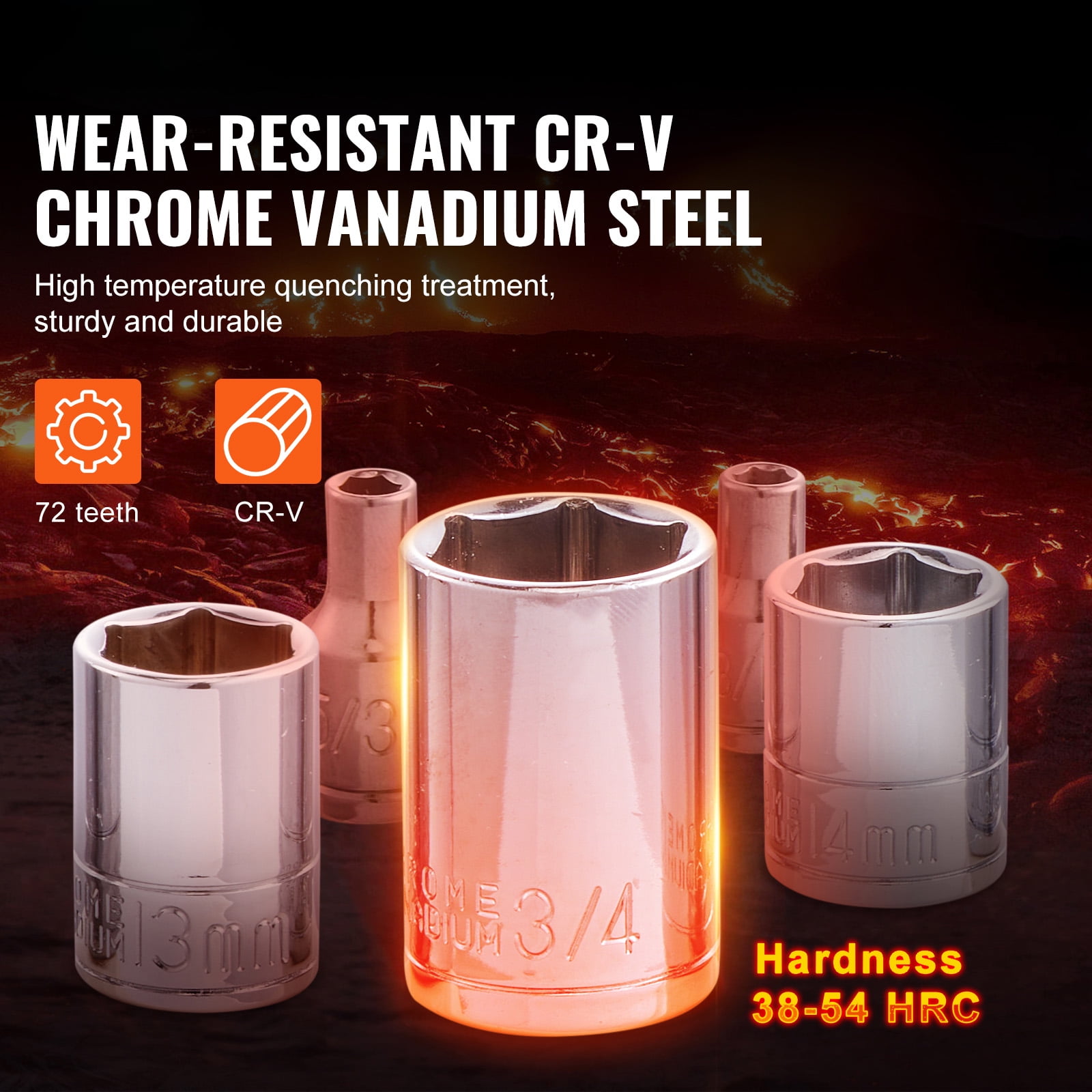 BENTISM XL3264, Rust Resistant Socket Wrenches and Sets _x000D__x000D_ _x000D_ Built from CR-V chrome plating for rust and wear resistance _x000D_ Versatile kit with various socket sizes for car care and DIY projects _x000D_ High torque performance from 141 to 5073 in-lb for tough tasks _x000D_ Includes all necessary attachments for manual installation _x000D_ Lightweight PE-HD storage case with neat compartments for easy carrying _x000D_