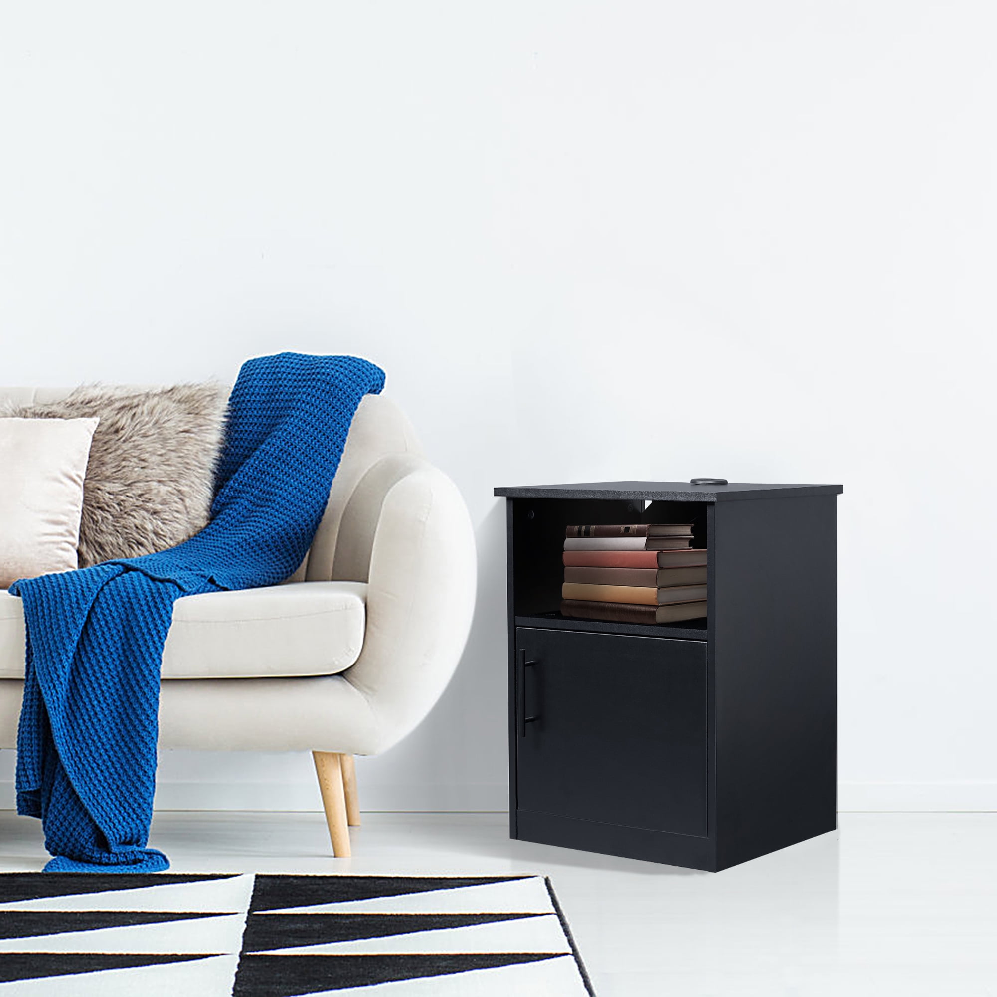 Benton Park Set of 2 Nightstand with Cabinet, 24″H Black Bedside Table with 3 USB Ports for Bedroom Living Room