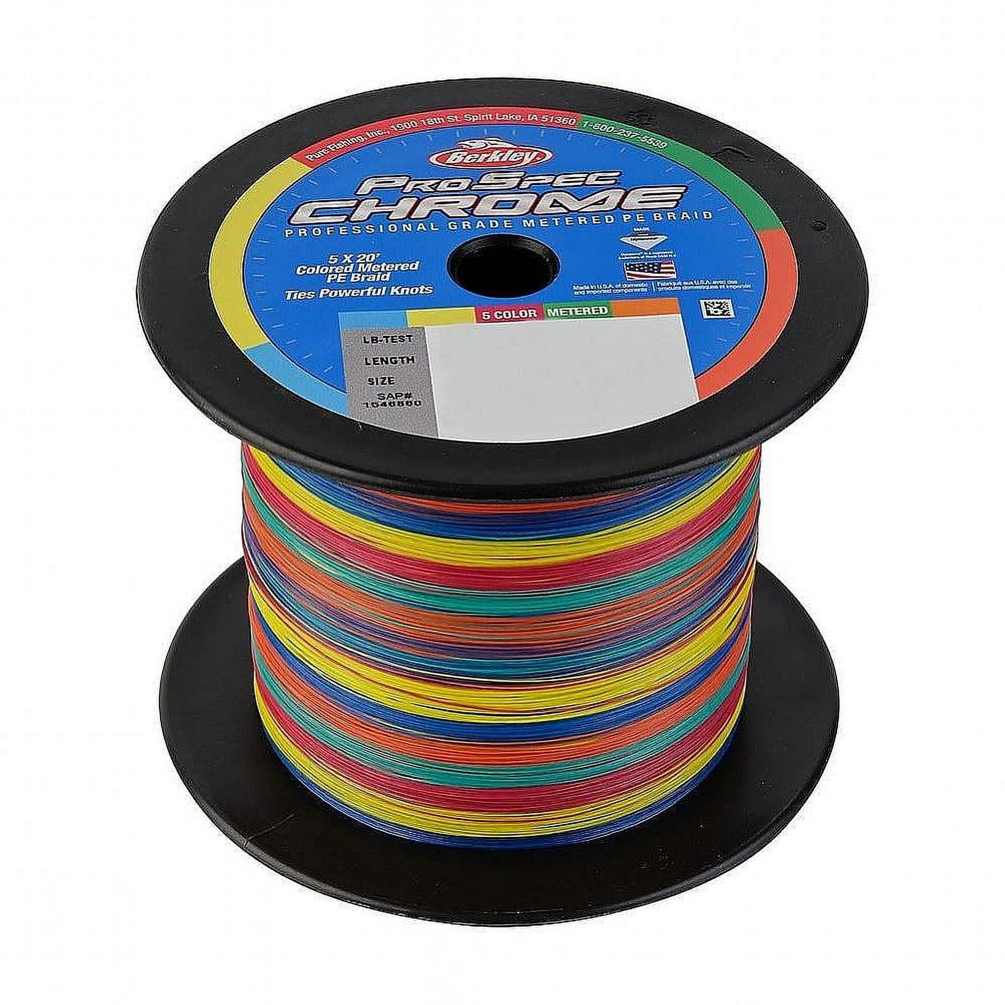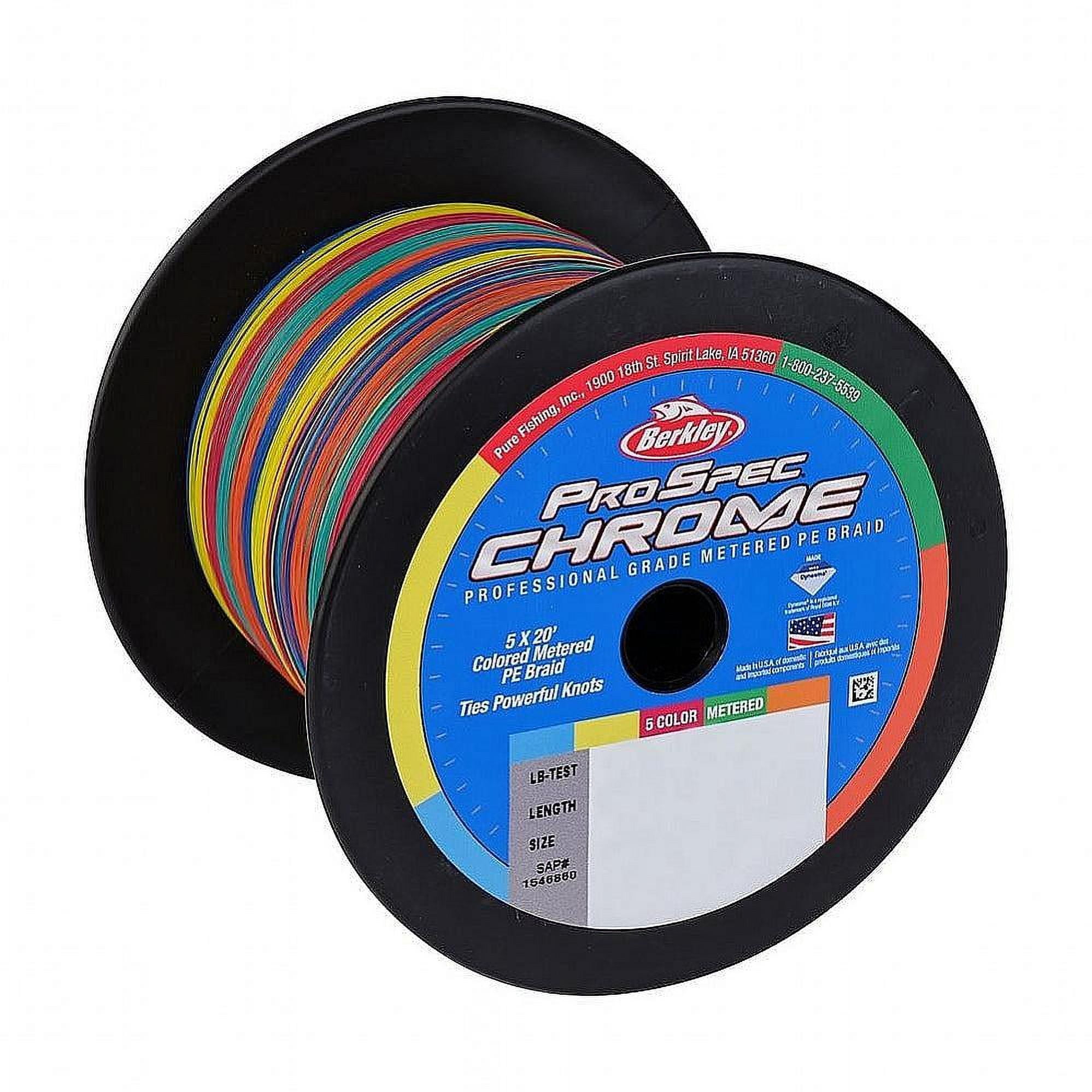 BERKLEY PROSPEC CHROME METERED BRAID: This line adds a 5-color pattern to our premium saltwater fishing braid for easy and repeatable marking of line depth and distance. Each color is 20 feet for a 100-foot total pattern. UNMATCHED DURABILITY: Reel in the big one. Made from the world’s strongest fiber, Dyneema®, this saltwater braid fishing line will never let you down. HIGH STRENGTH PER DIAMETER BRAIDED FISHING LINE: This braided fishing line offers a break strength of 20lb | 9kg. Braid Length: 500yd | 457m. The 5-Color Metered pattern is easy to see and track in the water. REMARKABLY SMOOTH REELING: From the cast and back again, these round 8-carrier braid fishing lines are designed to stack better and glide through the reel with ease for enhanced maneuverability. WIDE RANGE OF BREAK STRENGTHS AVAILABLE, from 20 pounds to 100. Diameter of 0.010in | 0.25mm ensures exciting fights end well. Superline Mono Equiv: 6lb. CHOICE OF TOP CAPTAINS: Designed with the help of professionals, this braided line delivers elite performance for optimal results in absolutely any situation. EXCELLENT PERFORMANCE: This heavy duty fishing line is suitable for saltwater environments. Capable of matching your toughest demands, this line can withstand conditions that would break lesser lines. OUR STORY: The Berkley story involves hard work and investigation leading to expected success. The research and development that goes into our products results in innovative fishing gear with one purpose: to help you catch more fish.