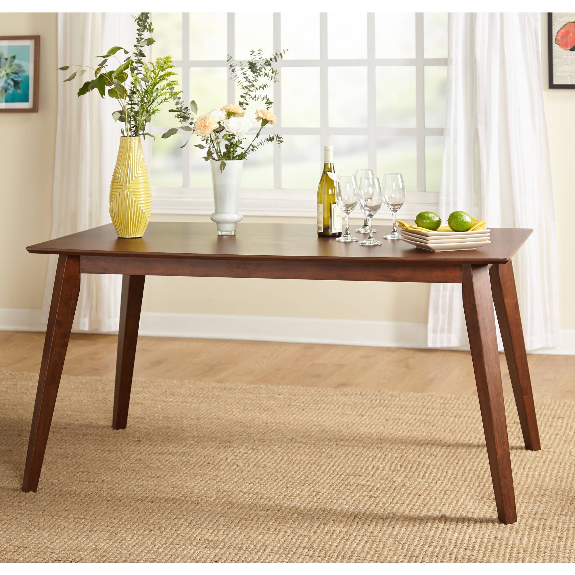 The Bernard Dining Table by Simple Living has a Mid-Century modern demeanor, perfect for today’s dining rooms. Angled legs and a Dark Espresso finish create an attractive backdrop for all your meals and gatherings. The table is durably constructed of solid rubberwood and topped with MDF. With room for six, there’s plenty of space for family and friends to gather around comfortably. Set includes: One (1) table Generous table surface featuring wood grain detail seats up to six (6) comfortably Angled legs for a Mid-Century modern design Table crafted of MDF, solid rubberwood Dark espresso finish Ships in one (1) carton Dimensions: Table overall dimensions: 29 inches high x 59.1 inches wide x 35.5 inches deep Assembly Required. This product will ship to you in one (1) box.