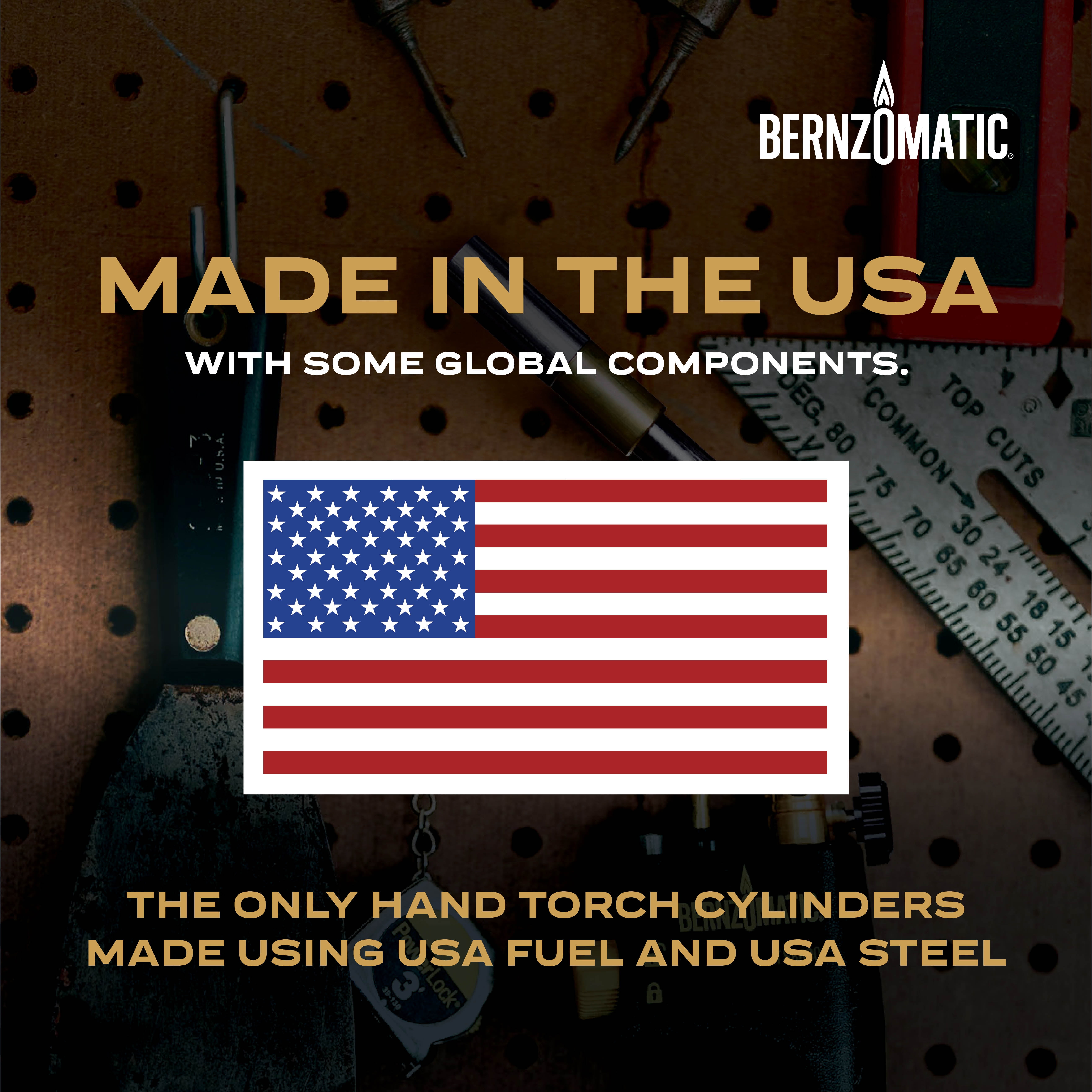 Durable, Cast Body Construction This torch is compatible with both Bernzomatic MAP-Pro® and Propane fuel Also Compatible with Bernzomatic 14.1 oz and 16 oz Propane Fuel Cylinders Instant On/Off Ignition Continuous Flame Lock Pressure Regulated for Consistent Performance when Inverted