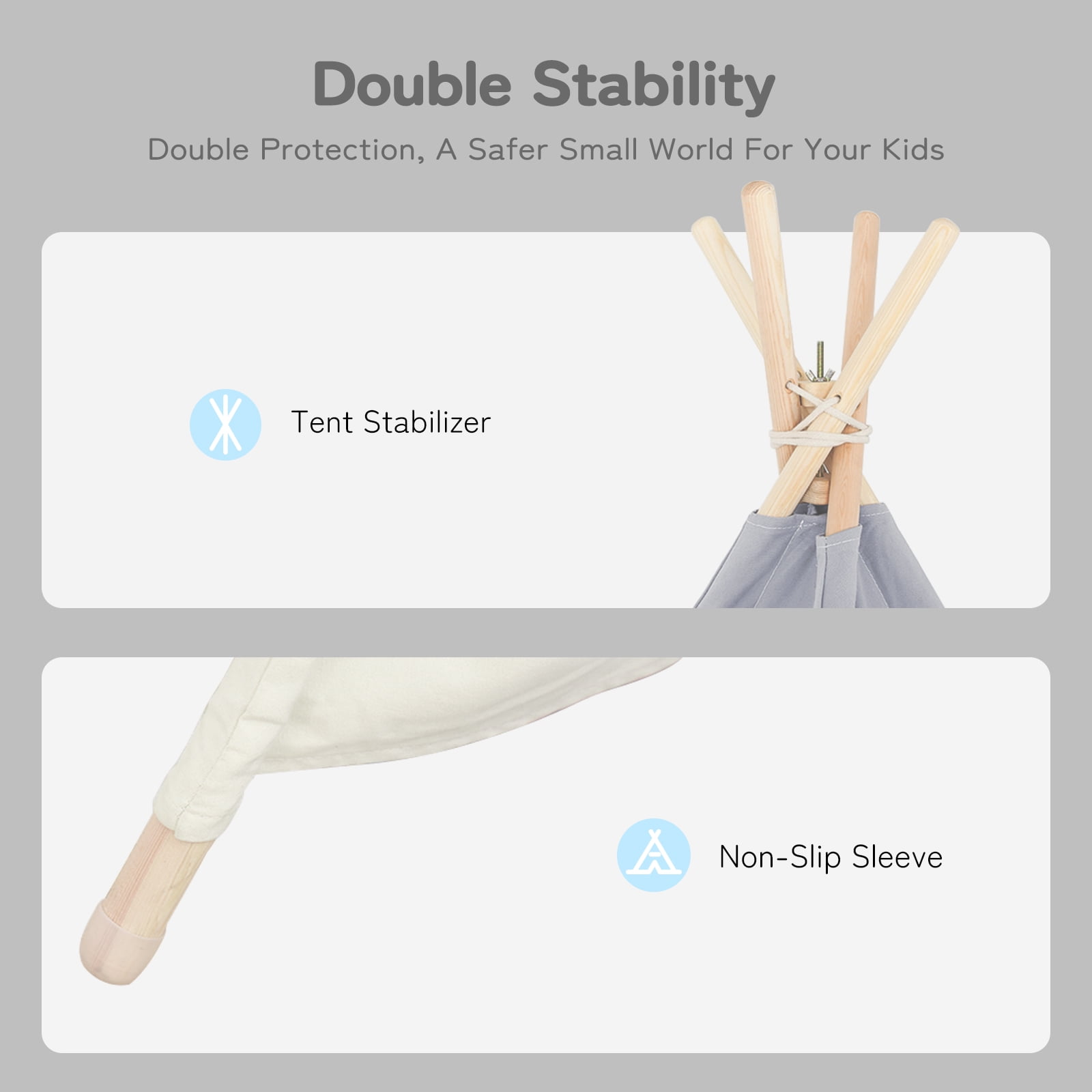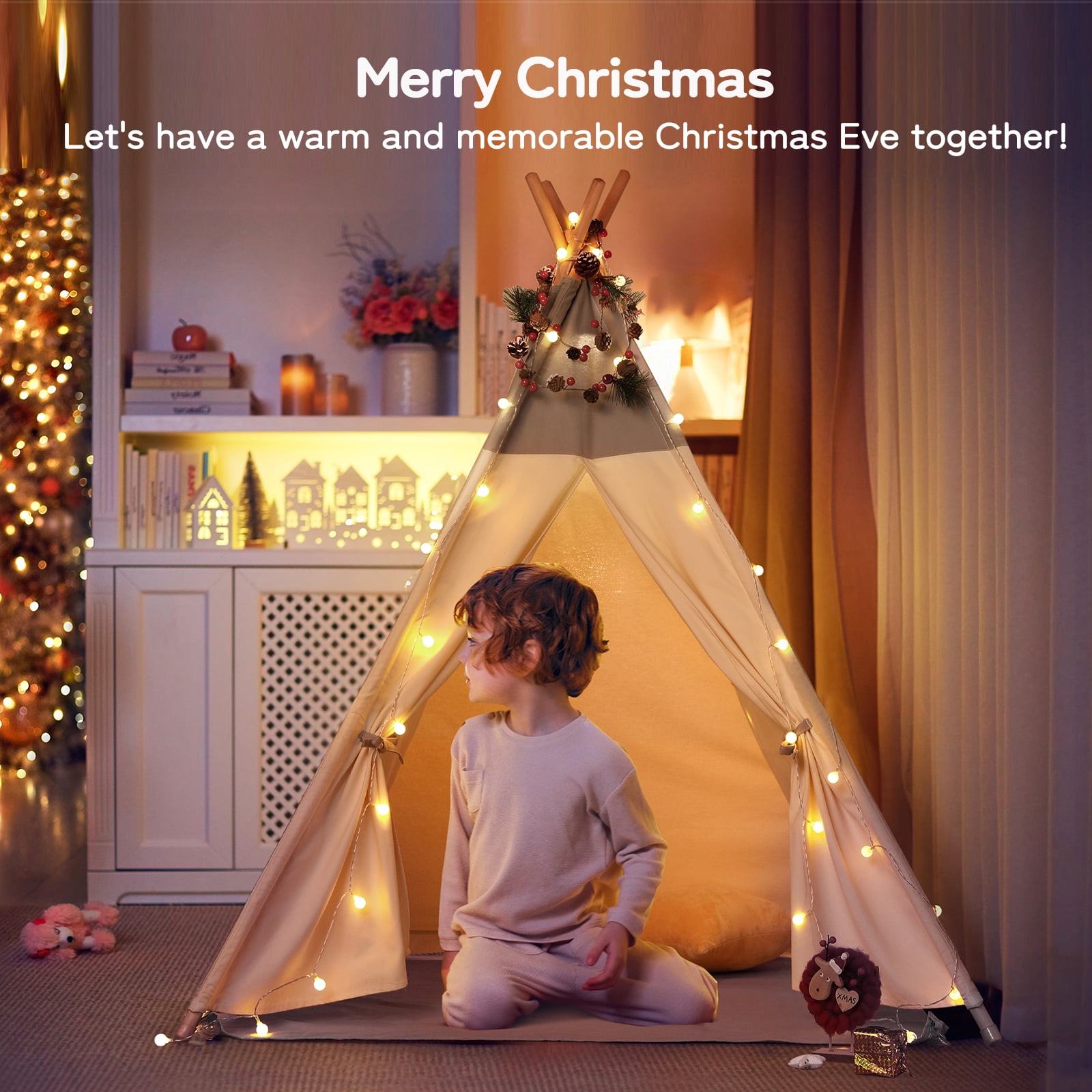 Excellent tent: Come with 20ft LED lights, 1x tent – stabilizer and a cotton floor mat, The cotton fabric of tent is twice as thick as other similar tents Only the best for your children: All “Besrey” Teepee tents are handmade! The teepee sticks are made of pine wood, finely polished and without formaldehyde. The toddler tent is built to the highest standards and is durable enough to ensure long-term use More stability and safety: The top connects with a teepee tent stabilizer , It effectively prevents the TIPI from spontaneously collapsing when playing, increasing your child’s safety and comfort 2 year returns: This kids tent comes with a two-year returns. If it is damaged, please contact us, we will provide you with an unconditional replacement or refund Designd for Kids & Stable: We added a window for good air circulation, each kids teepee tent both have two pockets for placing things, and a flap door that can be closed and open with strings. Each foot comes with a rubber sleeve which makes it more slip, wear-resistant and much more durable. The pole and rope combo make it more stable even while setting up or playing Great Present for Your Kids: Every kid wants a little space and the teepee always add an extra fun in their daily life. They can read books, act out the stories in their imagination or try something else interesting. The tent size is 58* 47* 47inch (H*L*W). This kids play tent is the best toy for little girls and boys Endless Indoor and Outdoor Fun: The easy setup is a significant feature. Assemble and pack up quickly and easily. Enjoy teepee tent indoor and outdoor. Under your supervision and with your help, your little ones can easily install a personal space What you get: 1x Teepee Tent, 1x tent – stabilizer, 1x cotton play mat, 1x 20ft light, 4x silicone cover for floor protection 1x Besrey Kids Teepee Tent 16x Pine Poles 12x Connection Tubes 1x Floor Mat 1x String Lights (20ft) 4x Silicone Caps 1x Tent Stabilizer 1x User Manual