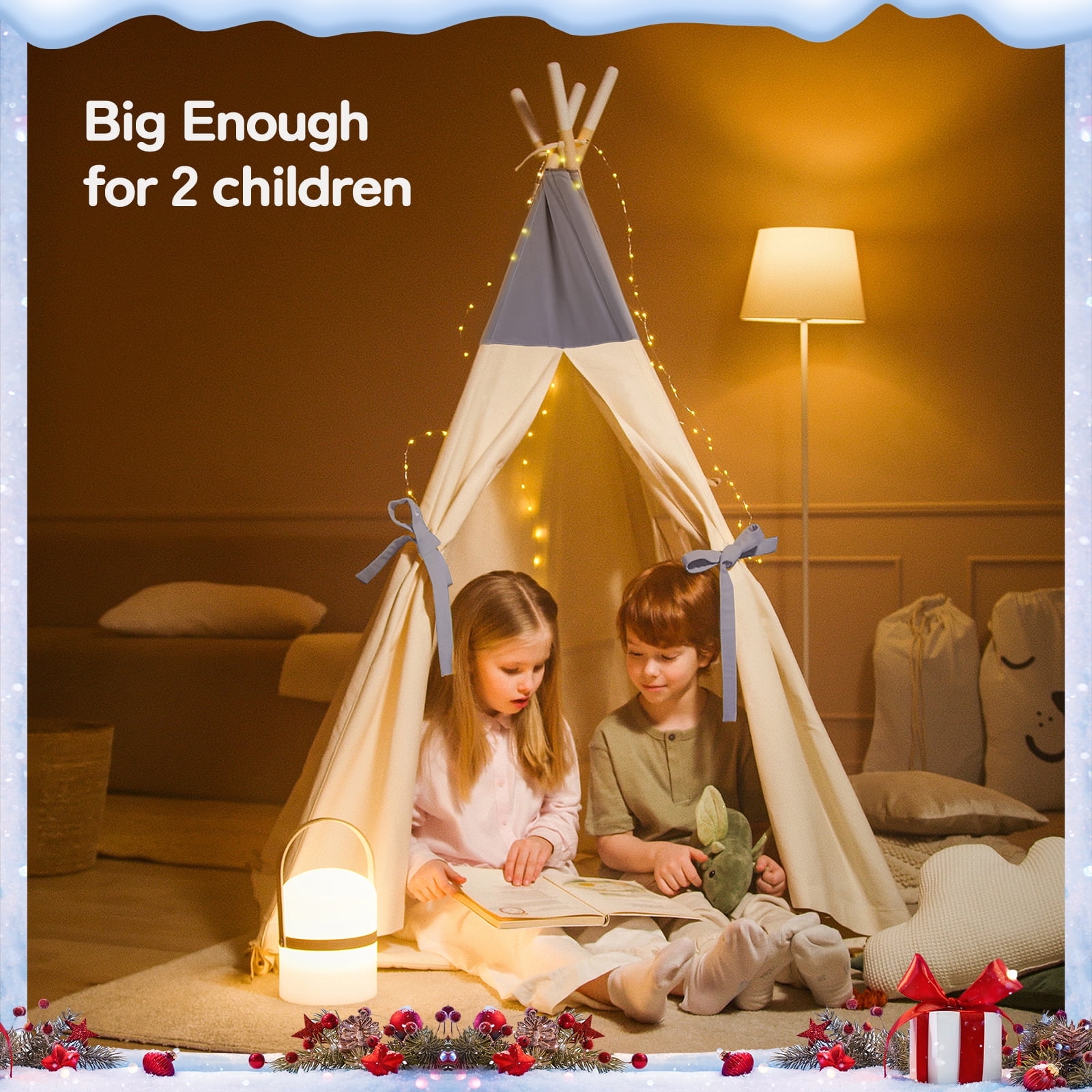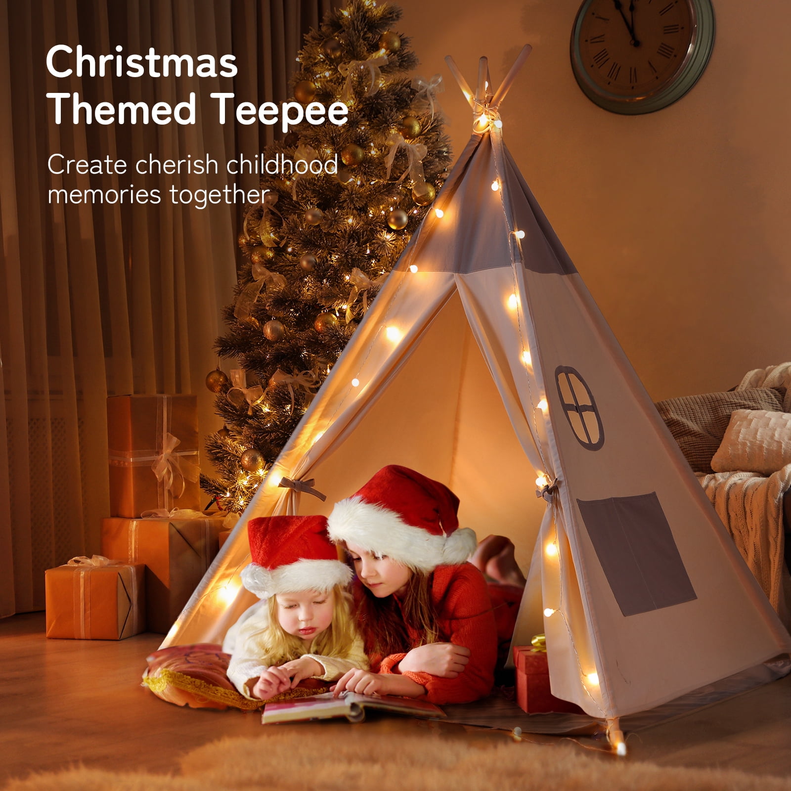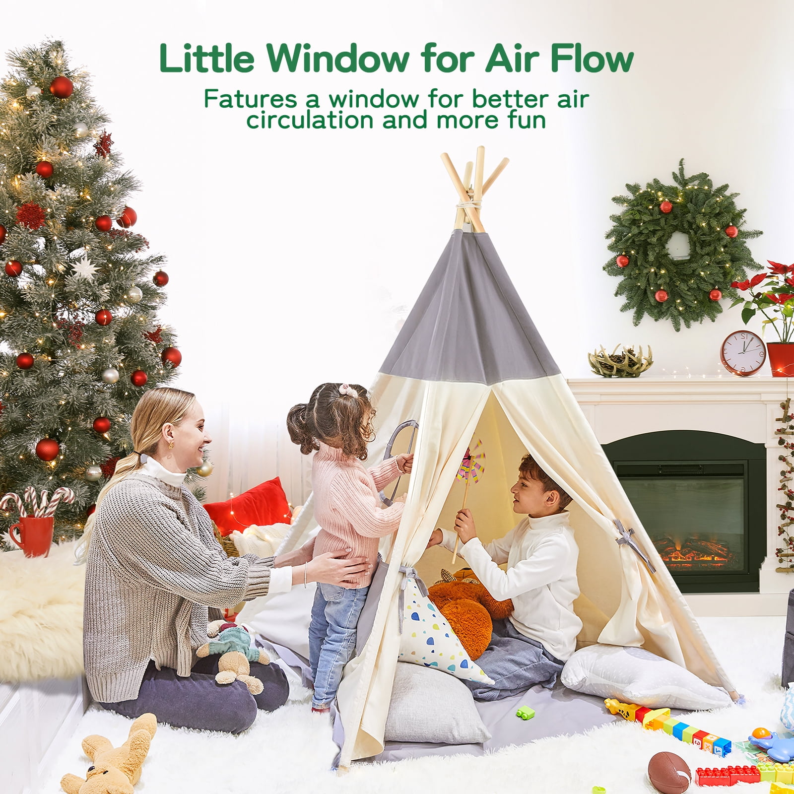 Besrey Teepee Tent for Kids with Light & Mat,Toddler Playhuose Tent for Ages 3+ Girls and Boys,Child Play Tent,Matt Grey