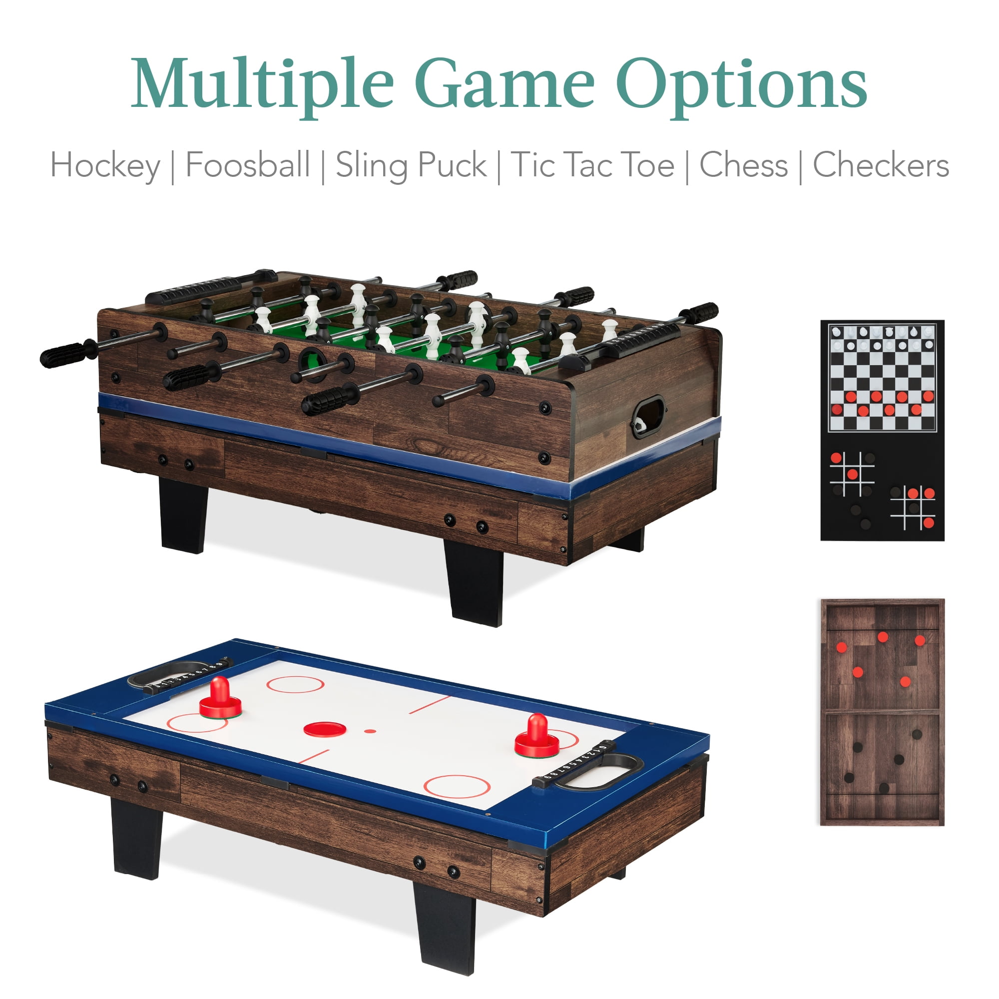 Best Choice Products 11-in-1 Kids Combo Game Set w/ Ping Pong, Foosball, Air Hockey, 5 Accessory Bags – Dark Wood