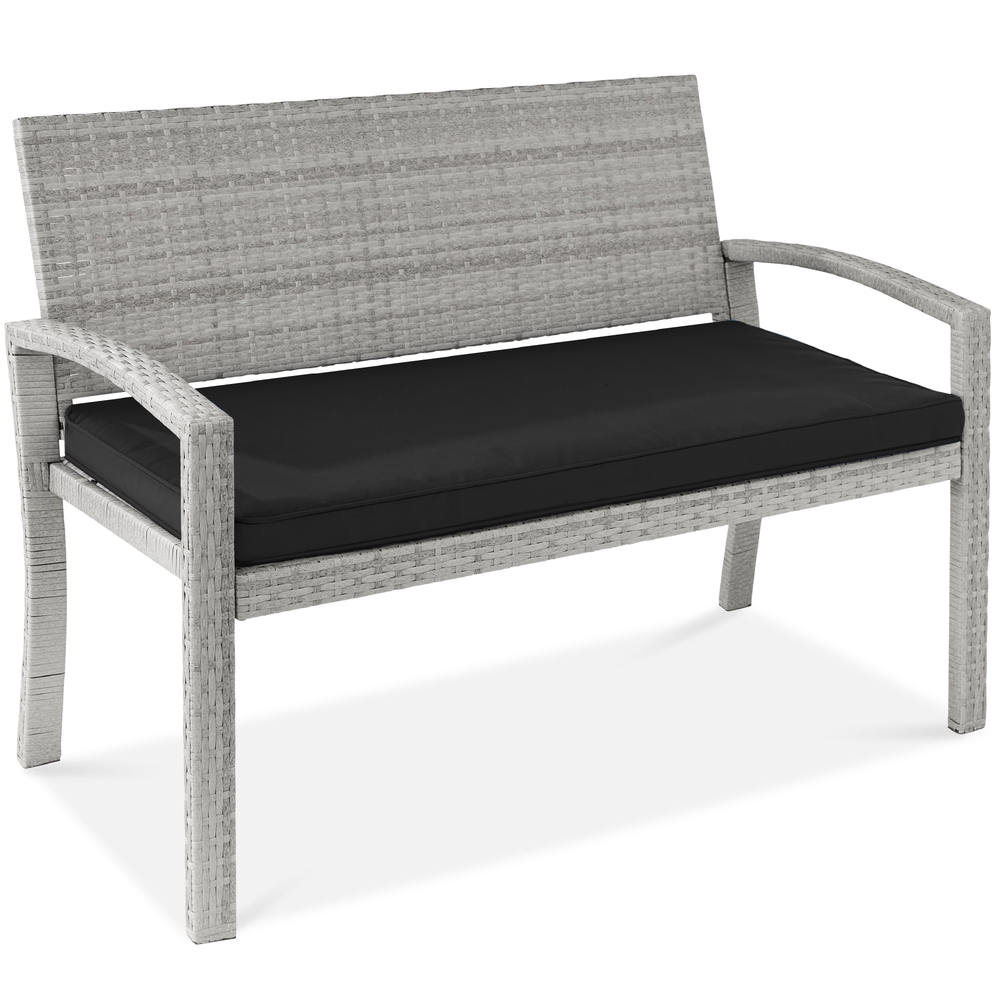 Best Choice Products 2-Person Outdoor Wicker Bench Garden Patio Porch Furniture w/ 700lb Capacity – Gray/Black