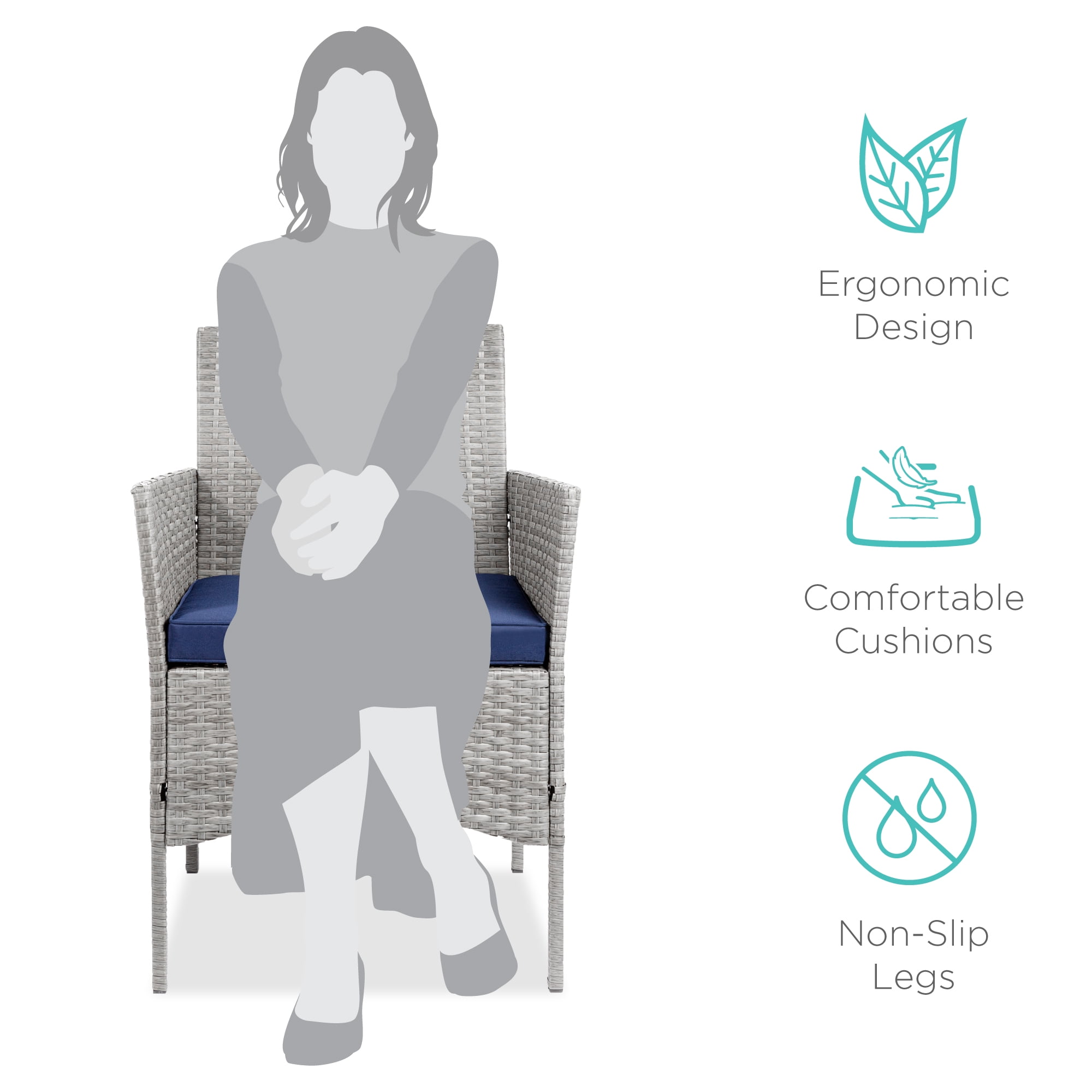Best Choice Products 3-Piece Outdoor Wicker Conversation Patio Bistro Set, w/ 2 Chairs, Table – Gray/Navy