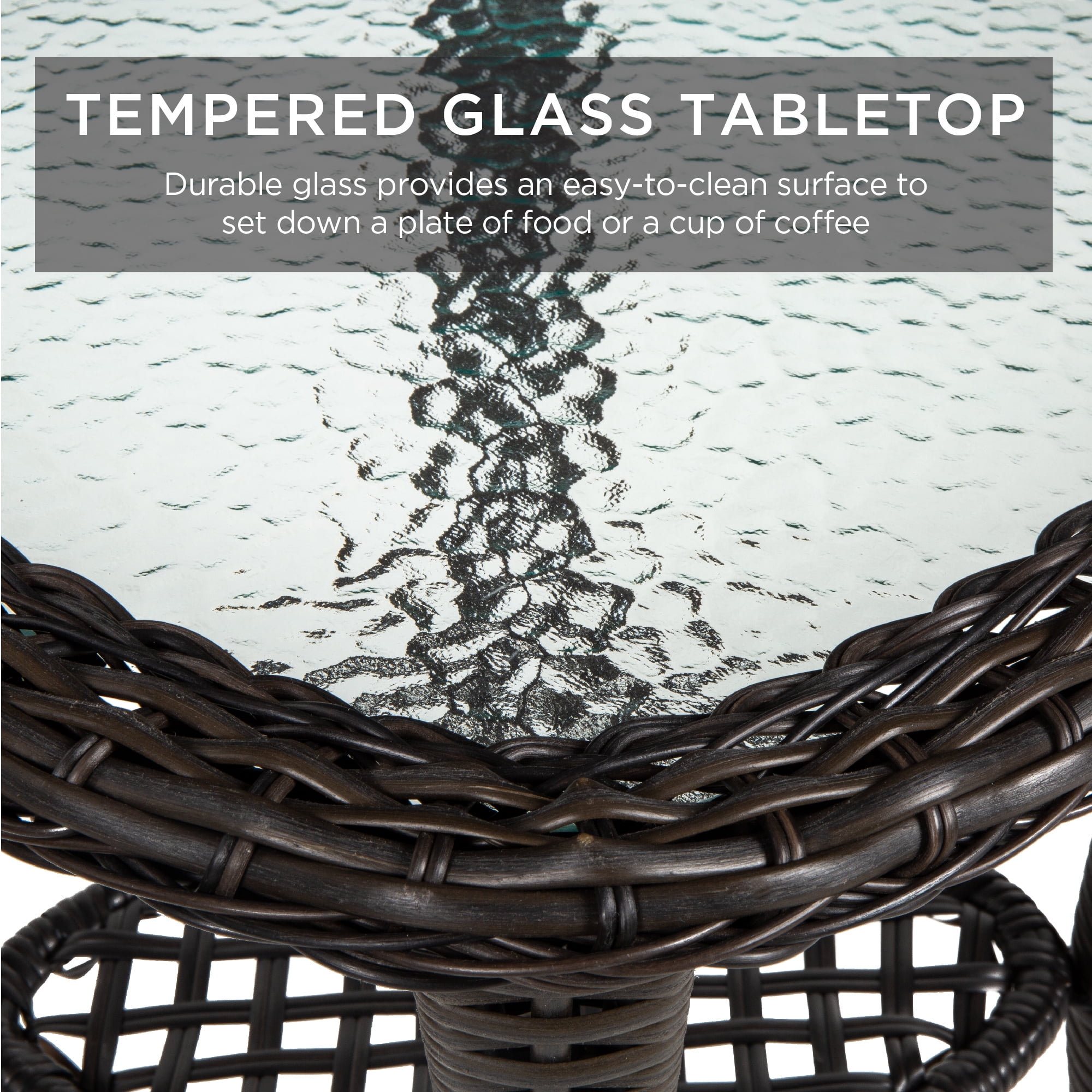 Best Choice Products 3-Piece Patio Wicker Bistro Furniture Set w/ 2 Cushioned Swivel Rocking Chairs, Side Table – Beige