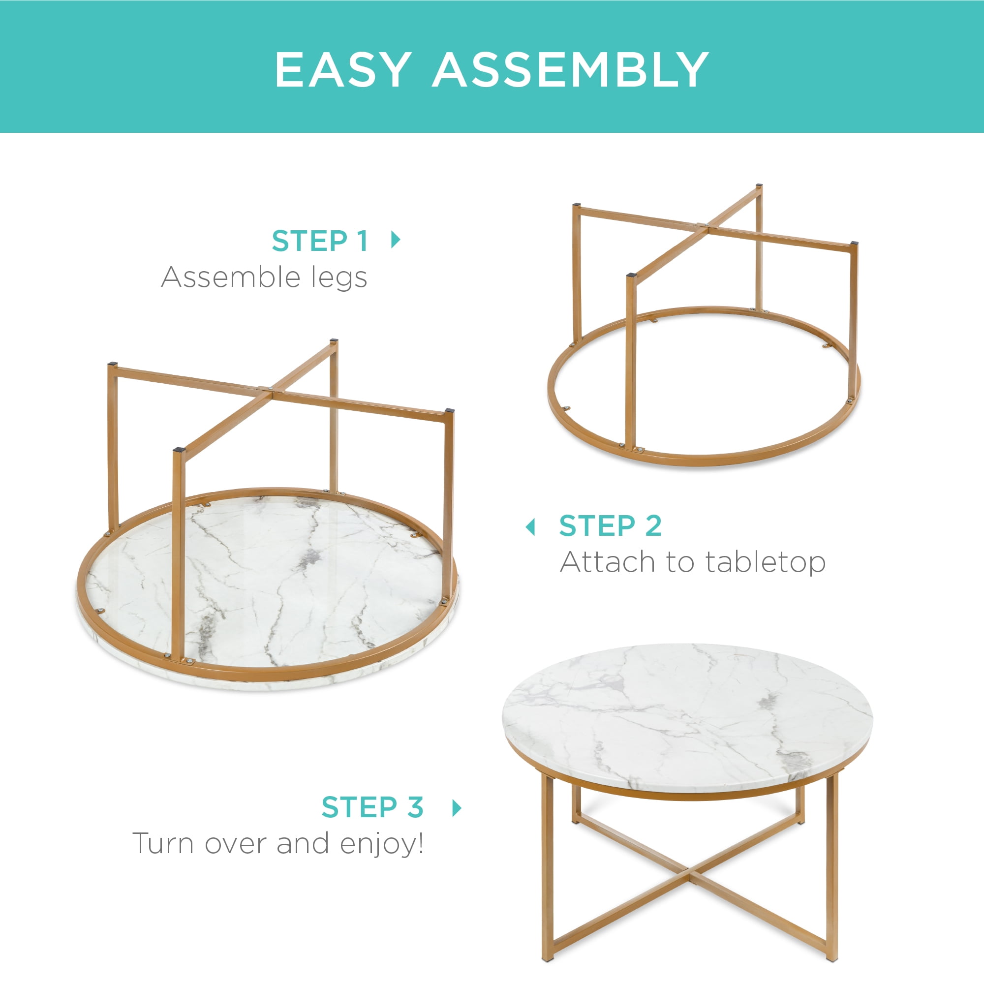 Best Choice Products 36in Faux Marble Modern Round Living Room Accent Coffee Table w/ Metal Frame – White/Bronze Gold