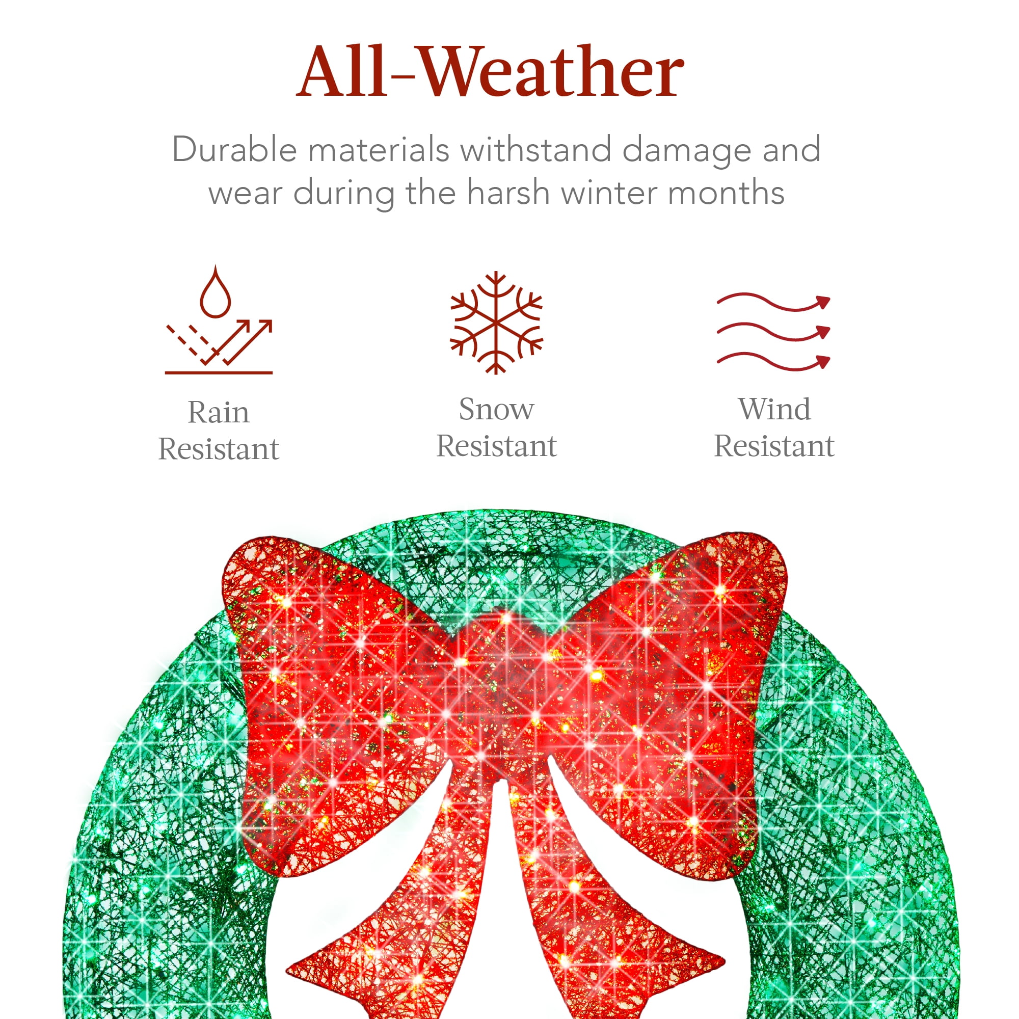 Best Choice Products 36in Pre-Lit Outdoor Christmas Wreath, LED Metal Holiday Decor w/ 120 Lights, Bow – Green/Red