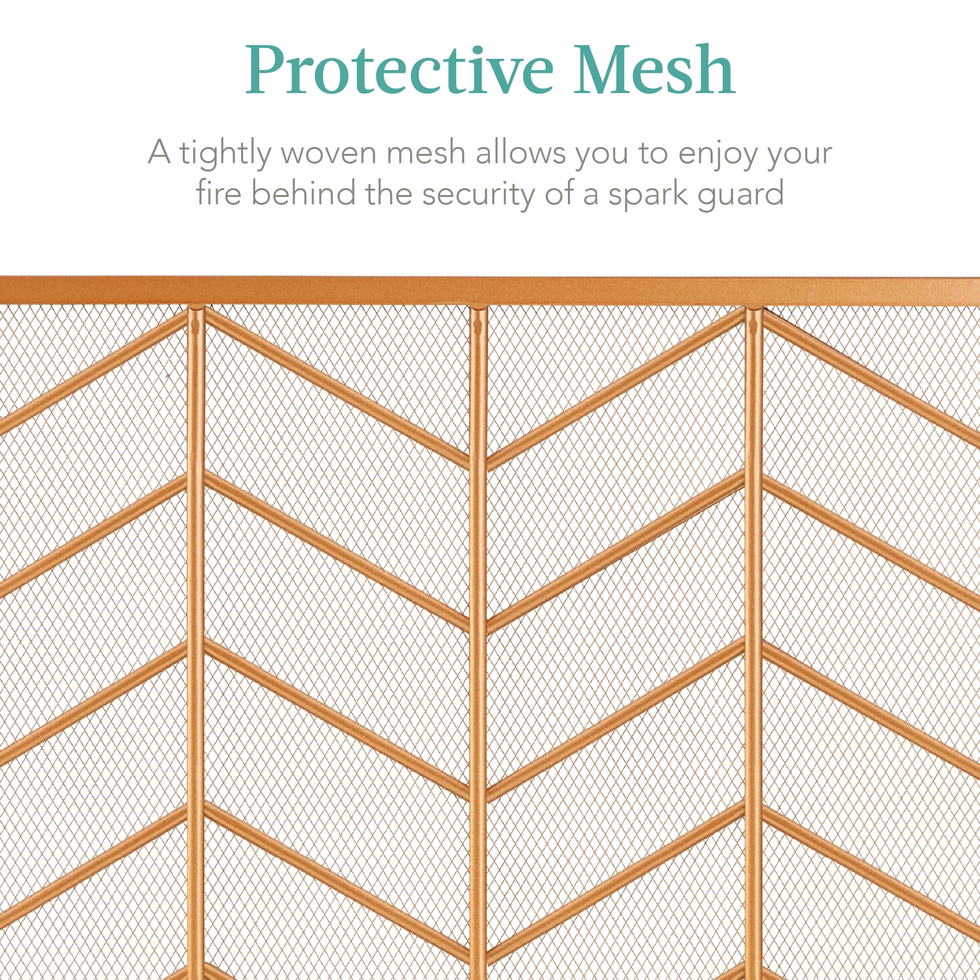 3 FOLDING PANELS: The tri-fold design allows for easy setup and storage while saving space when not in use PROTECTIVE MESH: Elegant screen has a mesh guard to help protect the room from open flames and embers emitted by the fire, providing extra security for, pets, and your floor CHEVRON FIRE SCREEN: This screen features a series of angled iron bars set in a mid-century modern chevron pattern to add timeless style to your fireplace ELEGANT HOME DÉCOR: An alluring accent for the living room or a master bedroom with a fireplace, this screen provides the final touch of charm for your living space QUALITY CONSTRUCTION: Heavy-duty steel is connected in three panels by a tight mesh with spot-welded hinges to create a solid construction that won’t break down; OVERALL DIMENSIONS: 52″(L) x .75″(Thick) x 31″(H)