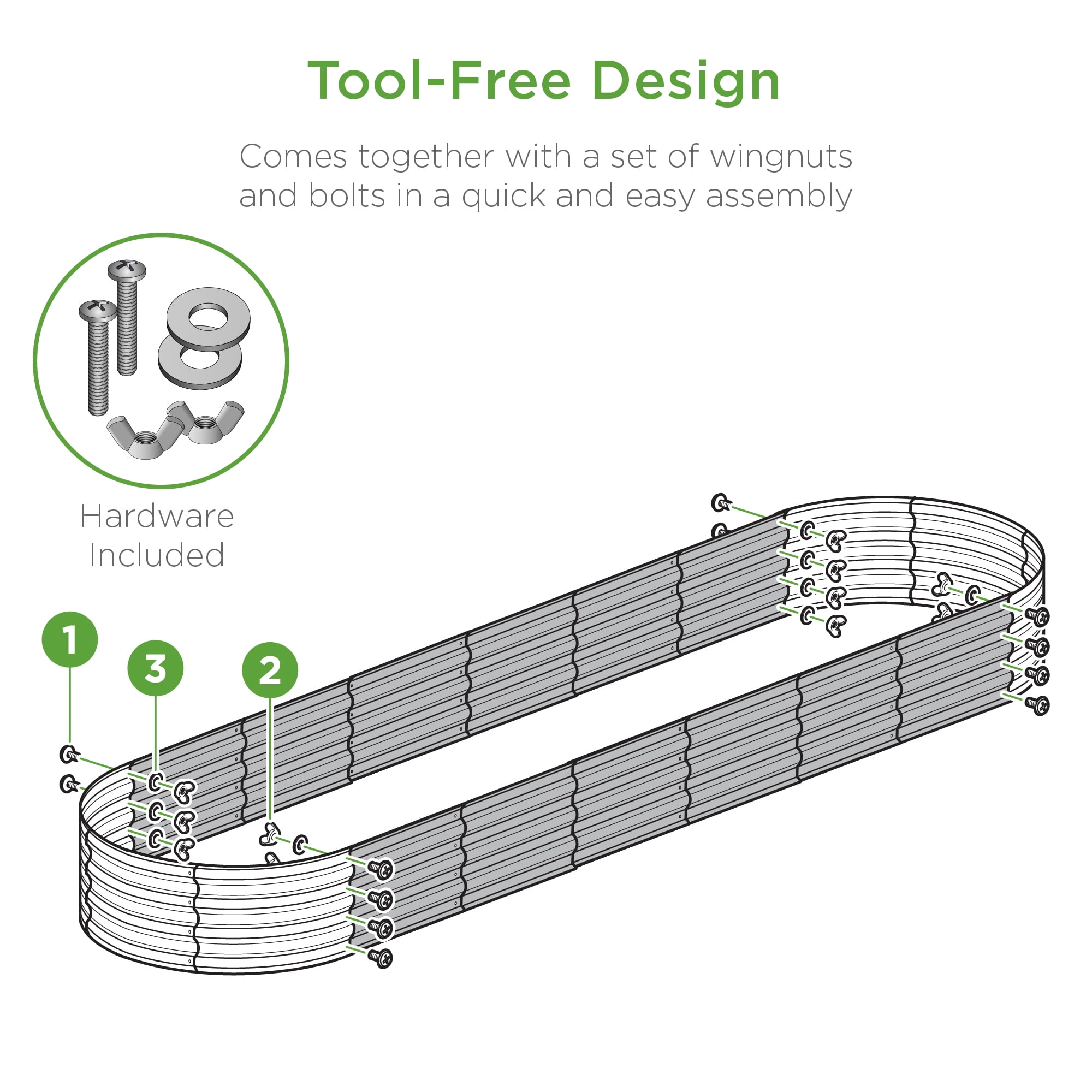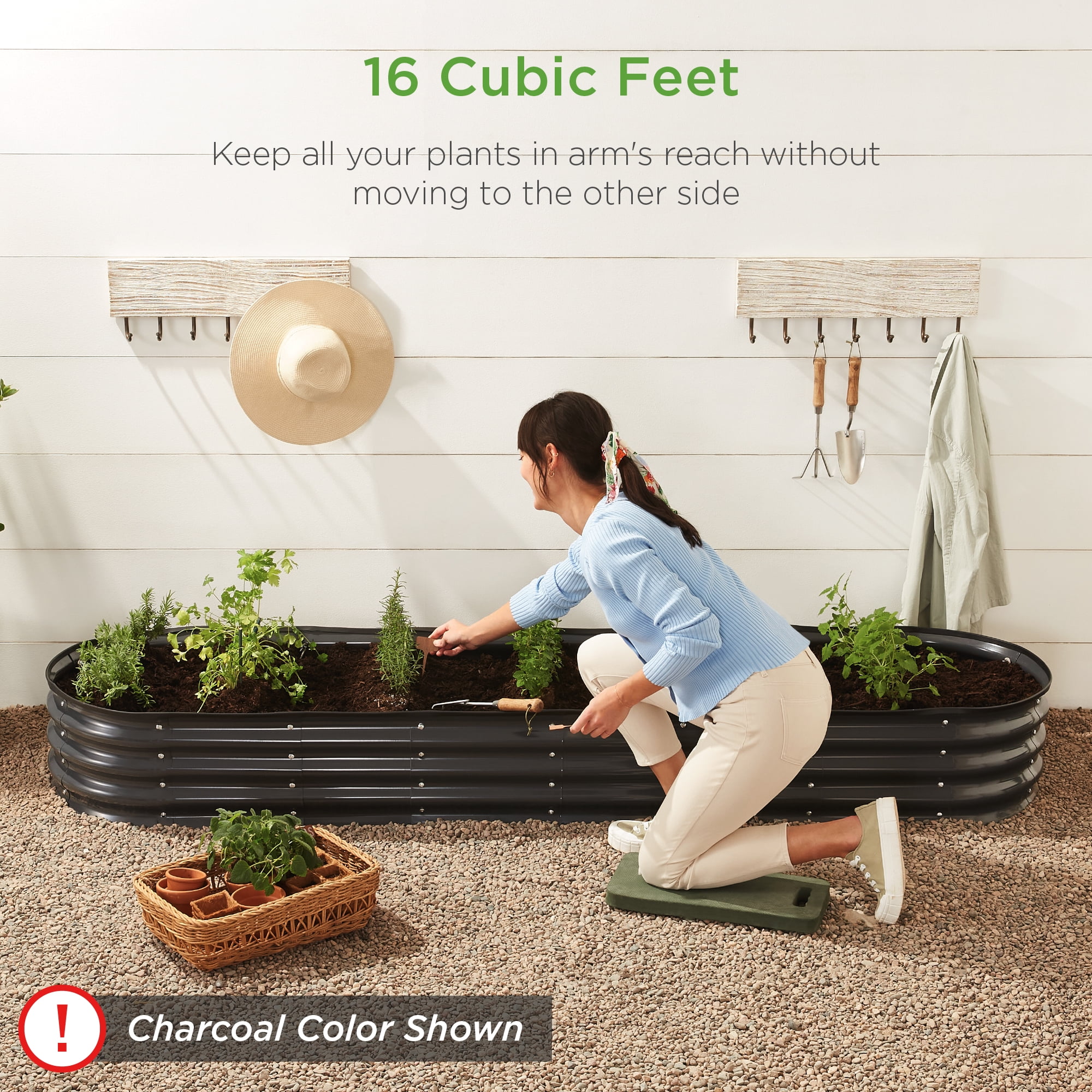 1FT GROWING DEPTH: 12 inches of depth holds up to 108 gallons of soil-ideal for shallow to medium-root herbs and vegetables like thyme, dill, and more. Note: This product does not include a bottom panel OPEN DRAINAGE BASE: An open bottom promotes drainage to help prevent water and salt buildup while allowing your plants roots easy access to nutrients TOOL-FREE ASSEMBLY: Beveled steel panels come together with a set of included wingnuts and bolts with rubber edging for your added protection BUILT TO LAST: Made of powder-coated steel panels, this garden bed is the perfect, sturdy planter for romaine lettuce, cucumbers, strawberries and other seasonal crops 16 CUBIC FEET: The sprawling planting space makes this the ideal place to set up a self-contained micro-environment for unique and non-native plants; OVERALL DIMENSIONS: 96″(L) x 24″(W) x 12″(H); FILL CAPACITY: 108 Gal