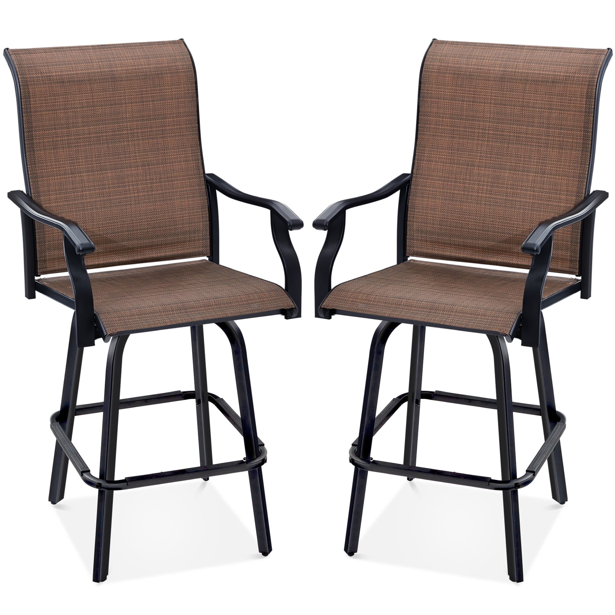Best Choice Products Set of 2 Outdoor Swivel Bar Stools, Patio Barstool Chairs w/ 360 Rotation, All-Weather Mesh – Brown