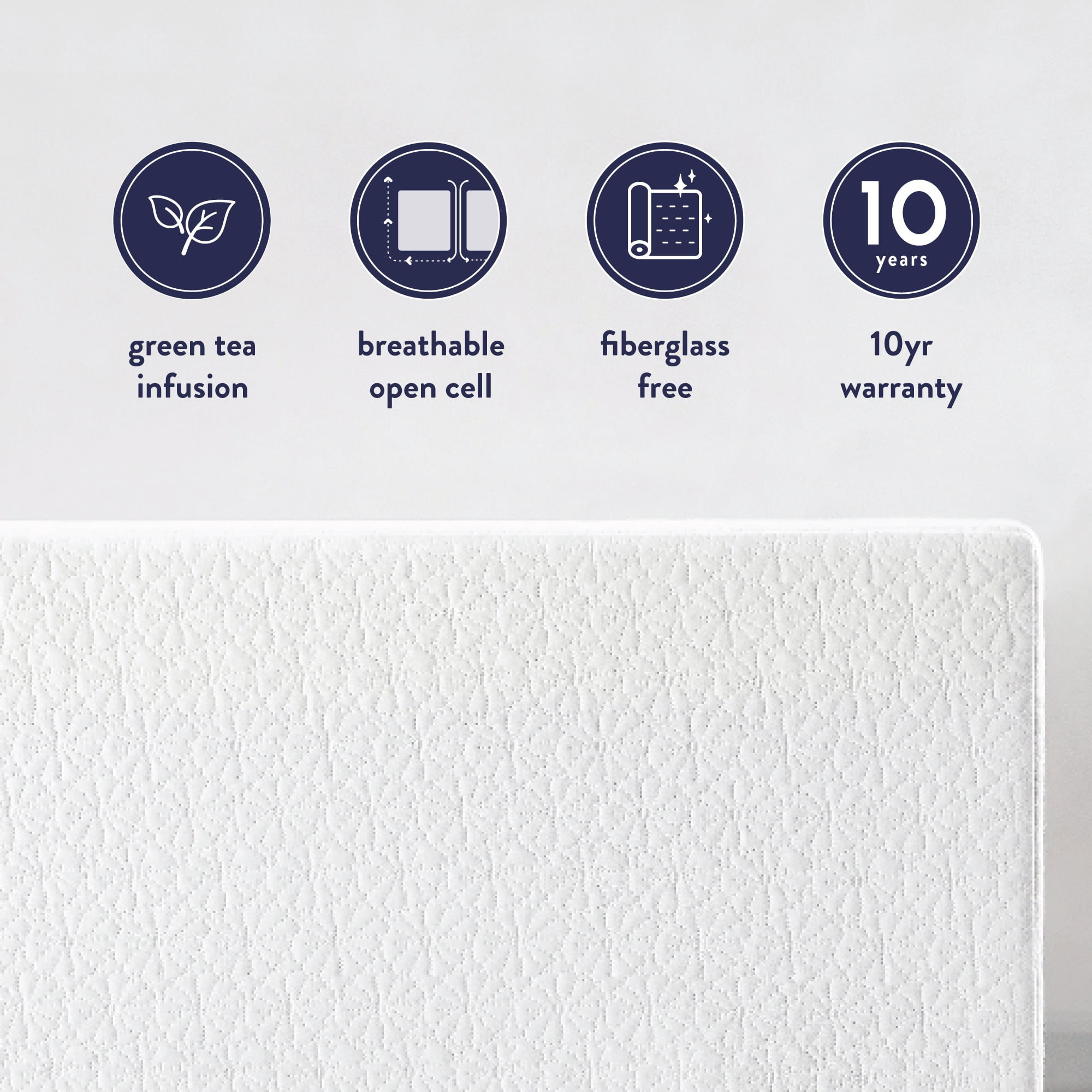 Essential green tea memory foam mattress for every home Green tea infusion calms and controls odors naturally Pressure relief system reduces pressure points for deeper sleep Layers of green tea memory foam, ventilated foam, and high-density foam Made with CertiPUR-US® certified foams 10-year manufacturer’s warranty
