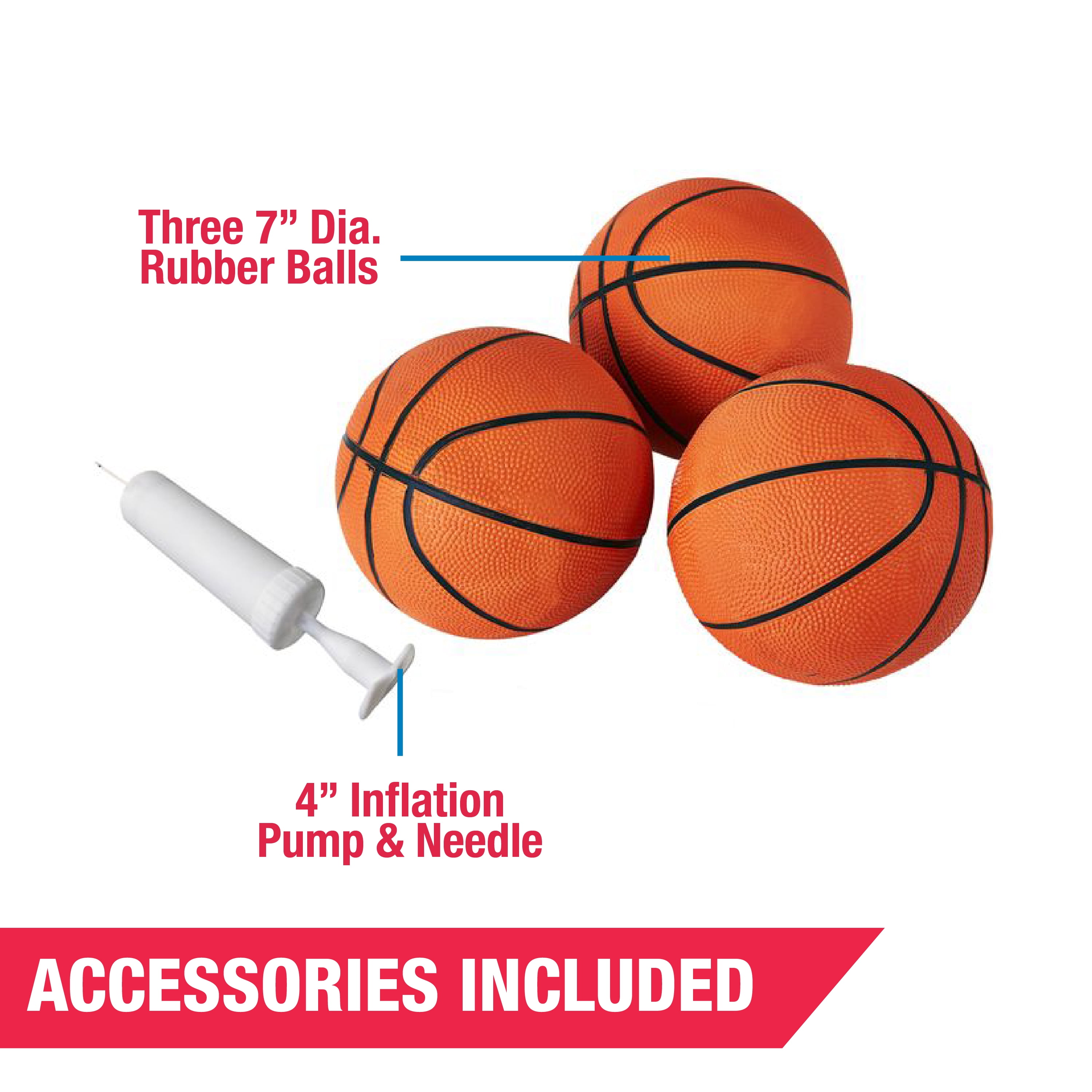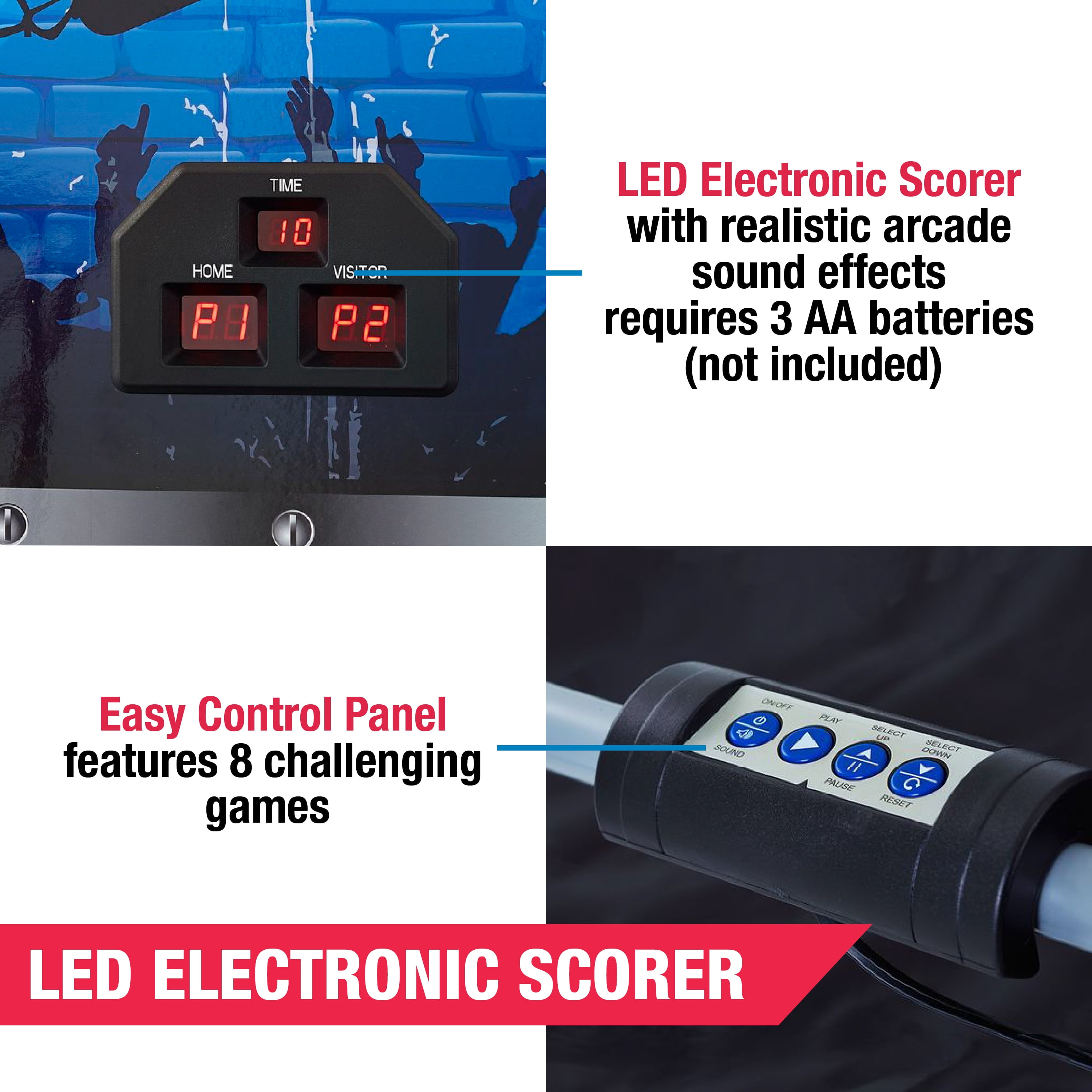 Best Shot 2-Player 81″ Foldable Arcade Basketball Game, by MD Sports Features 8 different games for 1 or 2 players LED electronic scoring system with realistic arcade sound effects LED scoring system keeps track of score and time Sturdy and durable 7/8″ diameter metal frame with 12″ diameter steel rims Foldable design for easy storage Requires 3 AA batteries (not included) Accessories included: 3 basketballs and 1 air pump Assembled dimensions: 81 in L x 43 in W x 80.5 in H Folded product dimensions: 31″ L x 43″ W x 80.5″ H Package dimensions: 46″ L x 22.75″ W x 3.5″ H Weight: 32 lbs. New condition