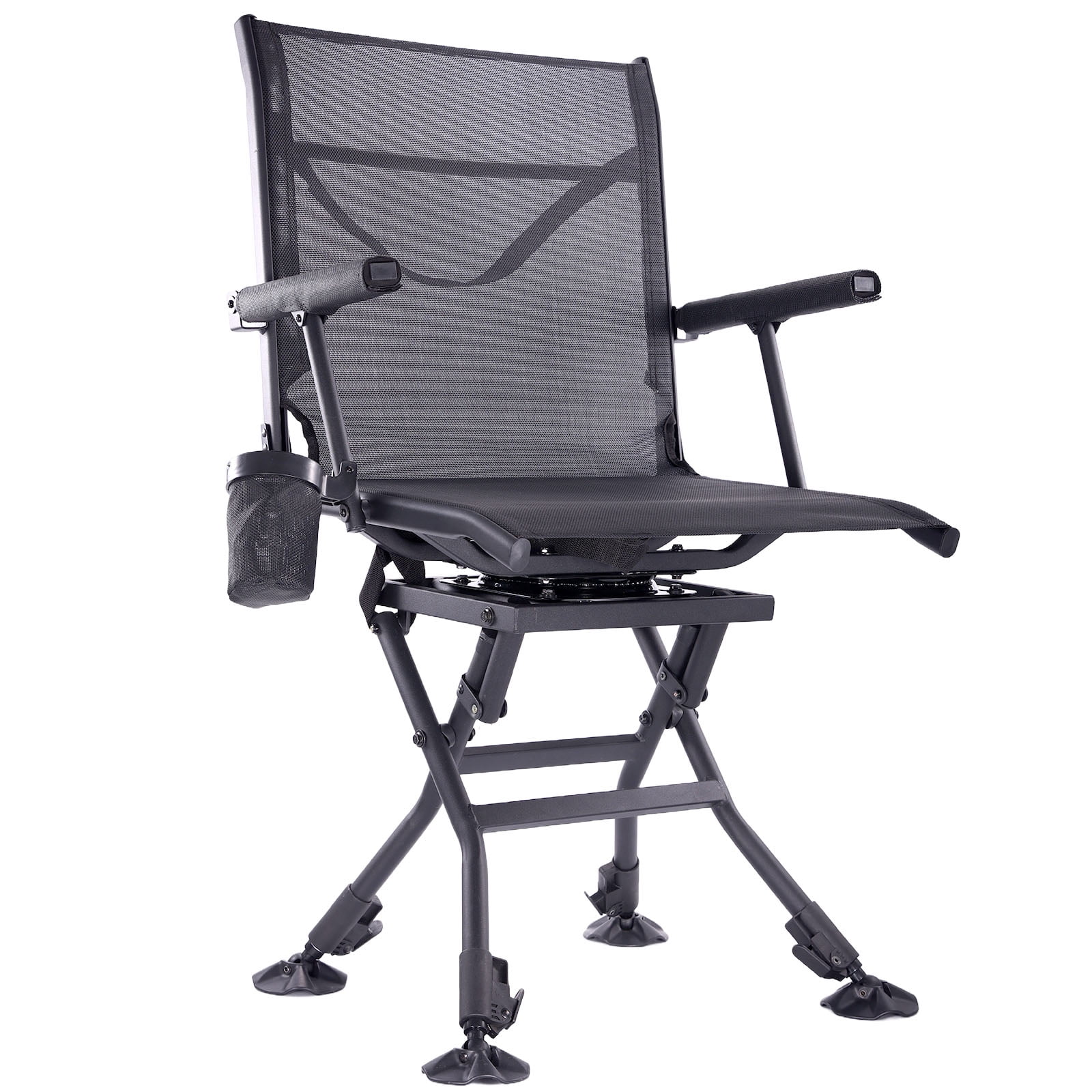 Bestchica 360 Degree Swivel Chairs for Blinds Folding Hunting Seat with Cup Holder in Mesh Black& Camo