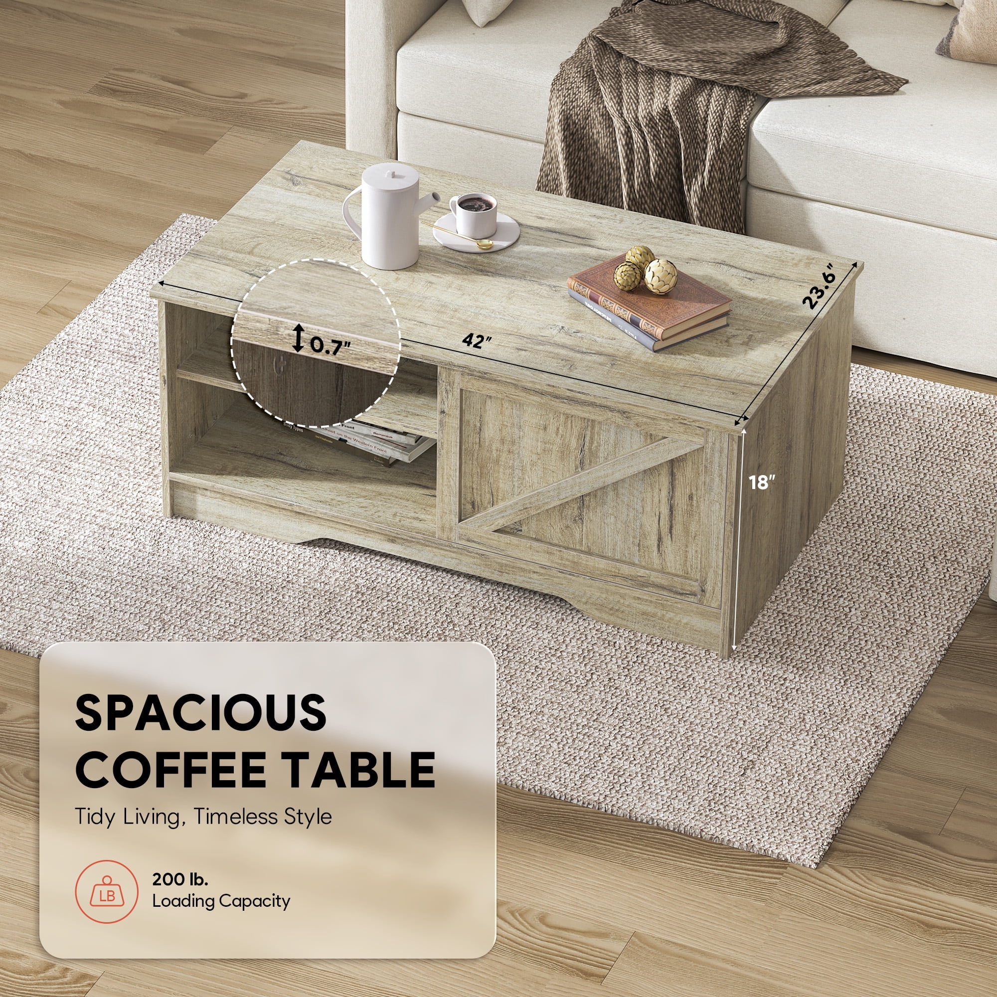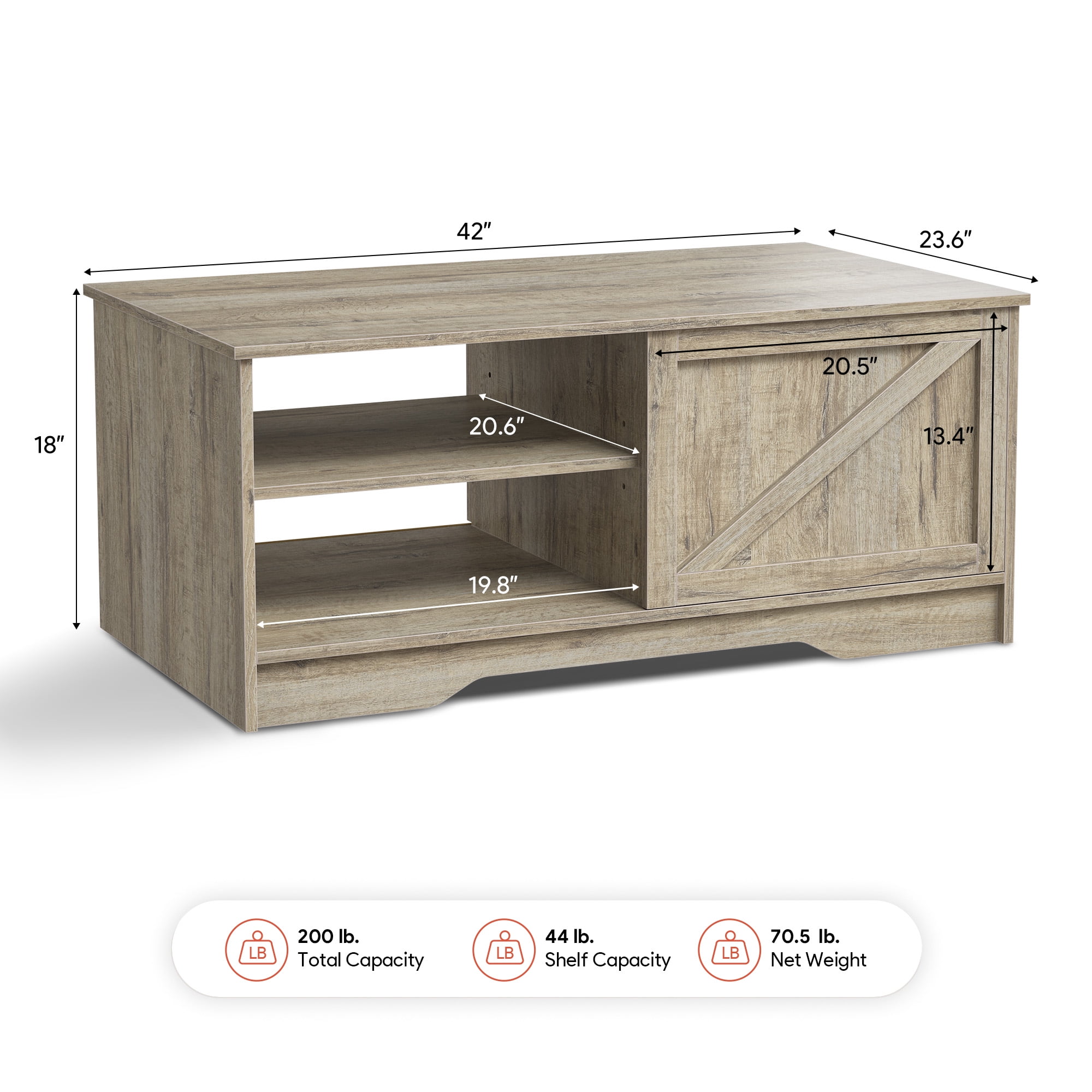 Bestco 42 in Farmhouse Coffee Table with Sliding Door, Rustic Coffee Table with Storage Cabinet & Adjustable Shelf, Modern Rectangular Center Table for Living Room Office, Light Rustic Oak