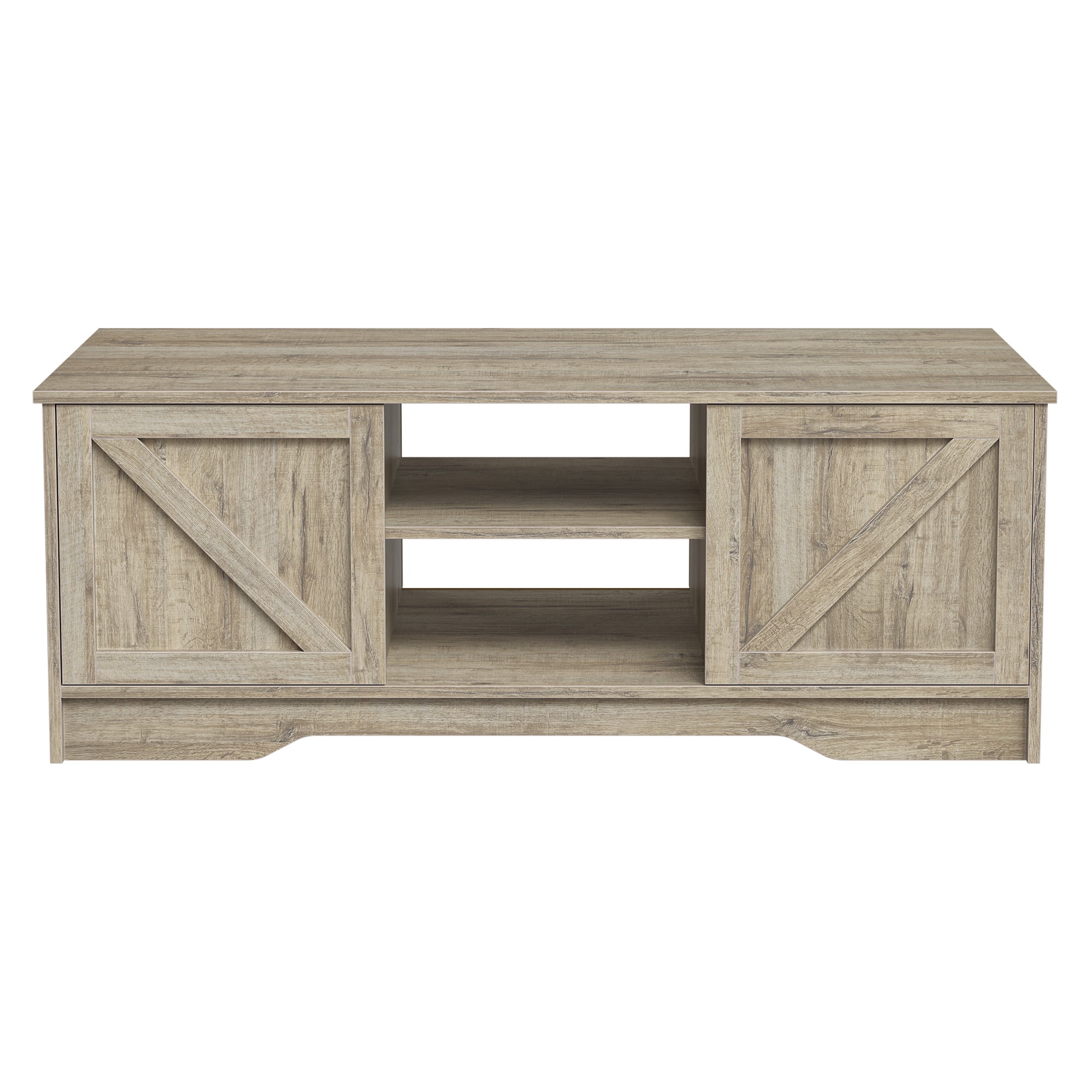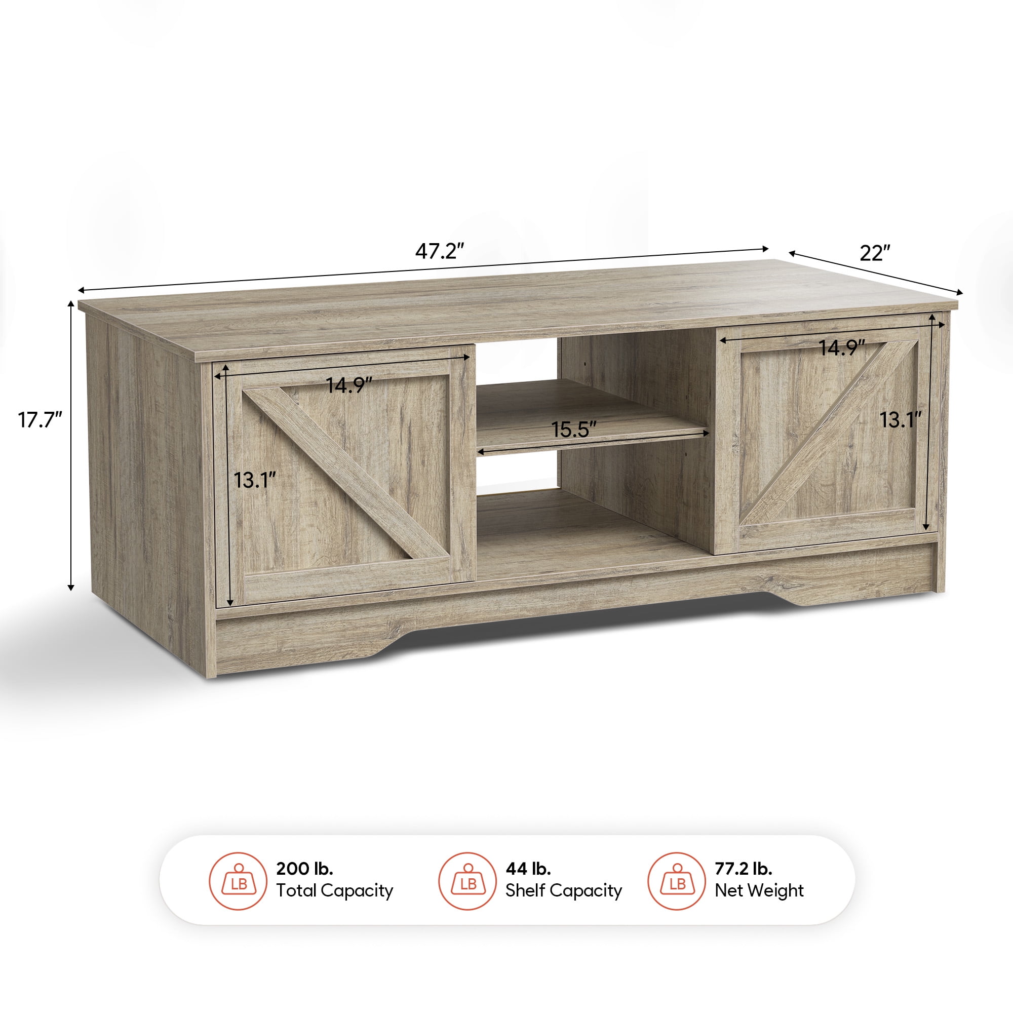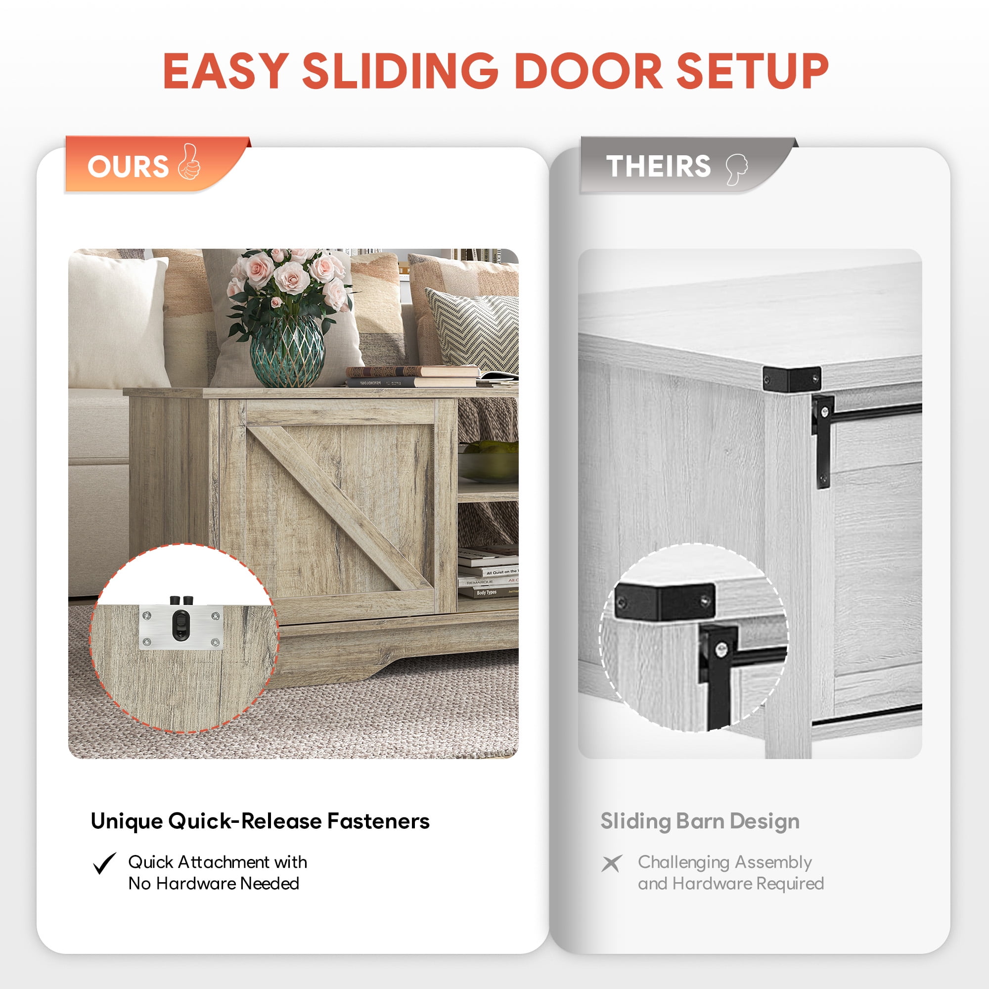 Bestco 47″ Farmhouse Coffee Table with Sliding Doors Rustic Center Table Light Rustic Oak
