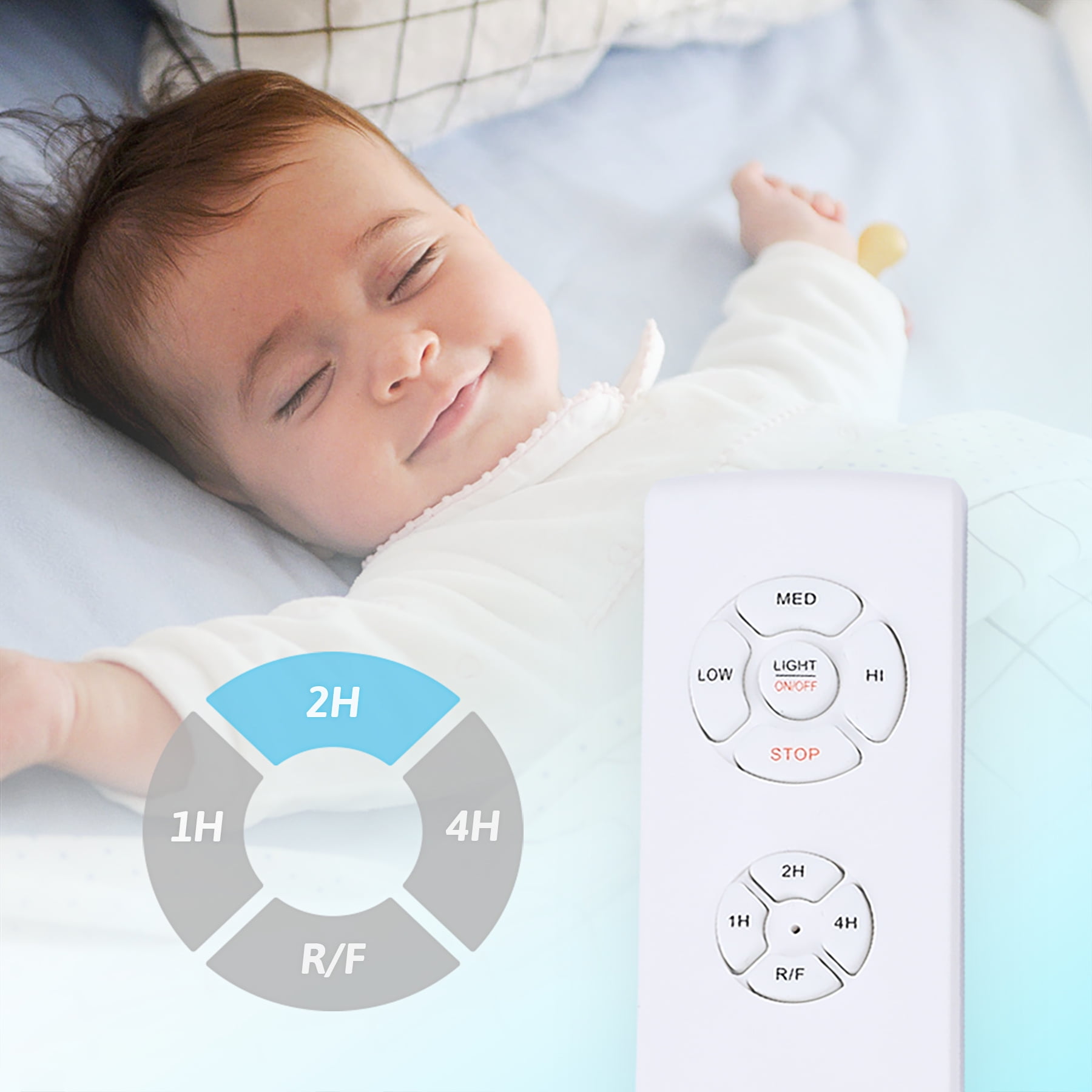 Stay cool in summer and warm in winter thanks to the reversible airflow Customize your comfort with 6 fan speeds and 4 timer settings (1/2/4/8 hours) Crystal shade crowns sleek wood blades and a metal canopy for timeless chic