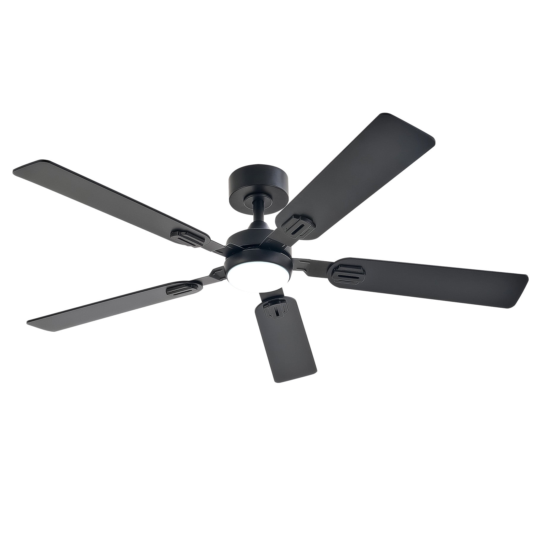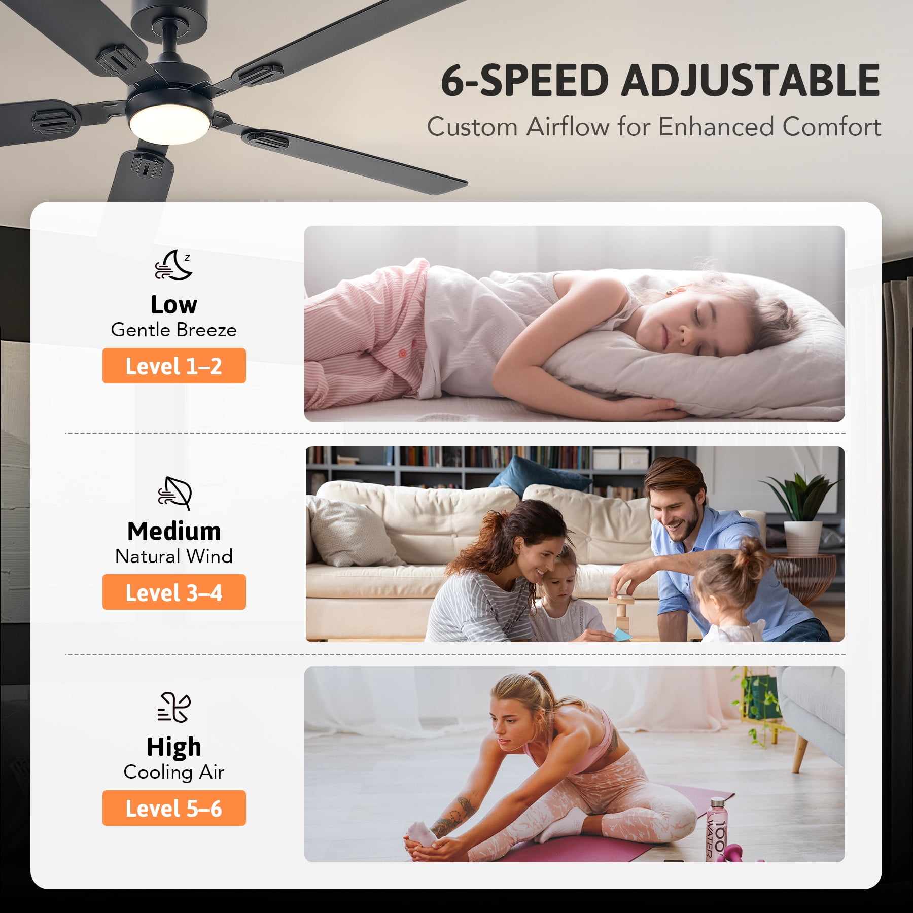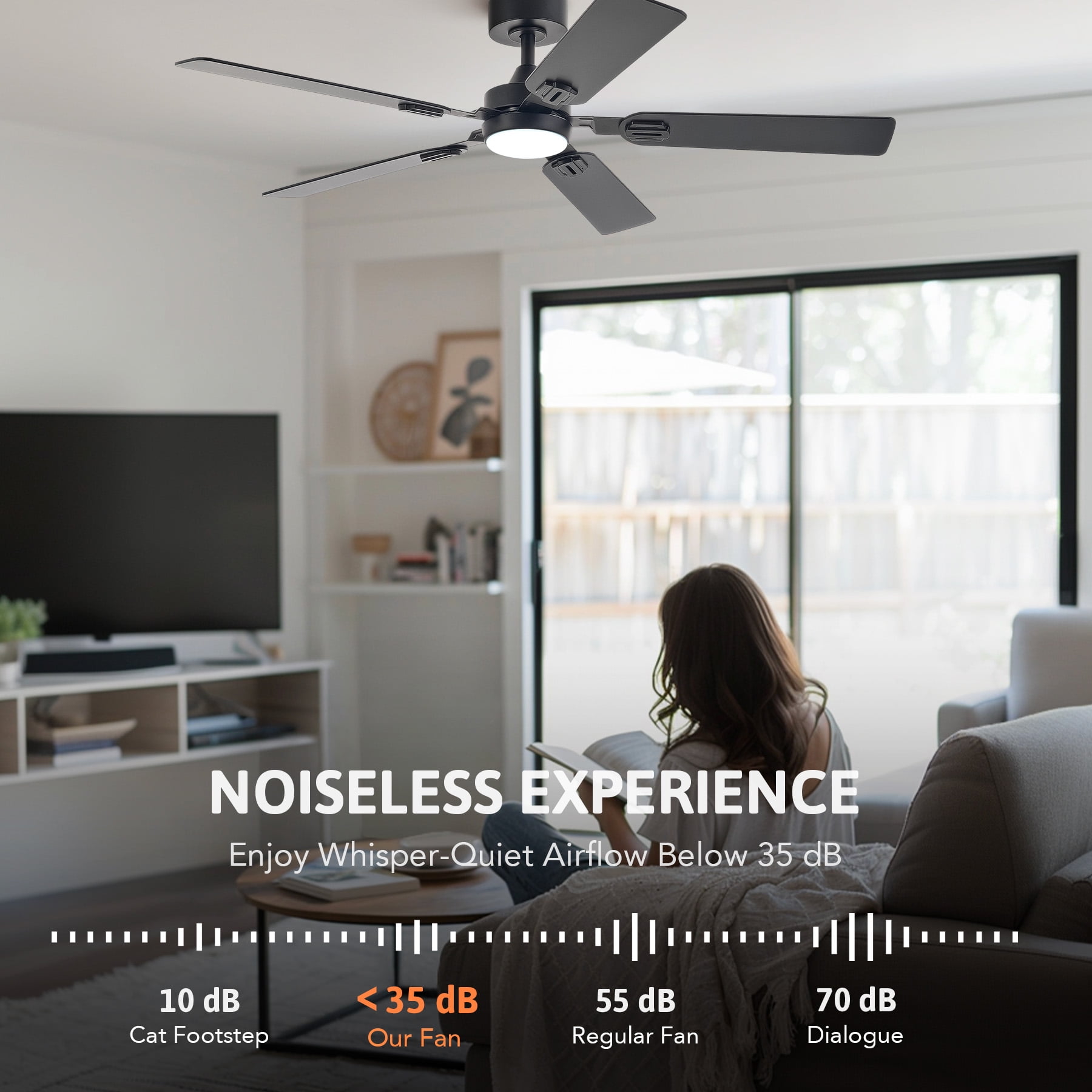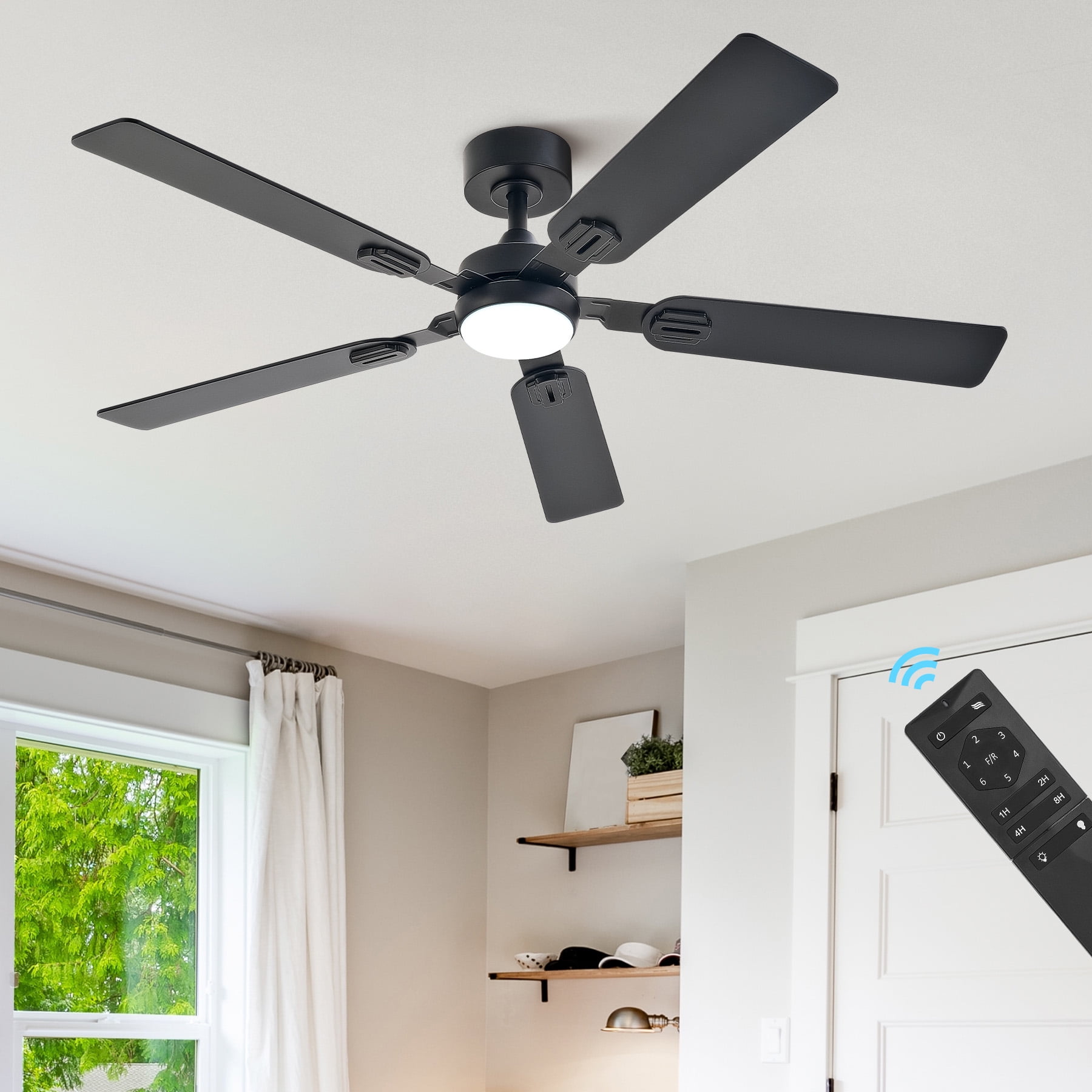 Upgrade your comfort and lower your energy bills with Bestco’s Ceiling Fan with Light. This 52-inch ceiling fan features 5 blades and is perfect for any space, whether it’s your cozy living room or your bustling office. Its adaptable design allows for easy mounting, even on ceilings with a 10° slope. With a 3 level adjustable LED light and 6 fan speeds, you’re in control of your atmosphere. Whether you’re working, reading, or relaxing, find your ideal brightness and fan speed with ease. Plus, manage everything conveniently with the included remote control. This ceiling fan also has a memory function for consistent performance, allowing you to stay cool in the summer and cozy up in the winter. Features 【Ceiling Fan with Light】: Bestco’s modern ceiling fan not only offers comfort but also prioritizes safety with an integrated safety cable. Ideal for various indoor settings including living rooms, bedrooms, offices, kitchens, farmhouses, and more, this energy-efficient 52 inch ceiling fan cuts power loss by up to 80% compared to traditional fans. 【Customize Your Comfort】: This ceiling fan with remote allows you to adjust among 6 speeds, 4 timer settings (1/2/4/8 hr.), and 3 color temperatures (3000K/4500K/6500K). Enjoy the flexibility of operating the fan and light separately according to your preference. 【Memory Function】: With its memory function, our ceiling fan maintains your preferred settings for an uninterrupted experience. It stores light and fan speed settings after running for at least 10 seconds, and then effortlessly returns to those settings when activated via the remote. 【Quiet & Reversible DC Motor】: This ceiling fan with remote control rotates in reversible directions to facilitate downward airflow in summer and upward airflow in winter, all at a mere 35 dB thanks to its quality DC motor. 【Versatile Installation】: Our modern ceiling fan with light comes with 2 downrods (5″and 10″) to fit high or low ceilings with an incline of up to 10°. The black and rustic brown blades allow you to customize your fan’s appearance to complement your decor. Specifications Material: Copper, Metal, Aluminum, MDF, Acrylic Color: Matte Black, Rustic Brown Blade Span: 52 in. (132 cm) Overall Height: 11.85-16.85 in. (30.1-42.8 cm) Blade to Ceiling Distance: 9-14 in. (23.1-35.8 cm) Canopy Diameter: 5.9 in. (15 cm) Installation Type: Downrod Downrod Lengths: 5 & 10 in. (12.5 & 25 cm) Maximum Slope Angle: 10° Timer Settings: 1, 2, 4, 8 hr. Fan Speeds: 6 Max. Noise Level: 35 dB Integrated LED Wattage: 20W LED Color Temperature: 3000K/4500K/6500K Applicable Room Size: 269 sq. ft. (25 m2) Net Weight: 12.8 lb. (5.8 kg) Package List 5 x Fan Blades 1 x Fan Motor 1 x Mounting Bracket 1 x Canopy 1 x Shade 1 x LED Light Kit 1 x Receiver 1 x Remote Control 1 x 5 in Downrod 1 x 10 in Downrod 1 x Coupling Cover 1 x Grommet 1 x Safety Cable 1 x Hardware Package 1 x Instructions