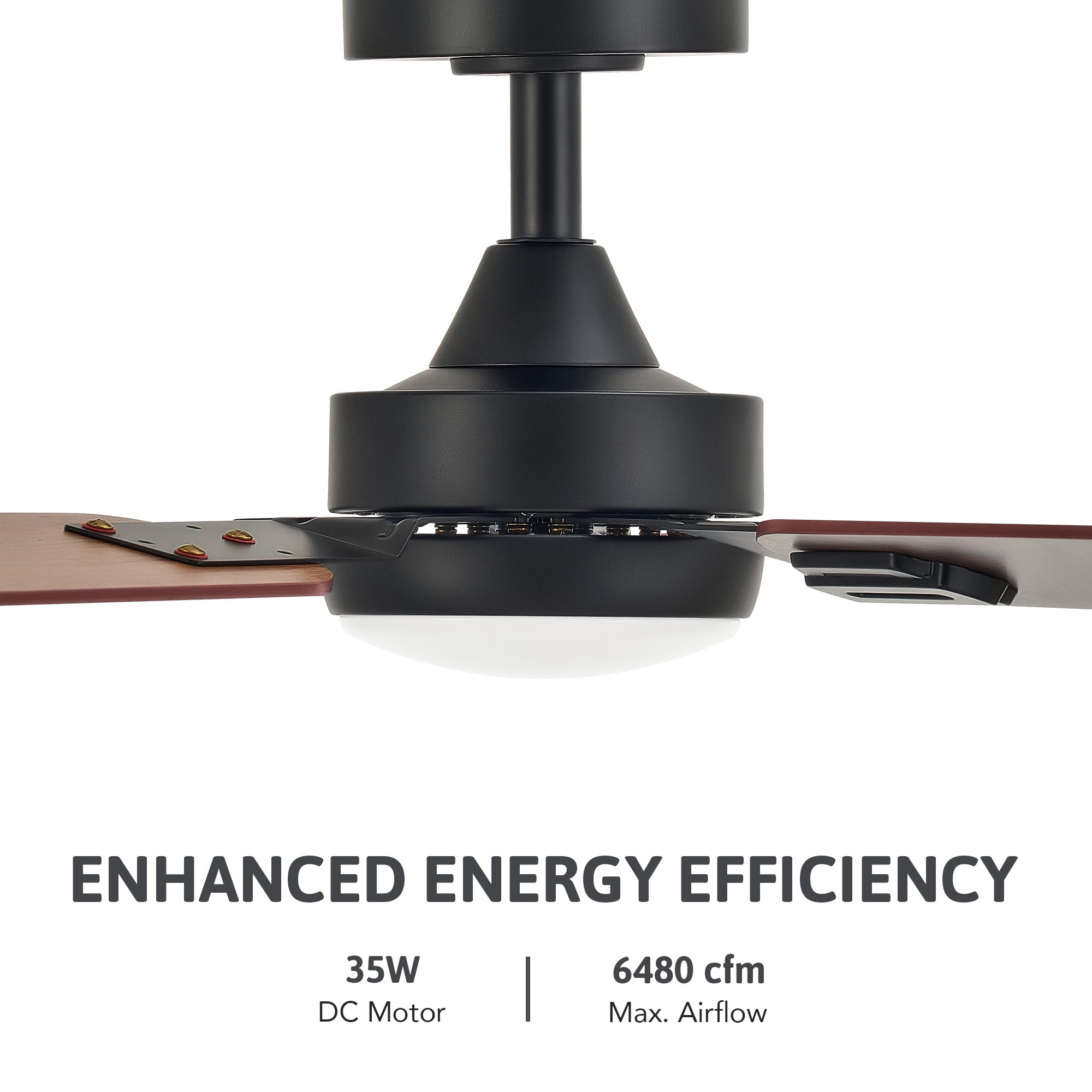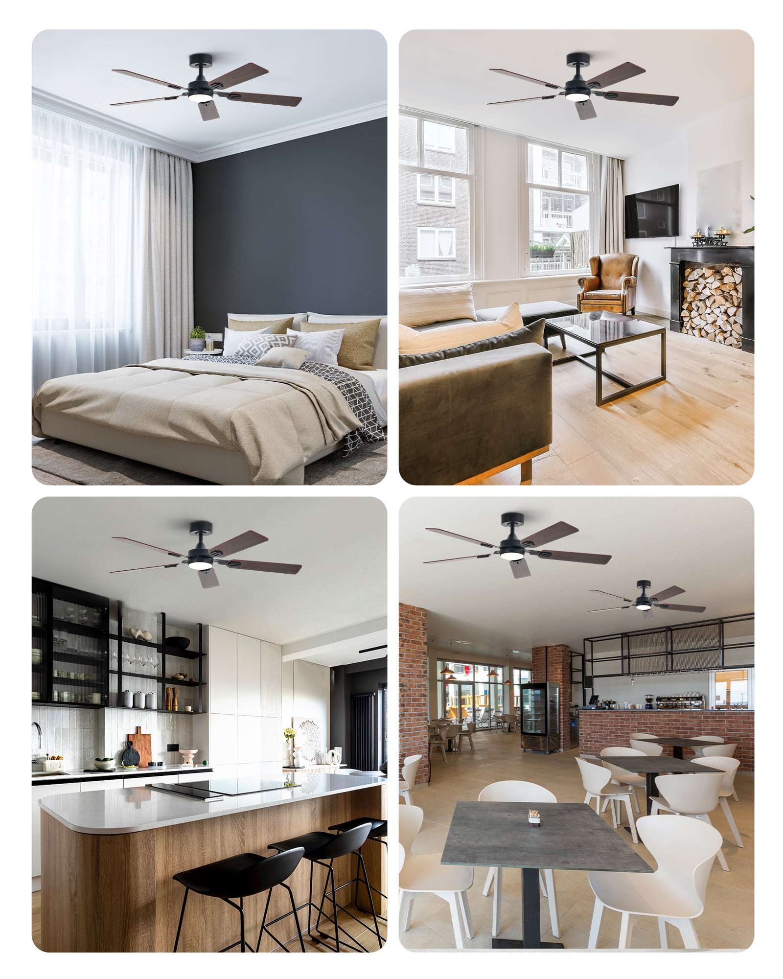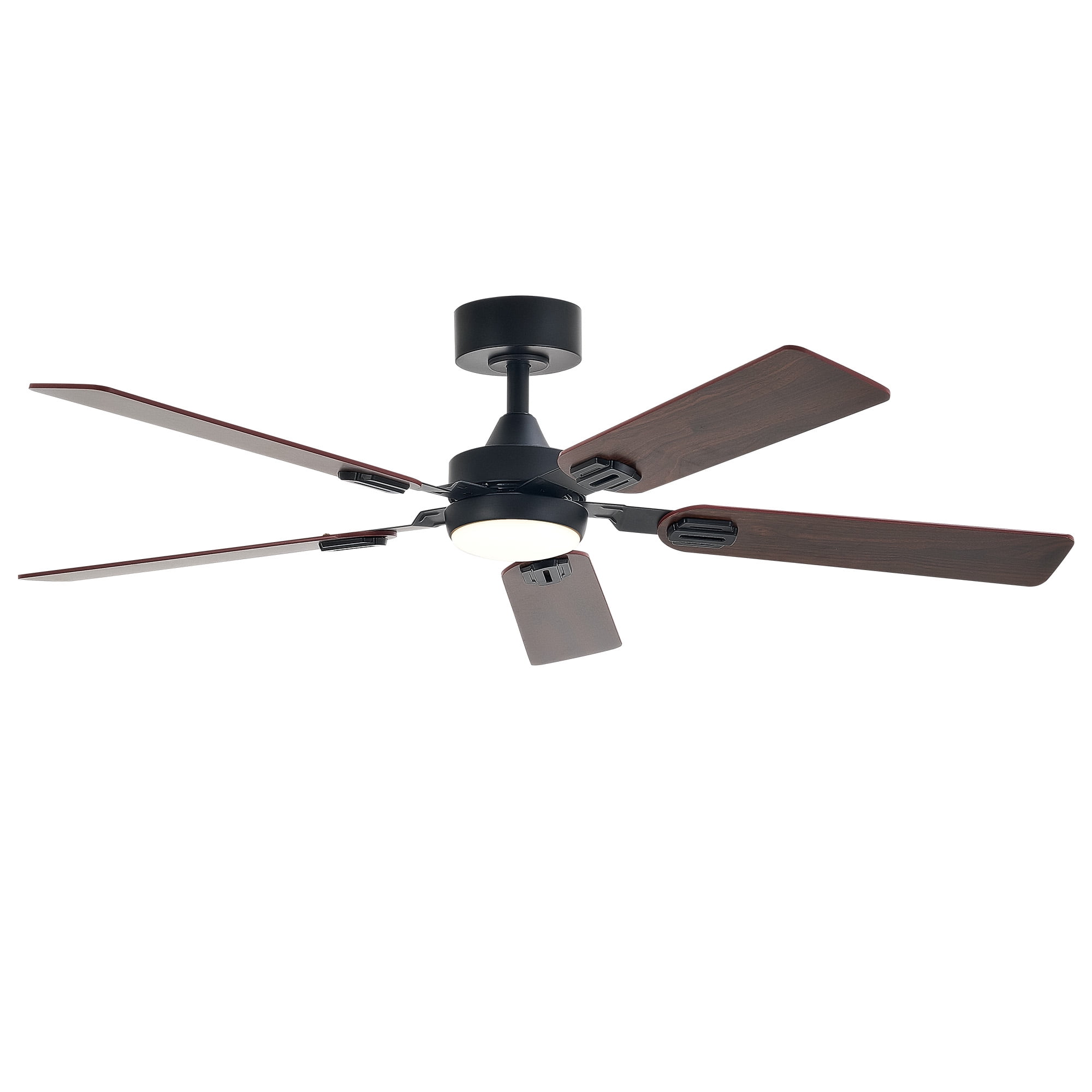 Upgrade your comfort and lower your energy bills with Bestco’s Ceiling Fan with Light. This 52-inch ceiling fan features 5 blades and is perfect for any space, whether it’s your cozy living room or your bustling office. Its adaptable design allows for easy mounting, even on ceilings with a 10° slope. With a 3 level adjustable LED light and 6 fan speeds, you’re in control of your atmosphere. Whether you’re working, reading, or relaxing, find your ideal brightness and fan speed with ease. Plus, manage everything conveniently with the included remote control. This ceiling fan also has a memory function for consistent performance, allowing you to stay cool in the summer and cozy up in the winter. Features 【Ceiling Fan with Light】: Bestco’s modern ceiling fan not only offers comfort but also prioritizes safety with an integrated safety cable. Ideal for various indoor settings including living rooms, bedrooms, offices, kitchens, farmhouses, and more, this energy-efficient 52 inch ceiling fan cuts power loss by up to 80% compared to traditional fans. 【Customize Your Comfort】: This ceiling fan with remote allows you to adjust among 6 speeds, 4 timer settings (1/2/4/8 hr.), and 3 color temperatures (3000K/4500K/6500K). Enjoy the flexibility of operating the fan and light separately according to your preference. 【Memory Function】: With its memory function, our ceiling fan maintains your preferred settings for an uninterrupted experience. It stores light and fan speed settings after running for at least 10 seconds, and then effortlessly returns to those settings when activated via the remote. 【Quiet & Reversible DC Motor】: This ceiling fan with remote control rotates in reversible directions to facilitate downward airflow in summer and upward airflow in winter, all at a mere 35 dB thanks to its quality DC motor. 【Versatile Installation】: Our modern ceiling fan with light comes with 2 downrods (5″and 10″) to fit high or low ceilings with an incline of up to 10°. The black and rustic brown blades allow you to customize your fan’s appearance to complement your decor. Specifications Material: Copper, Metal, Aluminum, MDF, Acrylic Color: Walnut, Cherry Blade Span: 52 in. (132 cm) Overall Height: 11.85-16.85 in. (30.1-42.8 cm) Blade to Ceiling Distance: 9-14 in. (23.1-35.8 cm) Canopy Diameter: 5.9 in. (15 cm) Installation Type: Downrod Downrod Lengths: 5 & 10 in. (12.5 & 25 cm) Maximum Slope Angle: 10° Timer Settings: 1, 2, 4, 8 hr. Fan Speeds: 6 Max. Noise Level: 35 dB Integrated LED Wattage: 20W LED Color Temperature: 3000K/4500K/6500K Applicable Room Size: 269 sq. ft. (25 m2) Net Weight: 12.8 lb. (5.8 kg) Package List 5 x Fan Blades 1 x Fan Motor 1 x Mounting Bracket 1 x Canopy 1 x Shade 1 x LED Light Kit 1 x Receiver 1 x Remote Control 1 x 5 in Downrod 1 x 10 in Downrod 1 x Coupling Cover 1 x Grommet 1 x Safety Cable 1 x Hardware Package 1 x Instructions