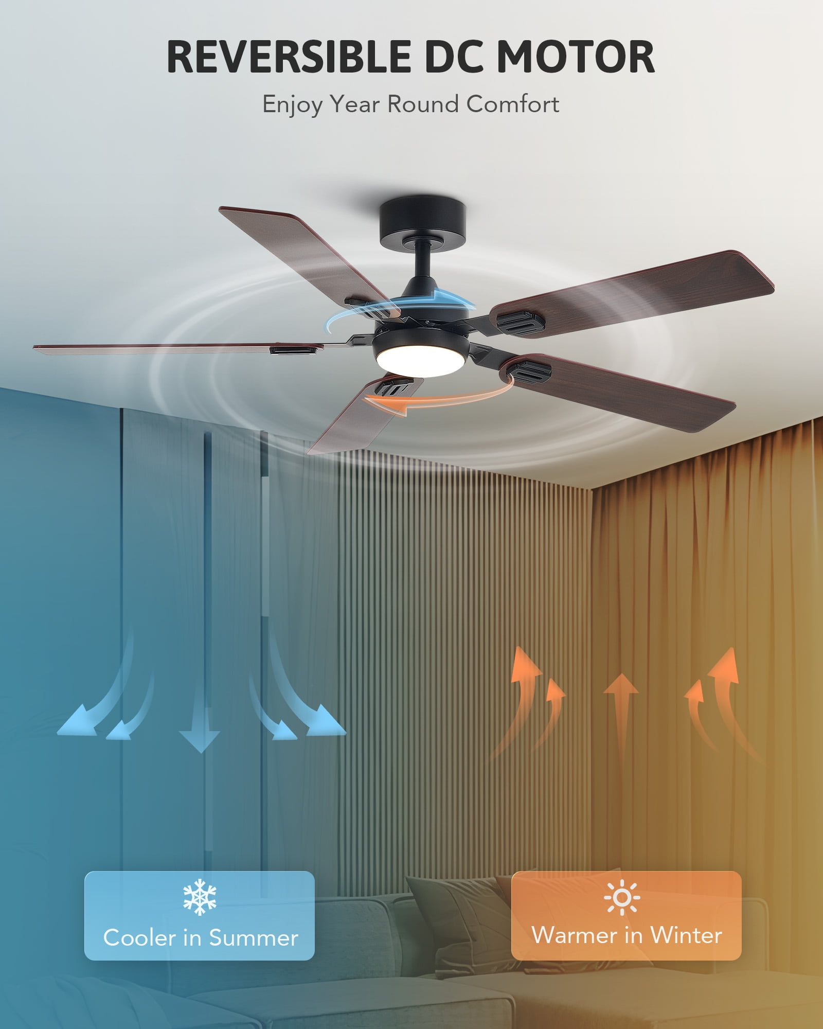 Stay cool in summer and warm in winter thanks to the reversible airflow Tailor your airflow and lighting with 6 fan speeds & 3 color temperatures Safety cable and remote control are included for safe setup and handy use