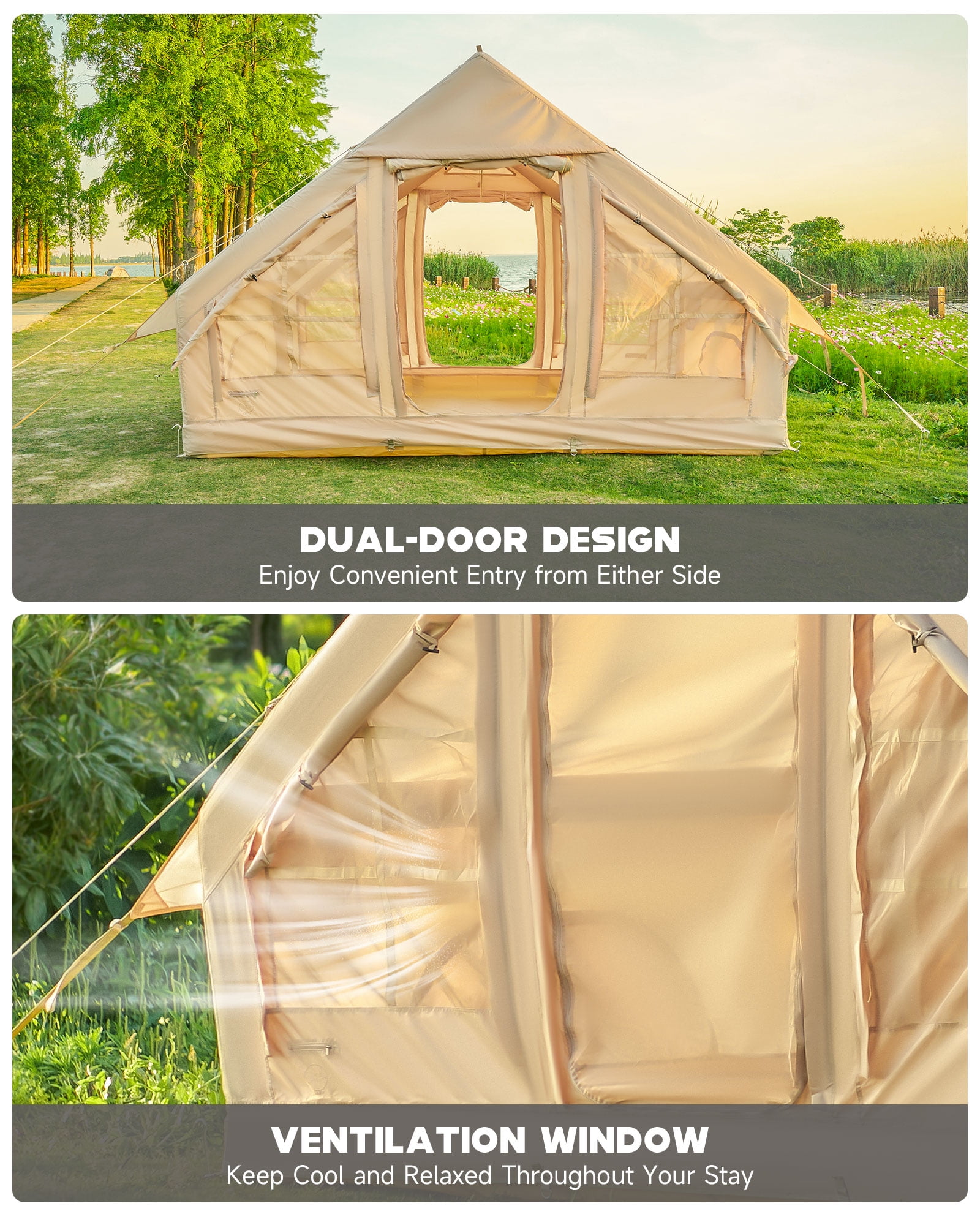 Bestco inflatable Camping Tent 4-6 person, Waterproof with Dual Doors and Windows. Includes Pump for Easy Setup, Suitable for All Seasons