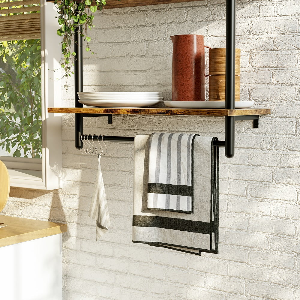 Bestier 38 inch Wall Mounted Floating Shelves with Towel Bar & Hooks Bookshelf in Rustic