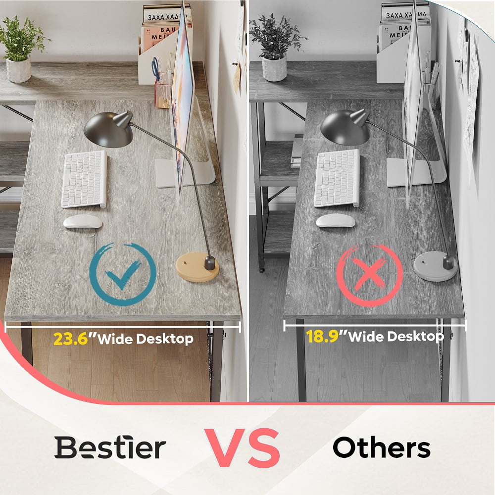 Bestier 47 inch Corner L-Shaped Desk with Storage Shelves Writing Desk Wash Grey