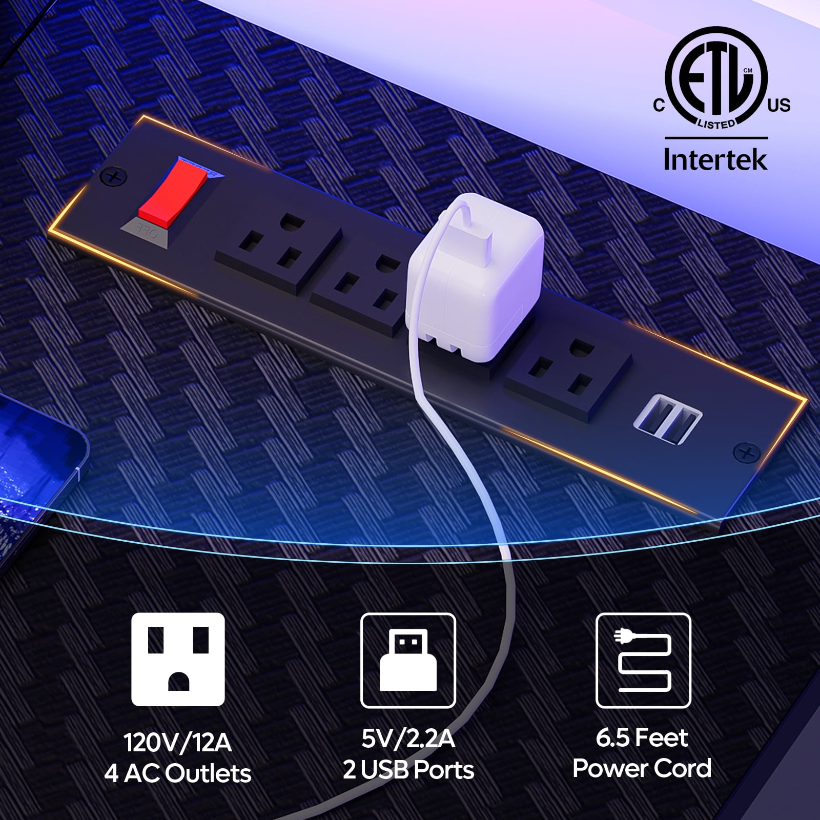 Power Outlets: The Bestier 52 inch Gaming Desk is a comprehensive workspace solution, perfect for gamers and professionals. This desk features a power outlet with 4 AC outlets and 2 USB ports, along with a 6.5 feet power cord for convenient device charging, ensuring your gaming or work session is never interrupted. Its sleek design and durable construction make it a practical and stylish addition to any room. RGB LED Lights: Enhance your gaming or work experience with the Bestier 52 inch Gaming Desk. Equipped with RGB LED lights, it creates a dynamic and immersive gaming or working environment. The lights offer 22 dynamic modes and 7 main colors, adding a modern and stylish touch to your gaming or office space. Monitor Stand: The Bestier Gaming Desk comes with an ergonomic monitor stand, providing a comfortable viewing angle for your gaming or work setup. This feature helps reduce neck strain during long gaming or work sessions, ensuring a comfortable and ergonomic workspace. Cup Holder & Hook: Offering additional convenience, the Bestier 52 inch Gaming Desk features a cup holder and headphone hook. These features help keep your workspace clutter-free, ensuring your gaming or work session is focused and productive. Large Workspace: With a generous 52 x 19.69 inch workspace, the Bestier Gaming Desk provides ample room for your gaming or office setup. Whether you’re using it for gaming or work, its spacious surface, coupled with its unique features, make it a standout addition to any room. Enjoy the convenience and style that this desk brings to your space.