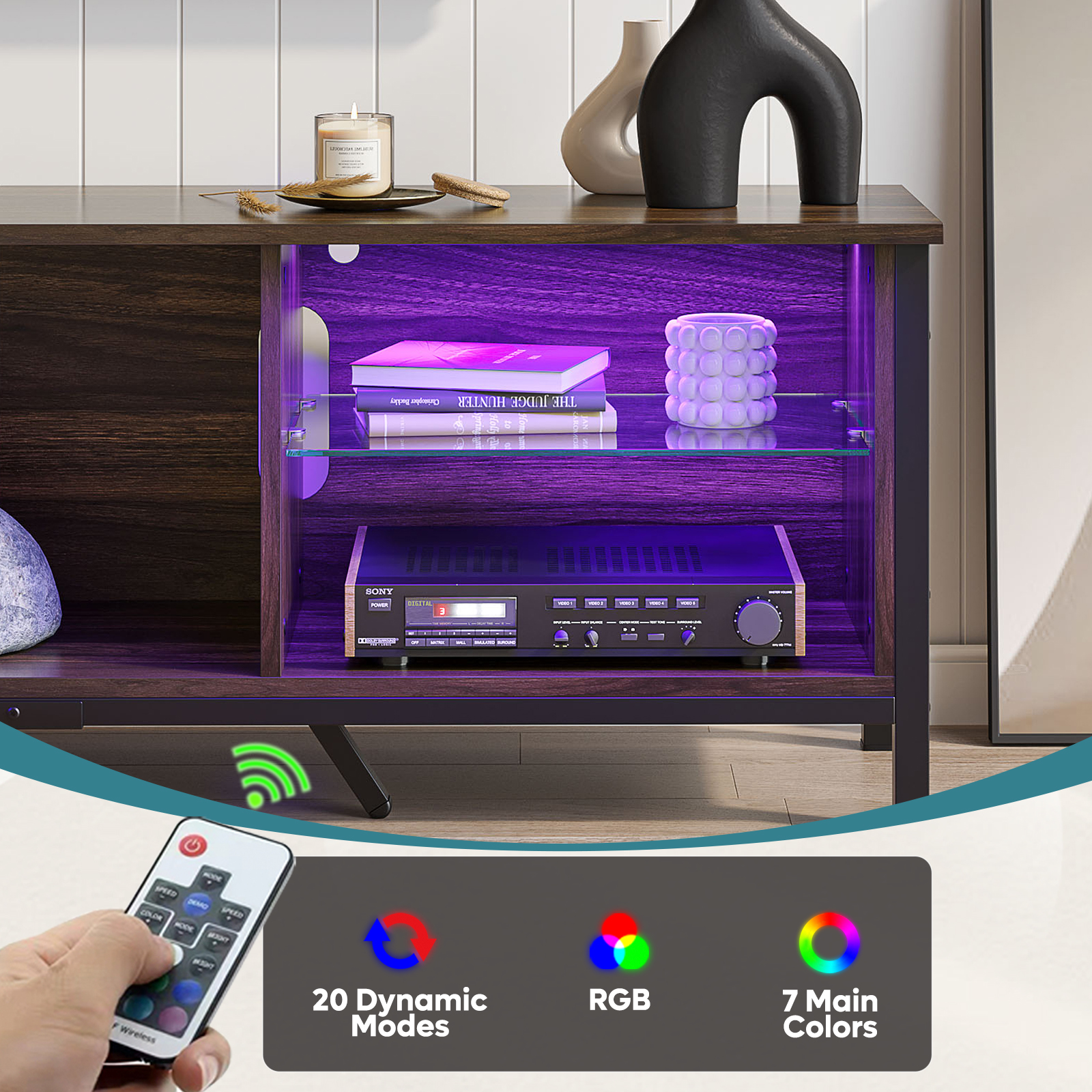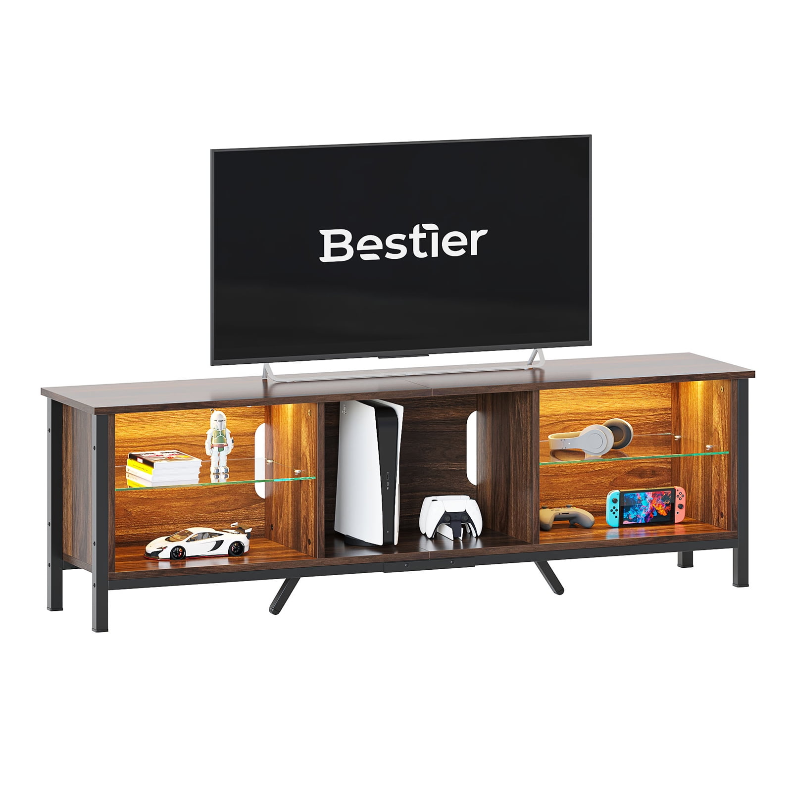 Bestier 70 Inch TV Stand for TVs up to 80″, Entertainment Center with RGB LED Lights & Open Storage, Walnut