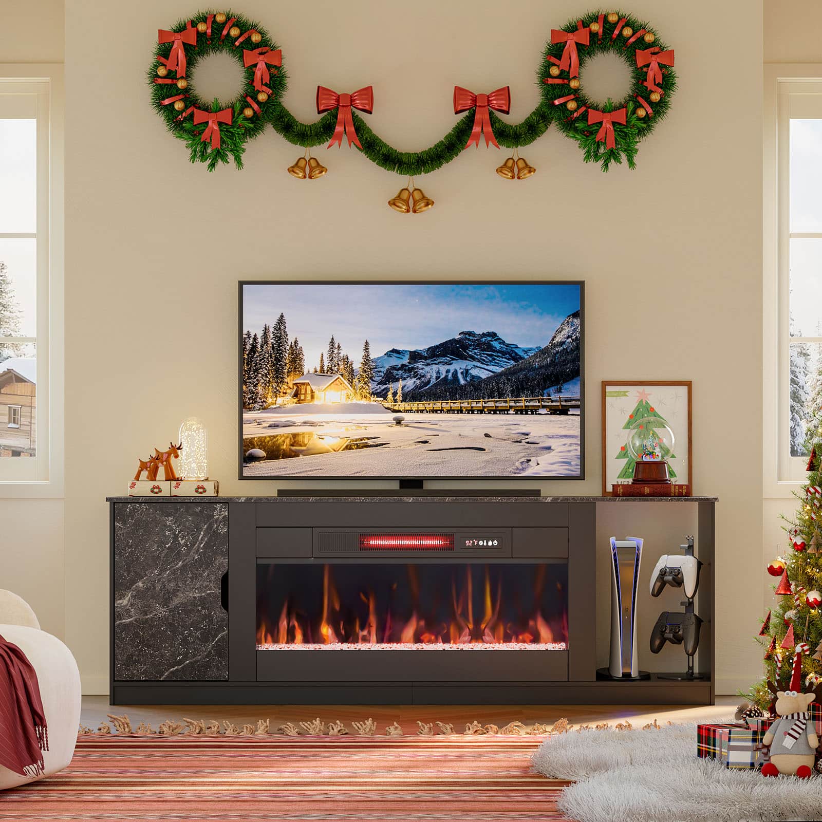 Elevate your living room with the Bestier 70″ Modern Fireplace TV Stand, crafted to hold TVs up to 80 inches. This sleek entertainment center blends functionality with a contemporary flair, making it perfect for both movie lovers and gamers.