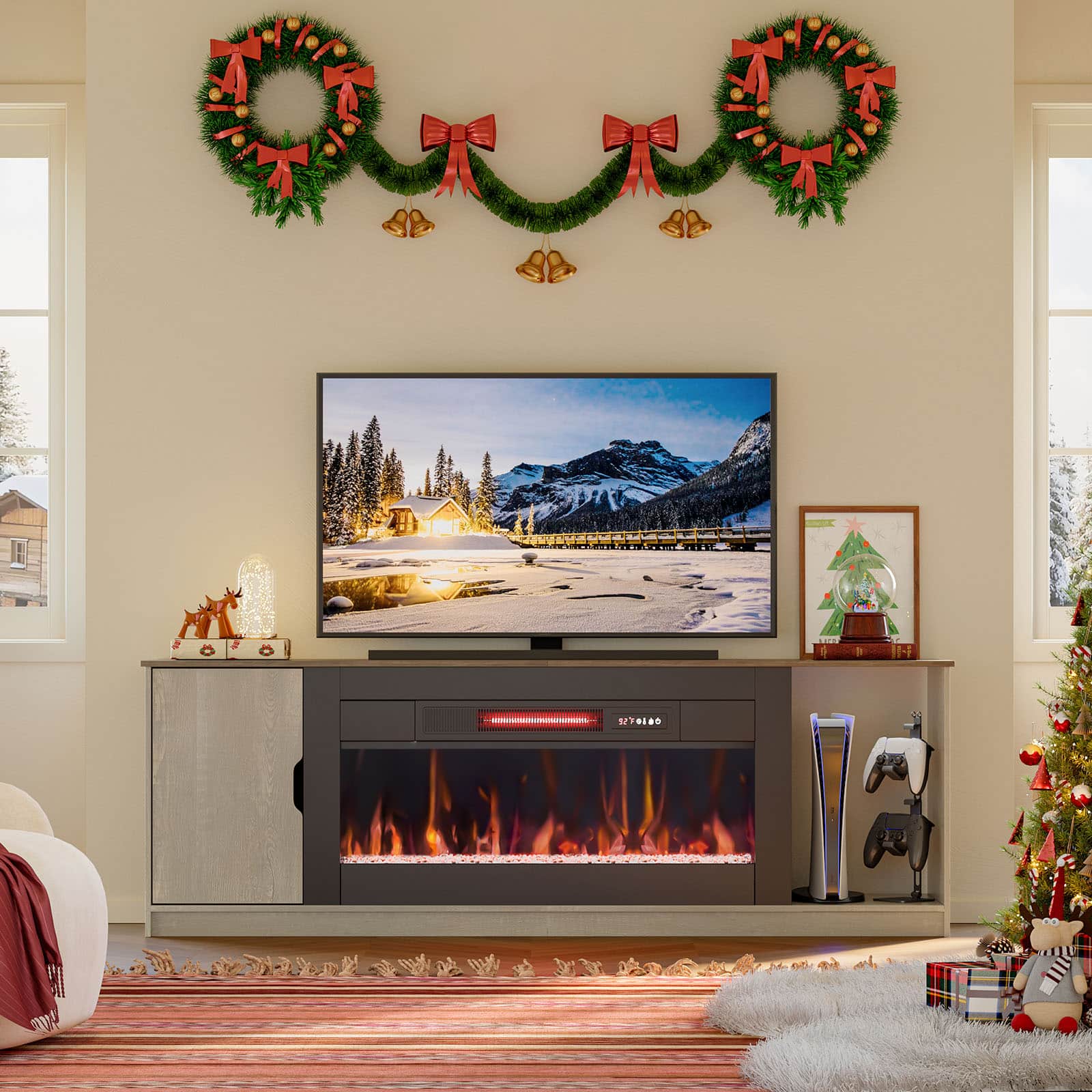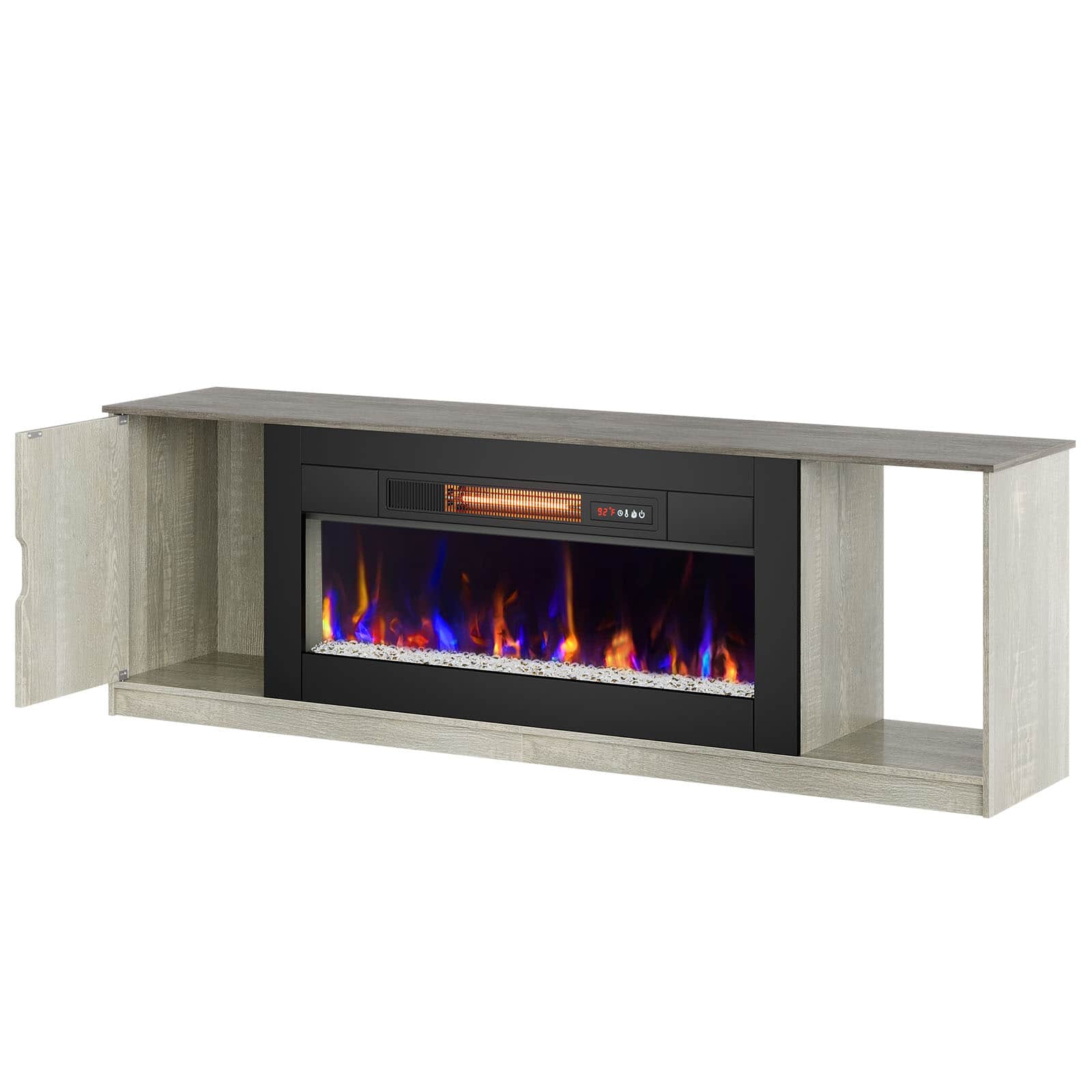 Bestier – 70″ Gaming TV stand with 36″ fireplace cabinets & open storage for TVs up to 75″ and PS5 consoles – Gray