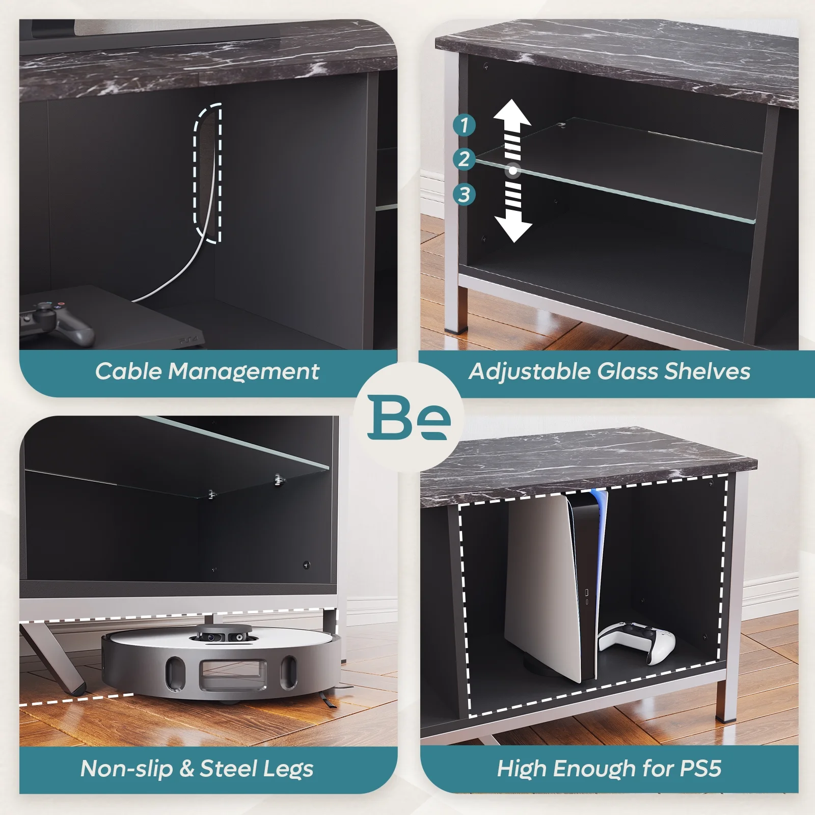 Bestier 70″ TV Stand for TVs up to 80″ with LED Lights Modern Gaming Entertainment Center, Black Marble