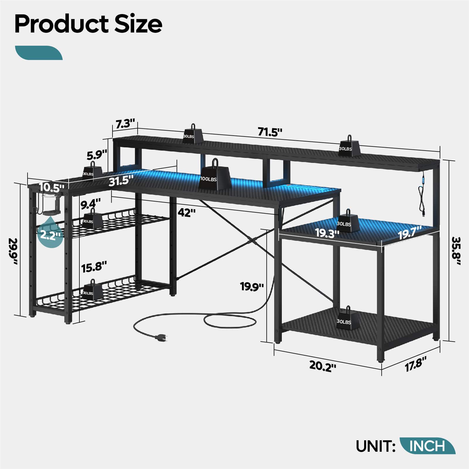 - Product Name: Bestier 71inch L-Shaped LED Gaming Desk with Power Outlet Computer Desk