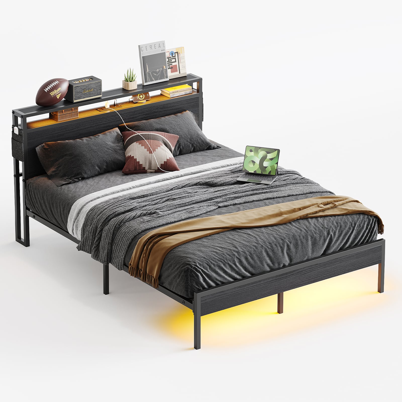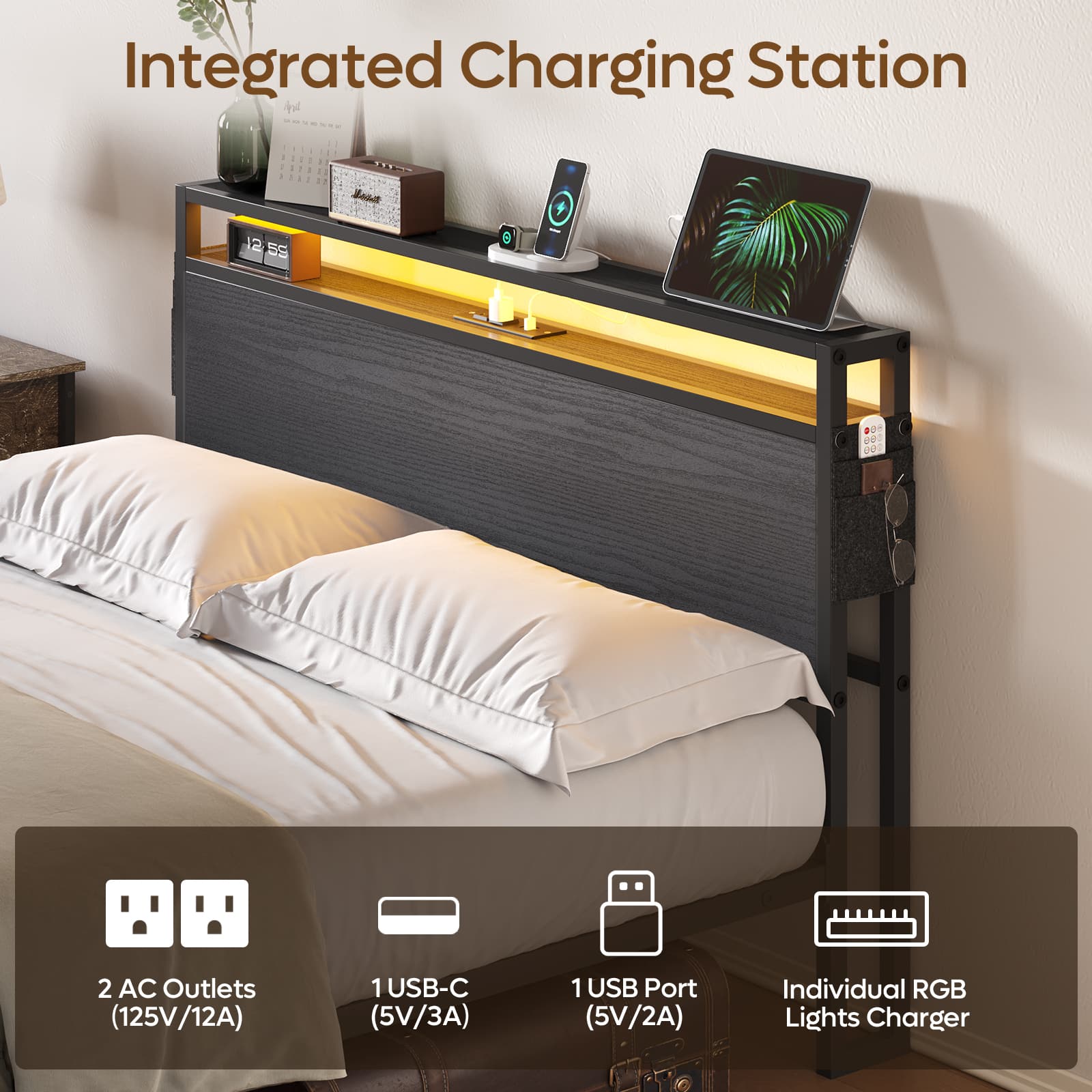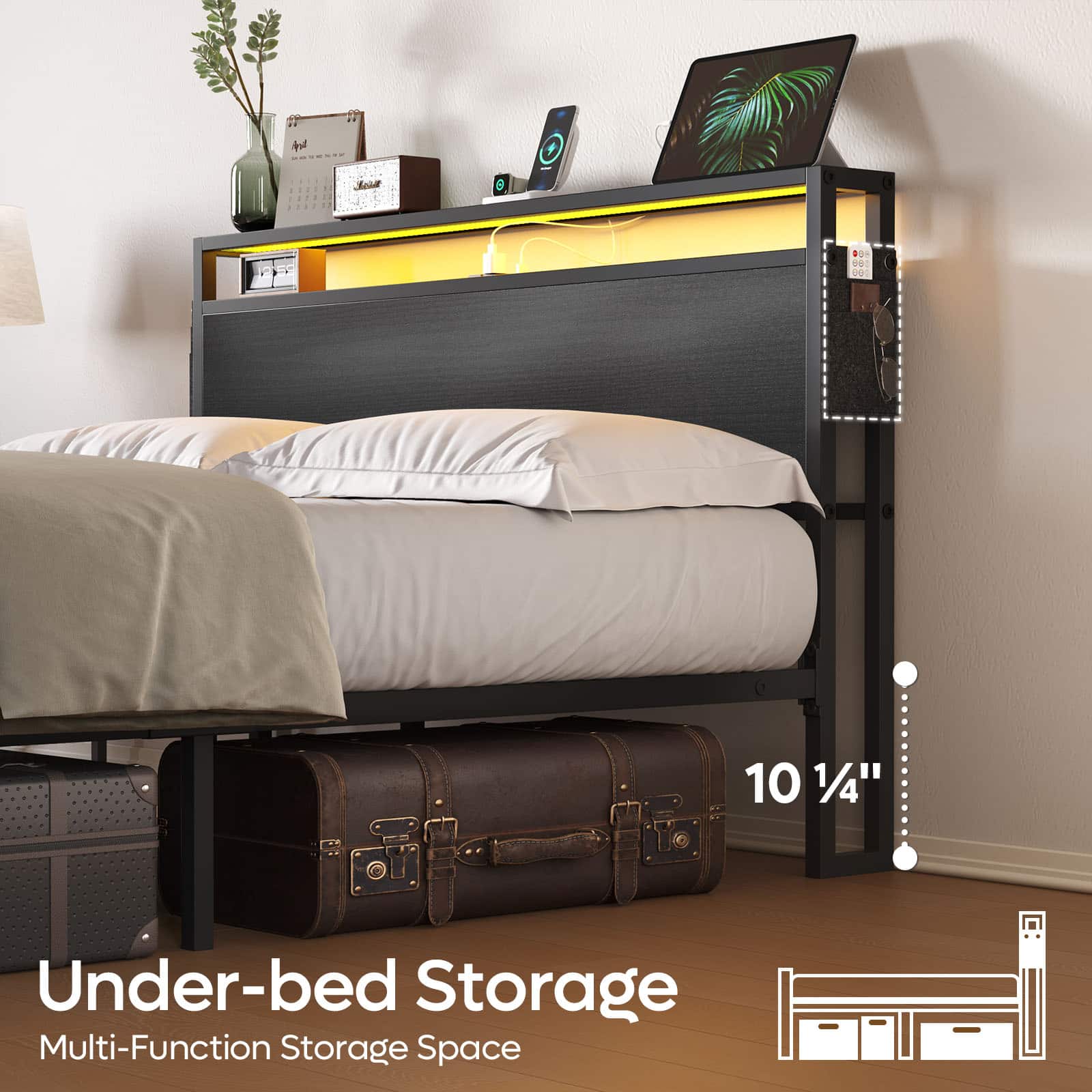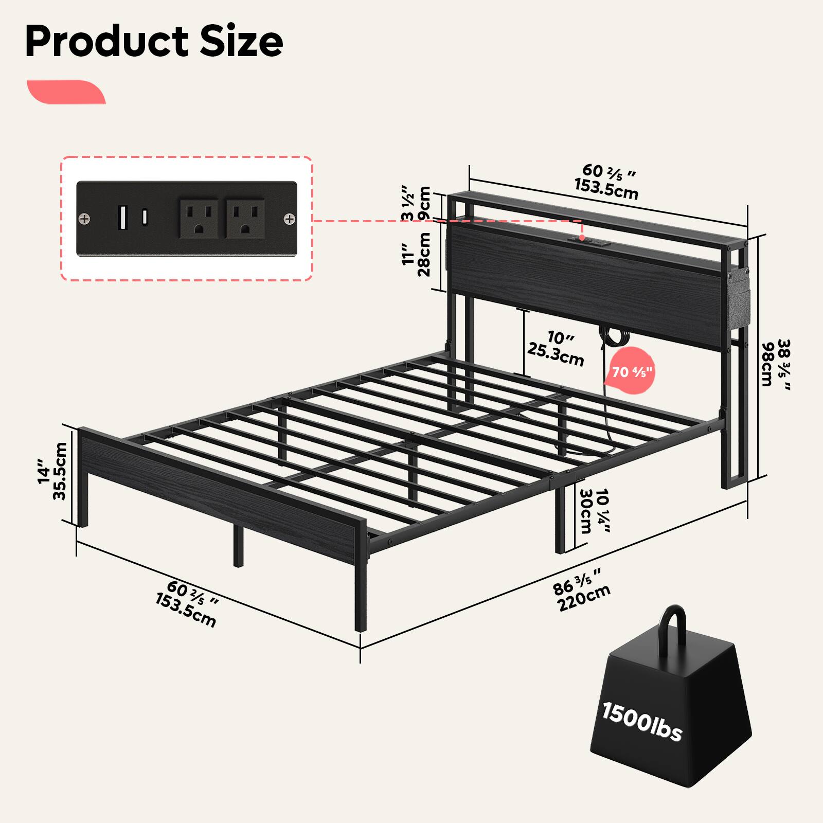 - Product Name: Bed Frame Platform Bed with Storage Headboard LED Lights and Charging Station Queen