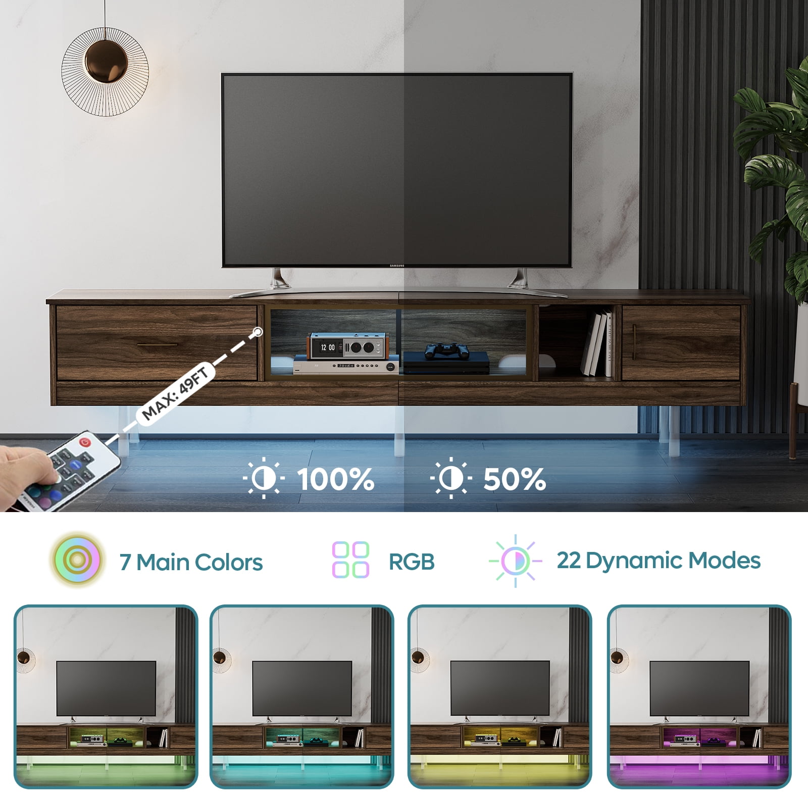 Bestier Floating TV Stand for TVs up to 90″ LED Entertainment Center for Living Room, Walnut