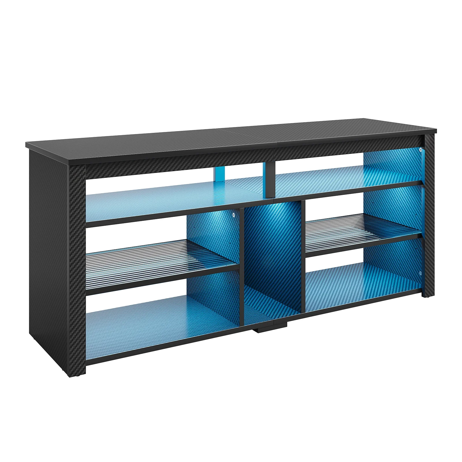 Chic TV Console with LED Lights: Upgrade your living space with our visually stunning TV console. The sleek design, paired with Acrylic shelves, creates a unique ambiance that seamlessly blends with any decor. Built-in LED lights offer 7 colors and 22 adjustable modes, which allows you to customize your entertainment space with RGB remote control, for a vibrant touch to your leisure experience. Gaming Entertainment Center with Storage: Featuring open storage space and adjustable shelves to cater to your diverse storage needs. With a multi-compartment design, it facilitates organized storage for neatly accommodating TV boxes, media devices, DVDs, remotes, and gaming consoles. The discreet cord holes at the back ensure a tidy appearance by seamlessly managing wires. Versatile Compatibility: Elevate your space with this multi-function 65” TV stand, seamlessly accommodating various TV sizes. The 4-tier open storage ensures a neat and organized setup, with a specially designed middle compartment for convenient storage of PS gaming consoles. Perfect for diverse settings like living rooms, bedrooms, offices, and game rooms, this TV table provides versatile functionality. Robust Endurance: Expertly crafted from premium P2-grade particleboard and Acrylic board, our stand offers a perfect blend of safety and strength. The top shelf, with a robust 160-pound bearing capacity, guarantees steadfast support for your TV and everyday essentials, seamlessly blending reliability with style for your living space. Effortless Assembly: Say goodbye to clutter with our TV stand, featuring comprehensive step-by-step instructions and all essential accessories and tools for effortless installation. Streamline the assembly process and embrace your new TV setup without any hassle.