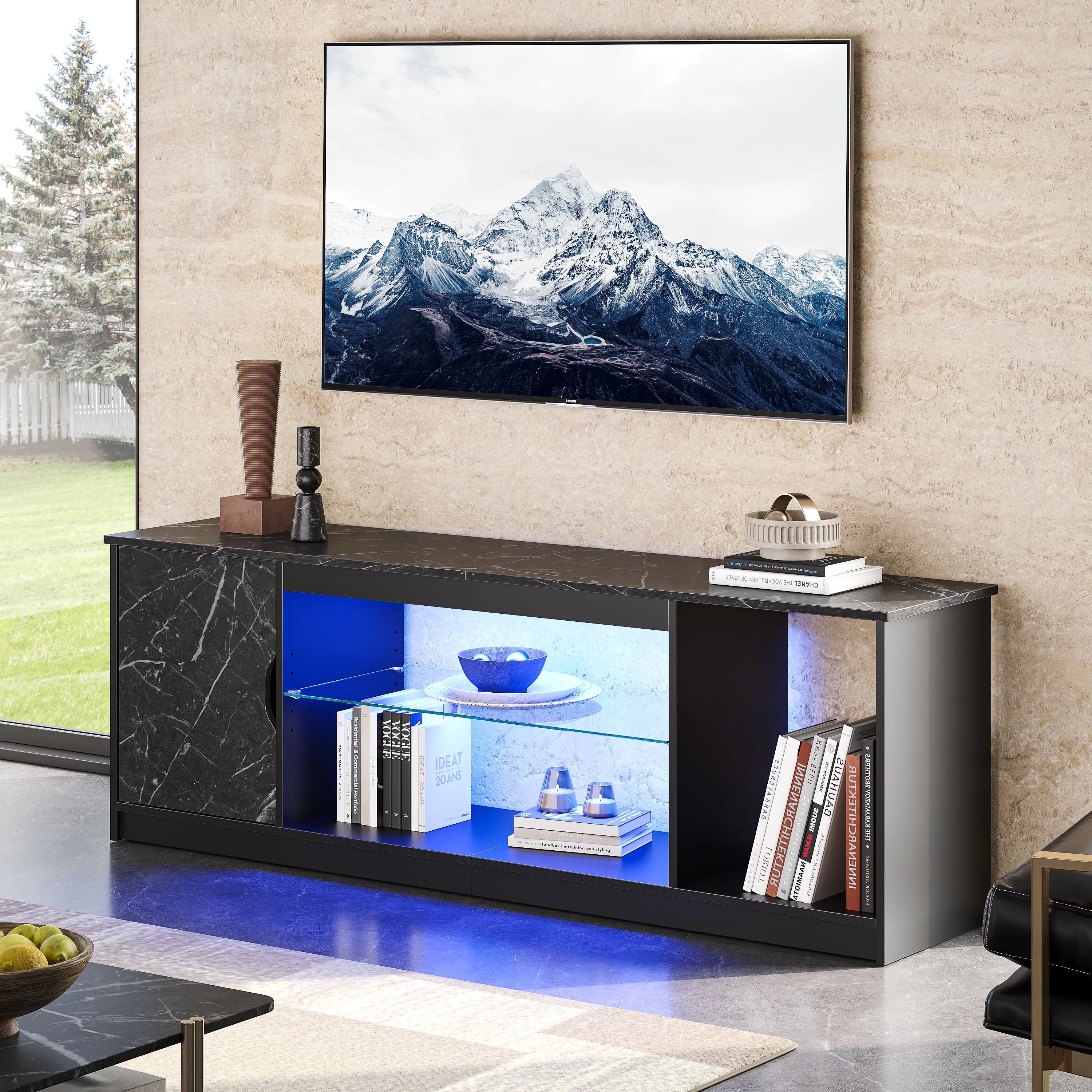 Bestier LED TV Stand for 60/65 inch TV PS5 Gaming Entertainment Center for TVs with Storage Cabinet for Living Room, Black Marble