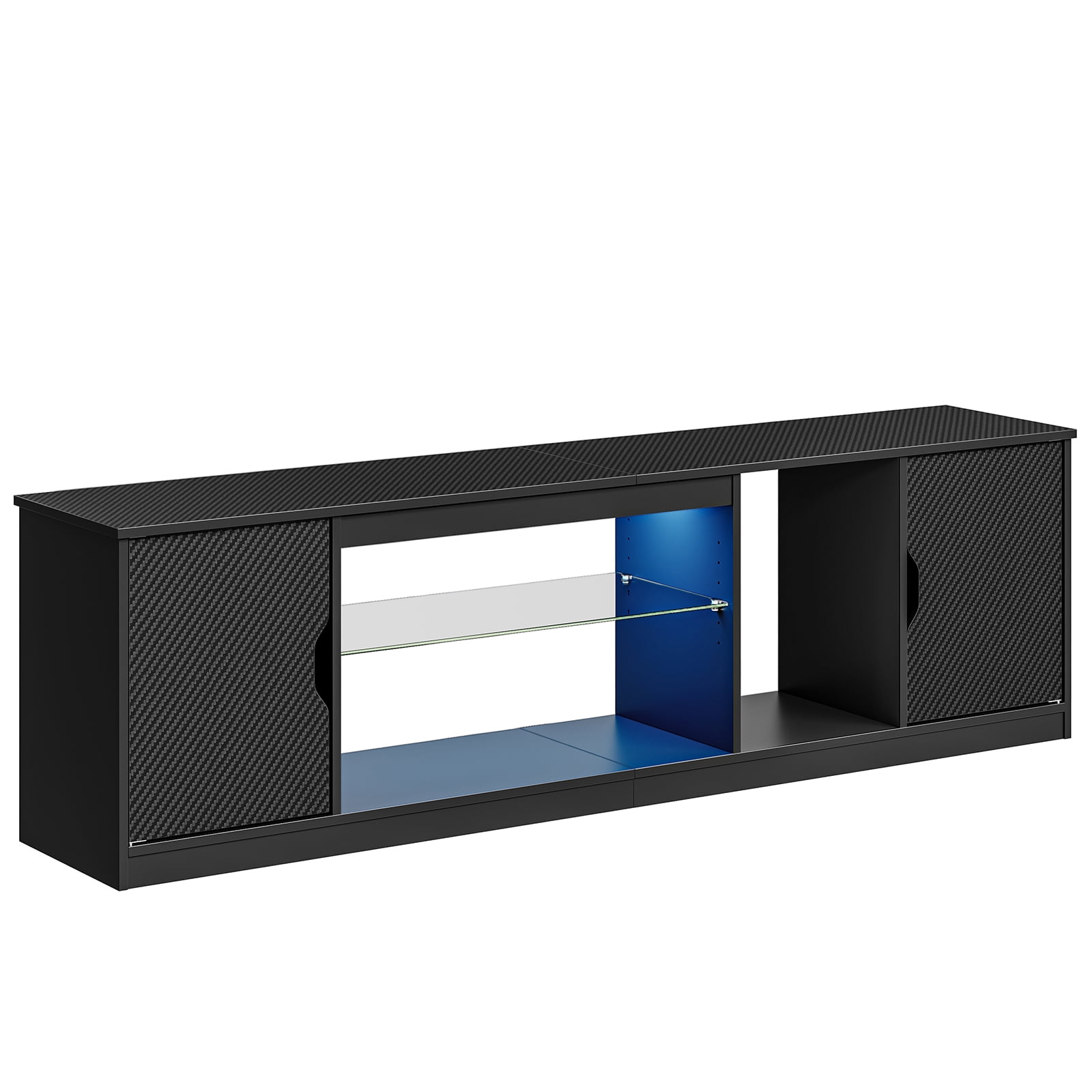 Gaming LED TV Stand: Bestier 70 inch gaming TV console suitable for 30-80 inch TVs,built-in LED lights offer 7 colors and 22 adjustable modes, allowing you to customize your entertainment space with an RGB remote control and add vitality to your leisure experience. Super Storage Space: Bestier Gaming Entertainment Center with large storage compartments included 3 open compartments and 2 storage cabinet. Middle open shelf with glass panel for the PS5, which can be adjusted to 6 different heights. Multi compartment design can neatly accommodate TV boxes, media devices, DVDs, Xbox and gaming consoles. It has cable holes on the back to manage the cables, ensuring a neat appearance. Stylish Design: TV cabinet with LED lights are decorated with glass to achieve the ultimate lighting display effect. In addition, you don’t need to worry about its quality. The 4mm glass is enough to place entertainment equipment such as XBOX and is easy to clean. Durable and sturdy: The size of the TV cabinet is 70.8 “L x 13.8” W x 20.7 “H. Our TV station is carefully crafted from high-quality P2 grade particle board, providing a perfect combination of safety and strength. The top shelf with a robust 176 lbs bearing capacity, guarantees steadfast support for your TV and everyday essentials. Easy assembly: equipped with necessary hardware, tools, and detailed installation instructions. We also provide product installation video tutorials on the link. Bestier takes full responsibility for any quality issues, and we always stand by and provide satisfactory service.
