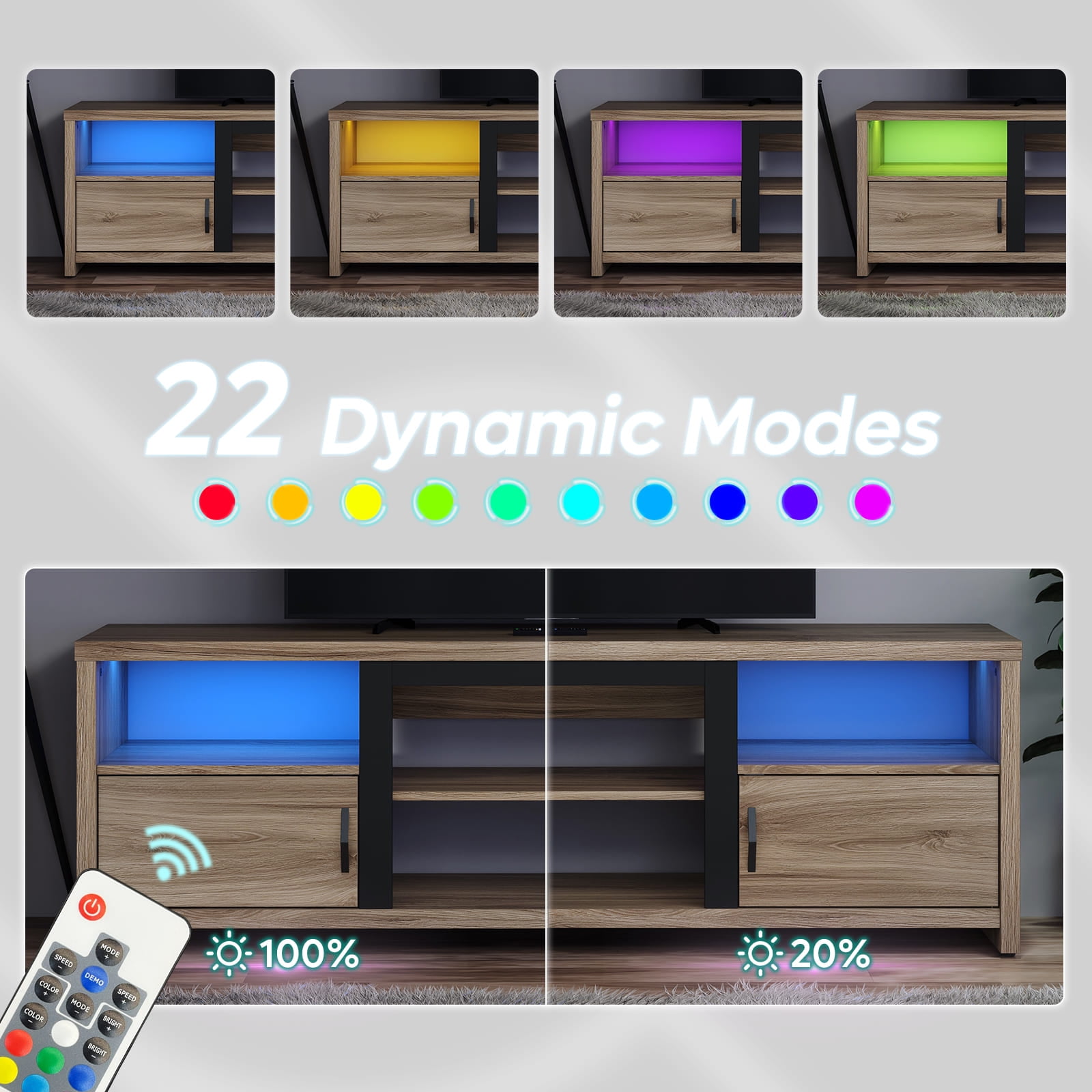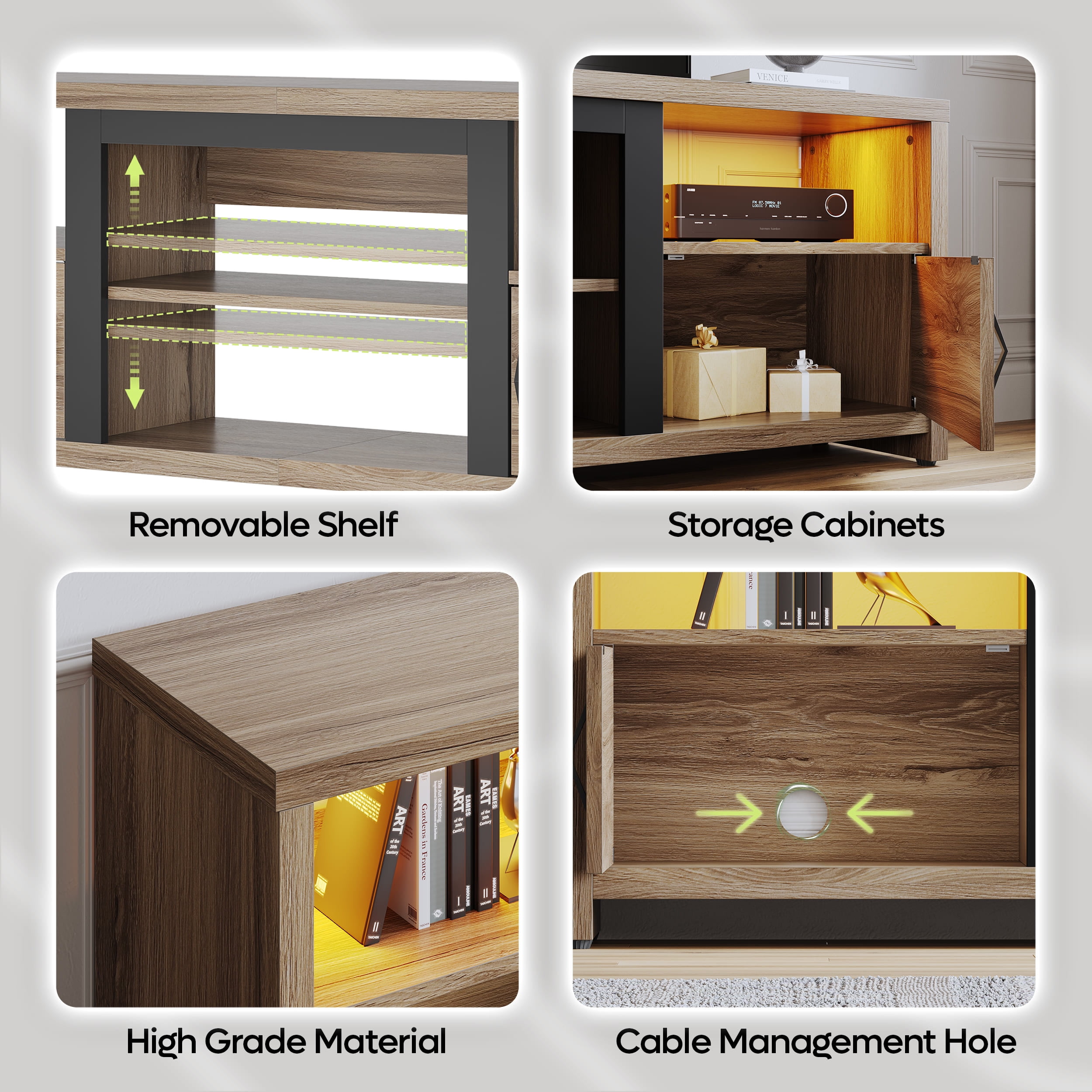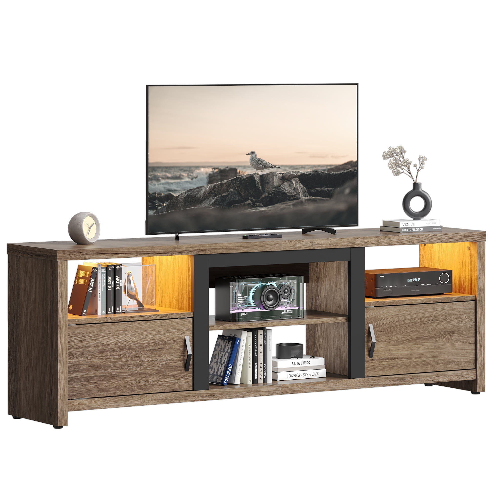 Bestier Modern LED TV Stand for up to 80 Inch TV with Open Cubes and Cabinets, Pinewood