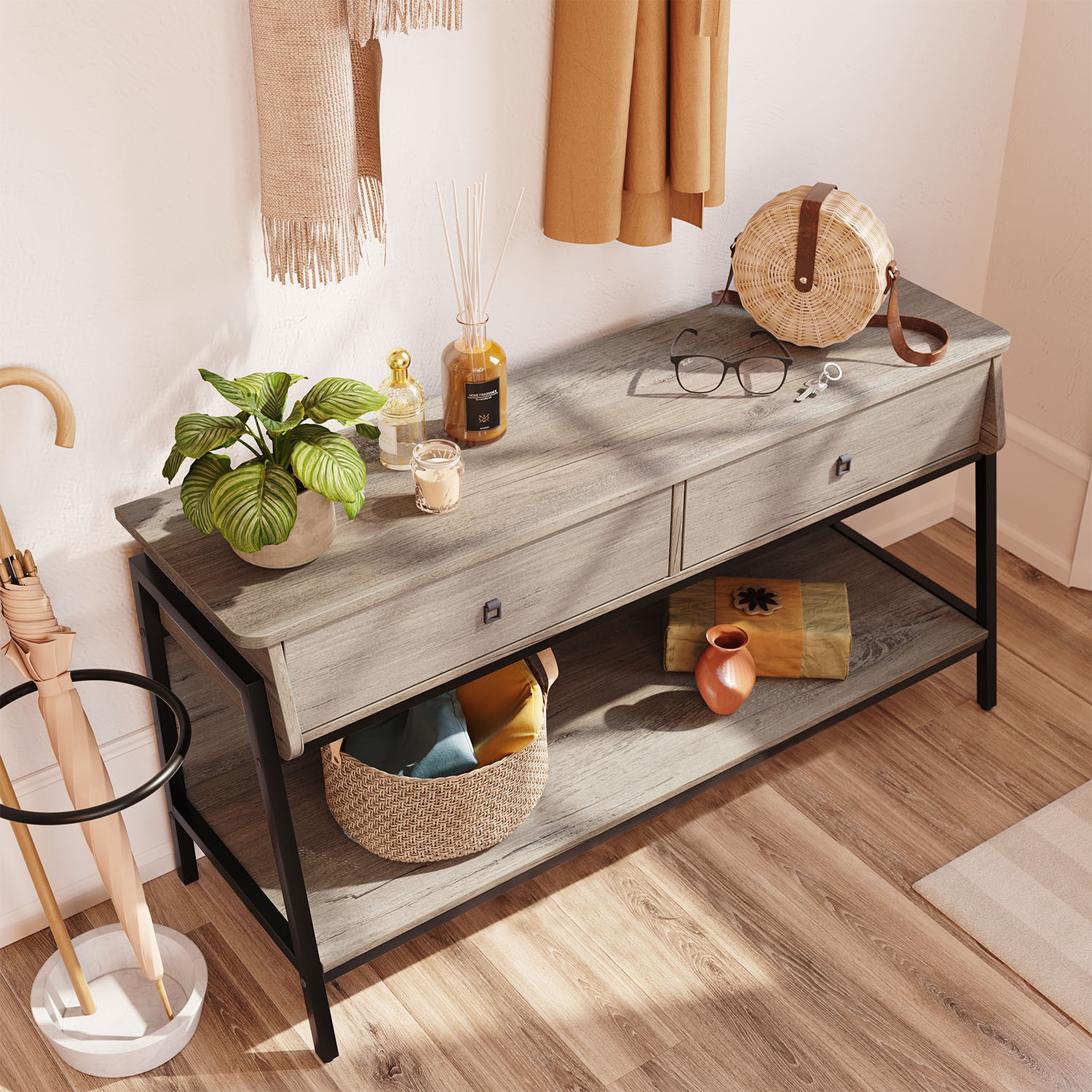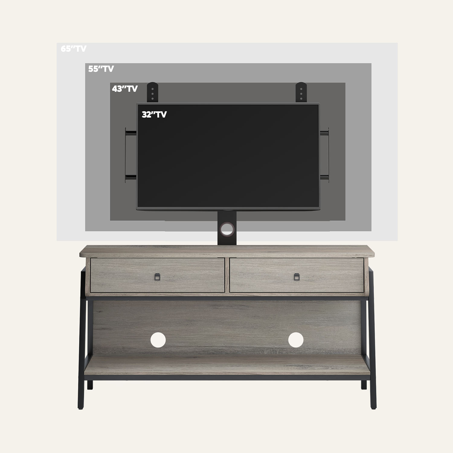 Bestier TV Stand for TVs up to 65″ with Adjustable Wall Mount, Grey Wash Finish