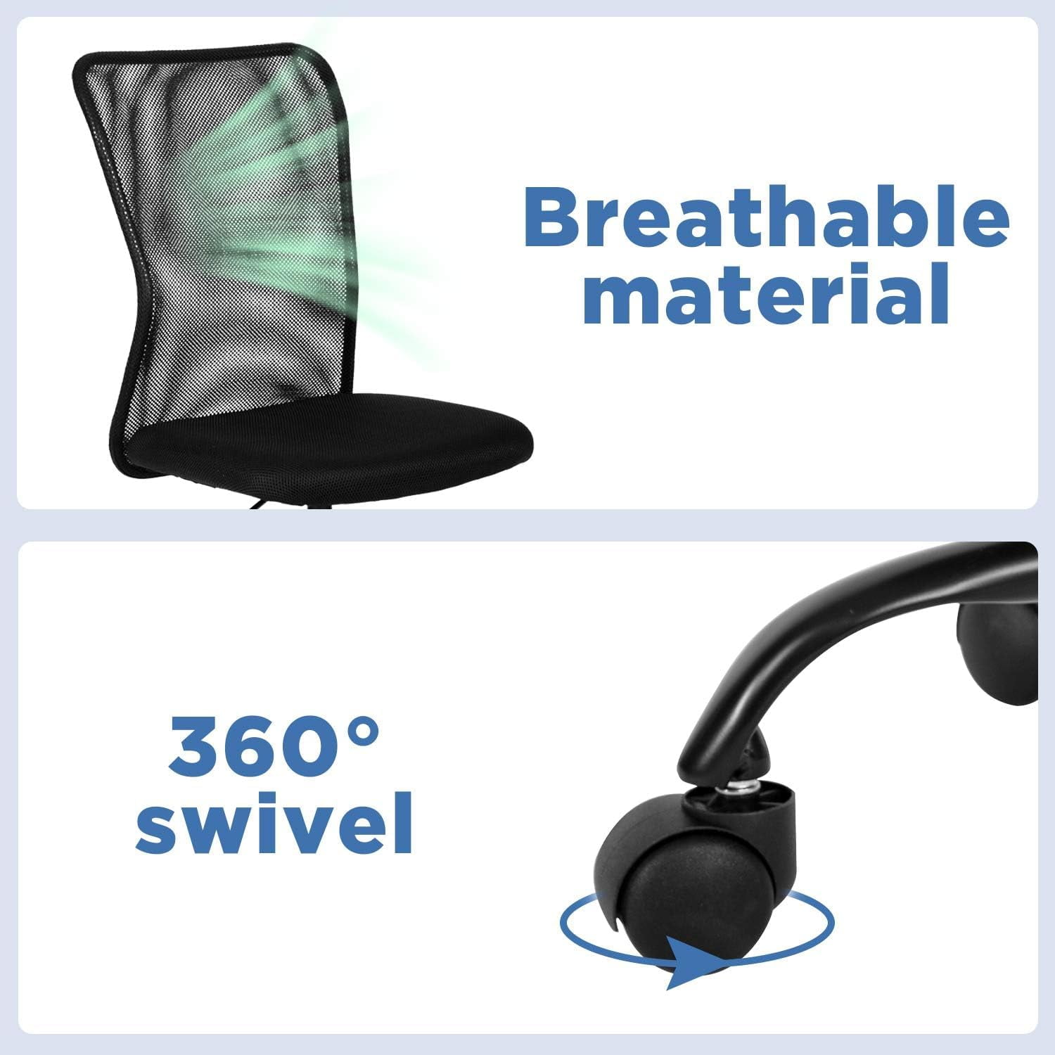 BestOffice Ergonomic Armless Office Chair with Adjustable Height, Lumbar Support for Adults(Black)
