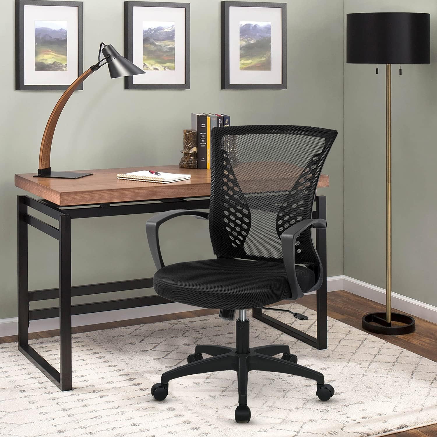 BestOffice Ergonomic Office Chair, Lumbar Support, Adjustable Height with Armrests for Adults(Black)
