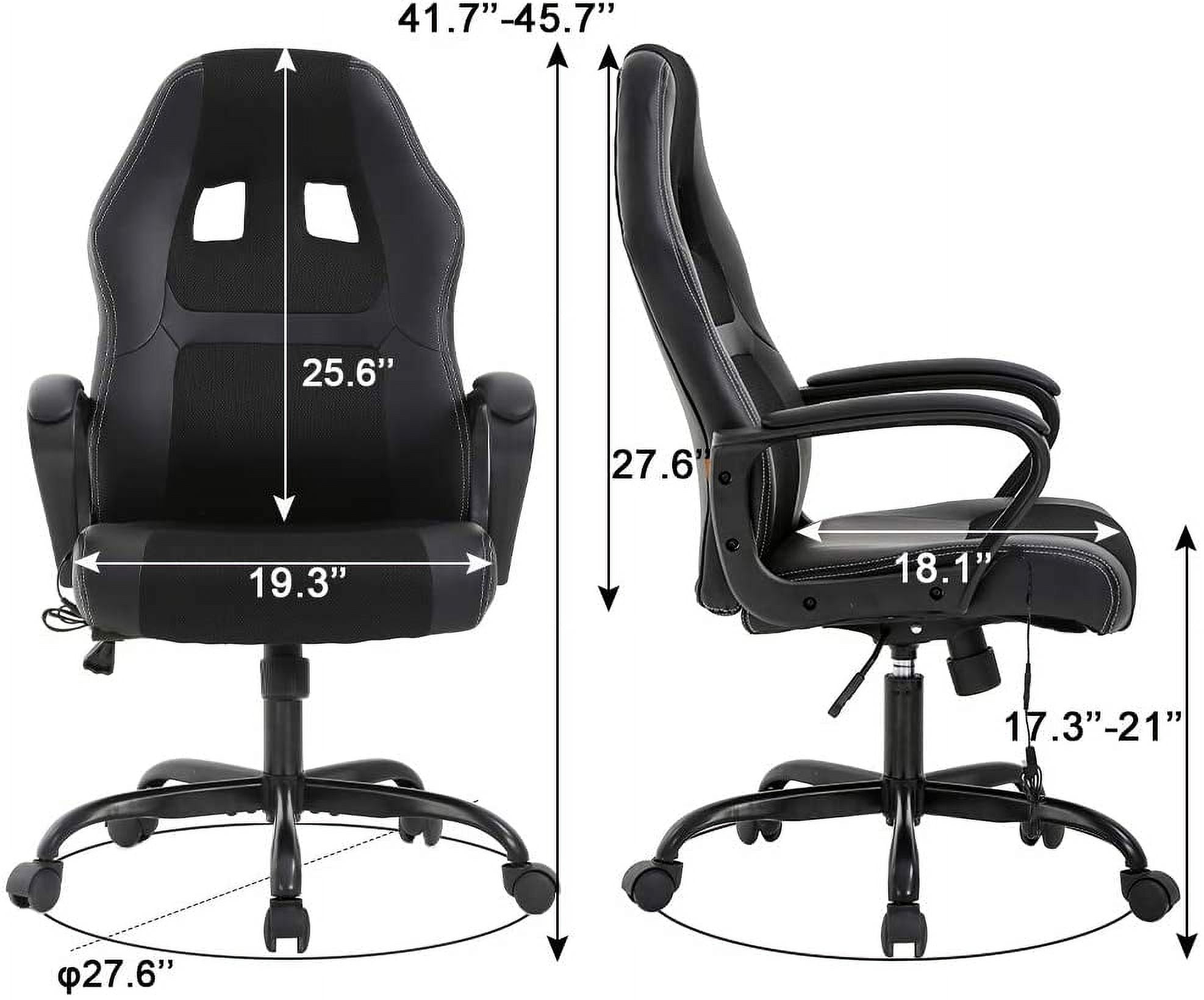 We present this brand new racing type high back office chair with a unique appearance and feel, unlike most office chairs on the market, it have a vibrator with remote control, slight vibration can reduce the fatigue. And If you don’t want to use the massage function, you can roll up the data cable and put it in a small bag. This race chair has a higher backrest to support the entirety of your spinal column. And Our desk chairs offer a stable five-point base with a gas spring, allowing the use to adjust for varying heights to better meet the needs of your office or computer desk. Seat height: 17.3”-21”; Seat wide: W20.9”*D19.3”. Feature ✔Gaming office chair have beautiful generous and strong practicability. ✔Computer chair with heavy-duty metal base, with lock height control. ✔360 degree swivel wheel and chair can be more flexible in working station. ✔Size and look makes the office chair ideal for any conference room or office seating, the back executive styling to make you feel relax.