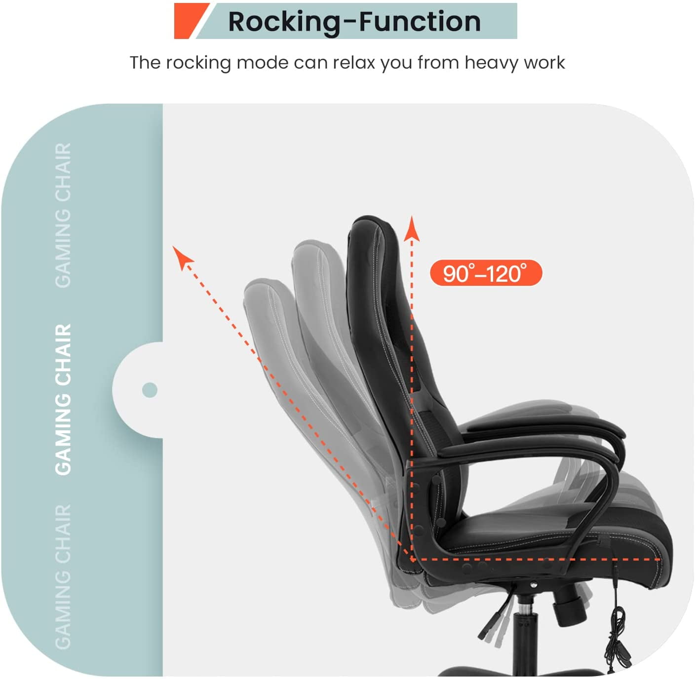 ‌ ❤Easy to install – Gaming chair is super easy to be put together. It may take about 10-15minutes, this office chair comes with all the tools necessary. ❤Comfortable lumbar support – Office chair is designed with human-oriented ergonomic construction for providing comfort sitting experience. Under the chair,a tilt-tension knob makes rocking back in your chair easier or harder, depending on which way you turn it.It can rock back and forth. ❤Good Seating – Comfortable for long use! Massage office chair has a vibrator with remote control, slight vibration can reduce the fatigue caused by your long hours of work. ❤360-Degree Swivel & Nylon Casters – All the parts of office gaming chair pass BIFIMA certification, more reliable and sturdy, this desk chair does include a weight limit of 250 pounds. ❤Warranty – We guarantee you will love this ergonomic gaming chair. But if you’re not satisfied with this office chair, please get in touch with us.