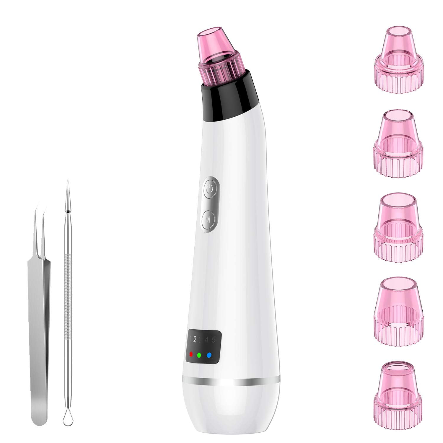 BESTOPE Blackhead Remover Vacuum, Skin Vacuum Pore Remover Cleaner Blackhead Suction Tool Electric Acne Comedone Suction Facial Device with IPL Beauty Lamp 2 Blackhead Extractor Tool for All Facial Skin Treatment 【UPGRADED TOP BLACKHEAD REMOVER 】The BESTOPE upgrade pore cleanser designed with 5 different function suctions and 5 intensity Levels for all types skin, equipped with 2 additional pore extractors. A perfect solution to get rid of stubborn blackheads, whiteheads, dead skin, grease and massage, tighten the skin. and bring your beautiful skin back on your face.【UNIQUE IPL BEAUTY LAMP TECHNOLOGY 】With 3 color professional air pump technology, red light for softening skin and restoring skin elasticity. Green light for brightening skin and making skin tender and transparent. Blue light for repairing skin and conditioning skin secretion. The pore suction vacuum meets all your skincare needs.【MORE PROFESSIONAL & EFECTIVE & SAFER 】FDA, FCC, CE, ROHS certificated. Our suctions of our blackhead remover vacuum is made from top food grade resin. Use vacuum absorption and IPL technique for different skin conditions. It is more effective and safer than traditional facial cleaning method.【 INTELLIGENT & PORTABLE 】Design with intelligent LED display,our facial blackhead remover can be used to check the suction level and types of IPL beauty lamp. It conforms to the principles of human body engineering and handhold design, easy to use and carry. You can enjoy your professional SPA skin care at home or traveling. Excellent package will serve as a perfect Christmas gift to your loved ones.【 EASY TO OPERATE 】Before use blackhead removal tool, please use hot compress for 3-7 minutes to open the pore and use a blackhead export liquid to make the blackheads emerge to the skin surface. SWEET WARM: Don’t let the face vacuum rest on one spot for too long, and once you’re finished, please soothe your skin by applying a frozen sheet mask.